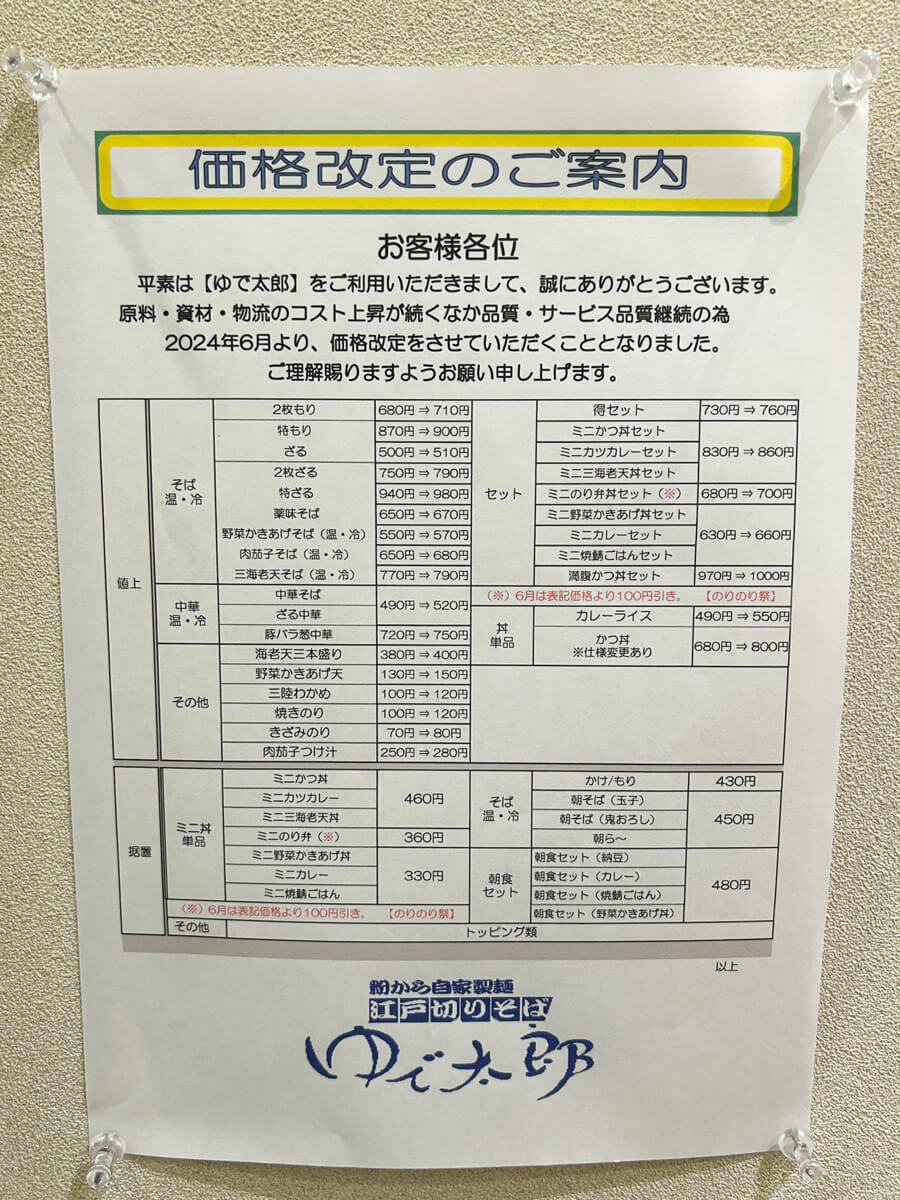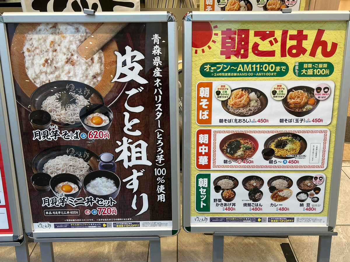 サイゾーウーマン暮らし食べ物【ゆで太郎】富士そば超えた魅力とは? 暮らし 話題のチェーン探訪 【ゆで太郎】「もつ次郎」併設で急成長! 450円そばを食べてわかった「富士そば」超えのワケ 2024/05/30 15:45 サイゾーウーマン編集部 ゆで太郎富士そば 「もつ次郎」併設の「ゆで太朗」新宿ワシントンホテル店の外観(C)サイゾーウーマン 本格的な「町のそば屋」の味を低価格で楽しめる人気そばチェーン「江戸切りそば ゆで太郎」。近年、もつ煮専門店の「上州 もつ次郎」を併設した店舗が全国に増えていることをご存知でしょうか? この記事では、この春オープンしたばかりの店舗の様子と、朝限定のそばメニューの実食レビューをお届けします。 ※価格はすべて税込。 ※価格やメニューは2024年5月30日時点の情報です。 ※店舗によって価格やメニューが異なることがあります。 ※最新の情報は公式サイトや公式SNSをご確認ください。 目次 ・【ゆで太郎】「もつ次郎」併設でさらに急成長中 ・「朝メニューは計8種類 ・「朝メニュー」のそば450円を実食 ・6月から値上げの一方で100円引きキャンペーンも 【ゆで太郎】「富士そば」超えで業界トップ独走! 「ゆで太朗」の立て看板(C)サイゾーウーマン 「江戸切りそば ゆで太郎」(以下、ゆで太郎)は、もともと持ち帰り弁当店「ほっかほっか亭」のFCオーナーだった「信越食品」社長・水信春夫氏と、「ゆで太郎システム」社長・池田智昭氏が同一屋号同一サービスで運営しています。 元蕎麦職人の水信氏が1994年10月に東京・中央区に開店した「ゆで太郎1号店」湊店を、池田氏がシステム化しFC展開することに。そして2004年12月にゆで太郎システム直営1号店を東京・西五反田に開店しました。 現在は、1都1道1府23県に216店舗を構えており(24年5月時点)、セルフ式そばチェーンのパイオニアとも呼べる66年創業の「名代 富士そば」を抜いて業界トップを独走しています。 「もつ次郎」の立て看板。丼ものカレー、一部そばメニュー、もつ煮はテイクアウト可能です(C)サイゾーウーマン コロナ禍はほかの外食チェーン同様に売り上げ低迷は避けられなかったものの、第二の主力業態として、ウイルスが蔓延する前から商品化を進めていたもつ煮を主力商品とする「上州 もつ次郎」(以下、もつ次郎)の展開をスタート。 既存の「ゆで太郎」店舗に併設する形を取り、“ちょい飲み”需要に応えるメニュー展開を行ったところ、これが大ウケし、22年6月には65店まで増加。今では3分の2以上の店舗が「ゆで太郎」と「もつ次郎」の併設店となるなど、急成長を遂げています。 都内では、4月24日に「もつ次郎」併設の新宿ワシントンホテル店がオープンしたばかり。早速、お店に行ってみました! 【ゆで太郎】朝メニューは計8種類 お店に到着したのは、午前10時過ぎ。お店があるのはオフィス街ということもあり、サラリーマンたちの出勤後の時間を狙って行ったのですが、新宿ワシントンホテルの地下にあるということもあり、お店は海外からの観光客とみられる方々が数組いらっしゃいました。 新宿ワシントンホテル店では、午前7~11時までの間は朝メニューを提供しているとのことだったので、以下の6種類の中から私は「朝そば(鬼おろし)」の温(かけ)をチョイス。 朝そば ・朝そば(鬼おろし)温/冷 450円 ・朝そば(玉子)温/冷 450円 朝中華 ・朝ら~ 温/冷 450円 朝セット(そばとごはんもののセット) ・野菜かきあげ丼 温/冷 480円 ・焼鯖ごはん 温/冷 480円 ・納豆 温/冷 480円 店外の券売機で食券を購入し、カウンターの店員さんに渡します。待つこと数分で番号が呼び出されるので、自分で取りに行くスタイルです。 【ゆで太郎】「朝メニュー」そば450円、のどごし最高で大ボリューム! 「朝そば(鬼おろし)」温(かけ)450円(C)サイゾーウーマン そうして出てきたのがこちら。私は「朝そば(鬼おろし)」温(かけ)450円を選びました。 見てください、このつゆの透き通り具合!(C)サイゾーウーマン まずは、つゆから味見。醤油と砂糖を主にした“かえし”と鰹を中心とした魚だし、そしてみりんが合わさったつゆは、甘すぎずしょっぱすぎずちょうどいい塩梅で目覚めにも優しいお味です。 麺はのど越しも最高です(C)サイゾーウーマン 続いて、麺を箸で持ってみると、見た目以上に量が多いことに驚き。 細切りのそばは、指定の製粉所で丁寧に挽いた蕎麦粉を、毎日店舗で粉から製麺し、注文が入ってから茹でられるというこだわりっぷりで、「挽きたて」「打ちたて」「茹でたて」の”三たて”にこだわって作られているとか。 割合はそば55%、小麦粉45%だそう。麺が細いからか、そのわりにそばの香りは強くありませんが、つるつるっとしていて喉ごしが良く、サラッと食べられます。 そばの器が深いので、見た目以上にボリューミーです(C)サイゾーウーマン そのままの味を楽しんだ後は、ねぎや野菜かきあげ、大根おろしをトッピング。かきあげはややしなっとしていて揚げたてではありませんでしたが