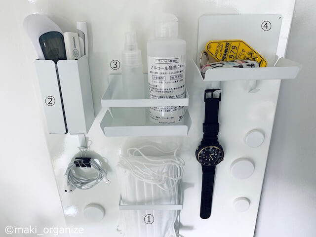 サイゾーウーマン暮らし100均・雑貨【ダイソー】110円マグネット収納グッズ 暮らし 【ダイソー】収納アイデア 【ダイソー】110円「マグネット収納」グッズおすすめ4つ、プロの壁面収納実例は? 2024/06/19 13:00 伊藤まき(収納ライター) 伊藤まきの「お片付けSOS」相談 (C)GettyImages 整理収納アドバイザー・伊藤まきさんがサイゾーウーマンで連載中の「『お片付けSOS』相談!」。今回はダイソーのマグネット式収納グッズのシリーズ「ONE Kitchen」を再掲します。プロの収納実例は? ※2020年10月5日の記事を再編集したものです。 ※最新情報は公式サイトでご確認ください。 目次 ・【ダイソー】マグネット式収納グッズ「ONE Kitchen」シリーズ ・おすすめ①「ラップホルダー(マグネット)」:スマホやリモコンにぴったり! ・おすすめ②「冷蔵庫小物収納(マグネット)」:身だしなみグッズ入れにもOK ・おすすめ③「スパイス収納棚」:文具はもちろん、身だしなみグッズ入れにもOK! ・おすすめ④「マルチ収納棚(マグネット)」:ペンスタンドにもなるフック付き! ・壁面収納の実例は? 【ダイソー】マグネット式収納グッズ「ONE Kitchen」シリーズ 8種類(マグネット付き)の2色(白と黒)展開だそう。 機能的でスッキリとした暮らしを目指すなら「壁面収納」が便利。なかでも「マグネット」を使った壁面収納は人気の手法です。 ダイソーの「ONE Kitchen」シリーズは、壁面収納ができる便利なアイテム。鉄製だからチープに見えなくて、シンプルでスタイリッシュ。鉄製はプラスチック製品より、ホコリの吸着も少ないんです。私自身も、発売と同時に迷わず購入しました。というのも、このシリーズ、「マグネット収納」の神ブランド、山崎実業の製品にそっくりなんです。 まずは、「ONE Kitchen」シリーズから4つのアイテムのサイズを見てみましょう。 【ダイソー】「ラップホルダー(マグネット)」:スマホやリモコンにぴったり! ラップだけでなくいろいろ収納できる(C)maki_organize ダイソー「ONE Kitchen」のマグネット式「ラップホルダー」です。キッチンの冷蔵庫に貼り付ける提案で作られていますが、耐荷重は350gなのでスマホやリモコンも大丈夫。このほか、香りのスプレーボトルもコンパクトに入ります。 【ダイソー】「冷蔵庫小物収納(マグネット)」:身だしなみグッズ入れにもOK 輪ゴムかけに◎(C)maki_organize こちらは「冷蔵庫小物収納」です。キッチンなら、文房具とマスキングテープや輪ゴム掛けに。サイズ的には、メガネとイヤホン、マスクと鍵の外出用グッズにもぴったりです。 【ダイソー】「スパイス収納棚」:文具はもちろん、身だしなみグッズ入れにもOK! 使い勝手◎(C)maki_organize ダイソー「ONE Kitchen」の「スパイス収納棚」です。使い勝手が一番良さそうですね。毎日使うアロマや保湿ケアなど万能に使えるサイズです。かわいいディスプレイ小物も、オシャレに飾れます。 【ダイソー】「マルチ収納棚(マグネット)」:ペンスタンドにもなるフック付き! 男性のポケットから出す小物収納にも◎(C)maki_organize ダイソー「ONE Kitchen」の「マルチ収納棚」です。フックが2個付いているので、ペンを置くこともできます。ポケットテッシュが入るサイズなので、玄関のスチールドアに置いても便利そうです。 【ダイソー】プロの壁面収納実例は? それぞれ記事で紹介した1〜4のアイテムです(C)maki_organize 玄関に必要な小物(アルコール、体温計、マスク、印鑑、鍵)を、ダイソーの「ONE Kitchen」シリーズに収めました。下駄箱の上に散らかりがちな小物も、置く場所が決まれば散らかりません。 (C)maki_organize このようなやり方も。土台になっているのは、イケアのスヴェンソース メモボード(1,299円/ライター調べ)です。マグネットが張り付くホワイトボードなので、マグネット式の収納グッズをくっつけることができます。 また、上のほうの収納で土台に使用したのは山崎実業の「キッチンウォールバー」です。ウォールバーとは、収納パーツを装着できるアイテム。マグネット式などの収納グッズを着けられます。 (C)maki_organize 筆者宅はリビングの壁に「キッチンウォールバー」を設置しています。ウォールバーの装着方法はマグネットのほか、壁に穴をあけてネジで固定するタイプがあり、変わったものでは「壁紙に貼るだけで磁石がつくシート」というものも選択肢としてありますよ。 ダイソー収納アイデア&アイテム人気記事10(※画像クリックで記事に飛びます) ダイソー「蓋付き収納 BOX」商品番号:4549131634921ダイソーの「蓋付き収納 BOX」。大型クローゼットや押入れがない家でも機能的に収納ができる、便利なアイテムです。ジッパー付きの軽量サイズ(182g/ライター調べ)だから、高い場所に置いても片手で降ろせます。価格は330円(税込)ですが、無印良品の「ポリエステル綿麻混・ソフトボックス」(1,490円/同)の5分の1。 ダイソー「強力吸盤フック」「ミニ突っ張り棒」ダイソーの「強力吸盤フック」耐荷5kg(2P)と耐荷2kg(4P)、そしてミニ突っ張り棒(2P)。