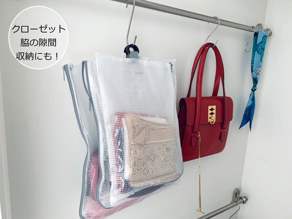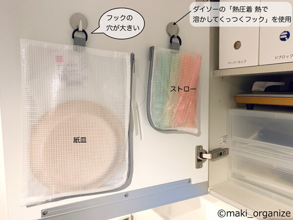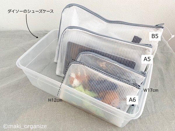 サイゾーウーマン暮らし100均・雑貨【ダイソー】110円L型ビニールケース 暮らし 【ダイソー】収納アイデア 【ダイソー】110円「ビニールケース」は「L型」が最強! キッチン、クローゼットの収納実例 2024/06/24 13:00 伊藤まき(収納ライター) 伊藤まきの「お片付けSOS」相談 (C)GettyImages 整理収納アドバイザー・伊藤まきさんがサイゾーウーマンで連載中の「『お片付けSOS』相談!」。今回はダイソーの「貼ってはがせるシートフック」を再掲します。プロの収納実例は? ※2023年12月10日公開の記事を再編集したものです。 ※最新情報は公式サイトでご確認ください。 目次 ・【ダイソー】「ビニールケースL型ファスナー」110円 ・「L型ファスナー」A6収納実例:小物収納に ・「L型ファスナー」B4収納実例:子どもの紙モノ収納 ・「L型ファスナー」全サイズ収納実例:キッチンの扉裏 ・「L型ファスナー」収納実例:クローゼット、トイレ 【ダイソー】「L型ファスナー」110円 シックな色味も人気! グレー色のファスナー(C)maki_organize ビニールケースを選ぶなら、まずはコレ! ダイソーの「ビニールネットケース L型ファスナー」です。ファスナーがL型カーブになっていて、フックの穴が大きめなところが最強です。 これらを使った基本の収納から、キッチンやクローゼットでの収納実例を紹介していきます。 【ダイソー】「L型ファスナー」A6収納実例:小物収納に 小物整理には、A6が使いやすい◎(C)maki_organize 収納例は、ファスナーケースとほぼ同じ。 お手持ちの棚、引出しのサイズに合わせたサイズを選んで、ガジェット、薬、文房具、工具など生活小物のグループ収納に活用できます。これもまた、本やDVDを選ぶようにインデックスで探し出せます。 ダイソー「L型ファスナー」B4収納実例:子どもの紙モノ収納 これはA4使用例ですが、基本はB4を使います(C)maki_organize 子どもの紙モノ収納に、「ビニールネットケース L型ファスナー・B4」が人気です。面倒なパズルの散らかり・型崩れを防ぐのに最適! おりがみや塗り絵なら、遊ぶときを考えたグループ収納にもなります。持ち運びも簡単なので、いろいろなシーンで役立ちますね。 ダイソー「L型ファスナー」収納実例:キッチンの扉裏 [筆者宅]箱に比べて、圧縮収納できるから便利(C)maki_organize キッチンの扉裏に、ダイソーの「ビニールネットケース L型ファスナー」を収納しています。フックの穴が大きいため、引っ掛けやすく出し入れもスムーズです。 軽いキッチングッズなら、わざわざ箱に入れなくてもOK。棚が少ない家、収納が足りない家を助ける収納テクです。ちなみに、フックはダイソーの「熱圧着 熱で溶かしてくっつくフック」です。 ダイソー「L型ファスナー」収納実例:クローゼット、トイレ [筆者宅]クローゼット折戸のデッドスペースも収納に!(C)maki_organize クローゼットの服装小物入れに。デリケートな素材を保護しつつ、存在を強調してくれます。冠婚葬祭グッズや冬物タイツの種類分けにも良いです。 ほかにも、鉄製の玄関ドアにマスクを。棚のないトイレに、サニタリーグッズを置くのもおすすめです。これまで「収納ボックス」で考えていた脳を切り替えるだけで、幅広い使い方ができます。 注意※ポリエステル素材なので、高温多湿での長期保管には注意が必要です。定期的に確認できるモノを管理してください。 ダイソー収納アイデア&アイテム(※画像クリックで記事に飛びます) ダイソー「蓋付き収納 BOX」商品番号:4549131634921ダイソーの「蓋付き収納 BOX」。大型クローゼットや押入れがない家でも機能的に収納ができる、便利なアイテムです。ジッパー付きの軽量サイズ(182g/ライター調べ)だから、高い場所に置いても片手で降ろせます。価格は330円(税込)ですが、無印良品の「ポリエステル綿麻混・ソフトボックス」(1,490円/同)の5分の1。 ダイソー「強力吸盤フック」「ミニ突っ張り棒」ダイソーの「強力吸盤フック」耐荷5kg(2P)と耐荷2kg(4P)、そしてミニ突っ張り棒(2P)。この2グッズがあるだけで、家中の困ったコトにかなり役立ちます。この強力吸盤フックは、ツルツルした面(タイル、ガラス、琺瑯など)に適しているので、トイレに使うのも便利。生理用品を入れたポーチや、流せるトイレブラシを吊り下げます。ミニ突っ張り棒は、床下から20〜30cmの場所がベスト。 ダイソー「ホッピングバッグ」商品番号:4549131306484ダイソーの「ホッピングバッグ」なら、使わない時は畳めて「かさばらない」ので、狭い空間を奪いません。イレギュラーなモノが増えた時も、サッと広げるだけで便利な収納ボックスへと変わります。ブランケットや羽織の収納ボックスとして。 あちこちに脱ぎ散らかした衣類も、簡単に回収できます。キッチンペーパーやトイレットペーパーなど、収納棚に入りきれなかったストック品もまとまります。ペットシーツやおむつの在庫入れなど、紙モノに最適 ダイソー「超強力マグネット」商品番号:4549131230475マルチに使える、ダイソー「超強力マ