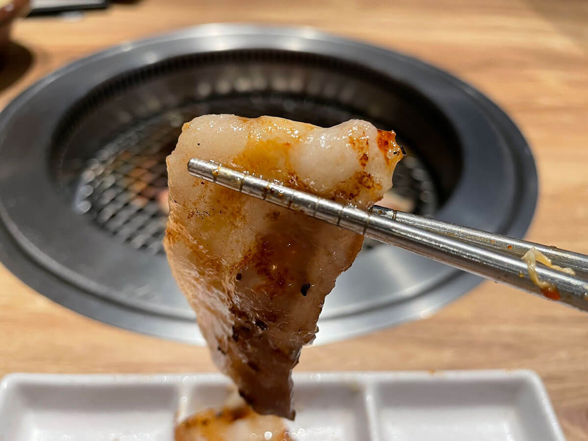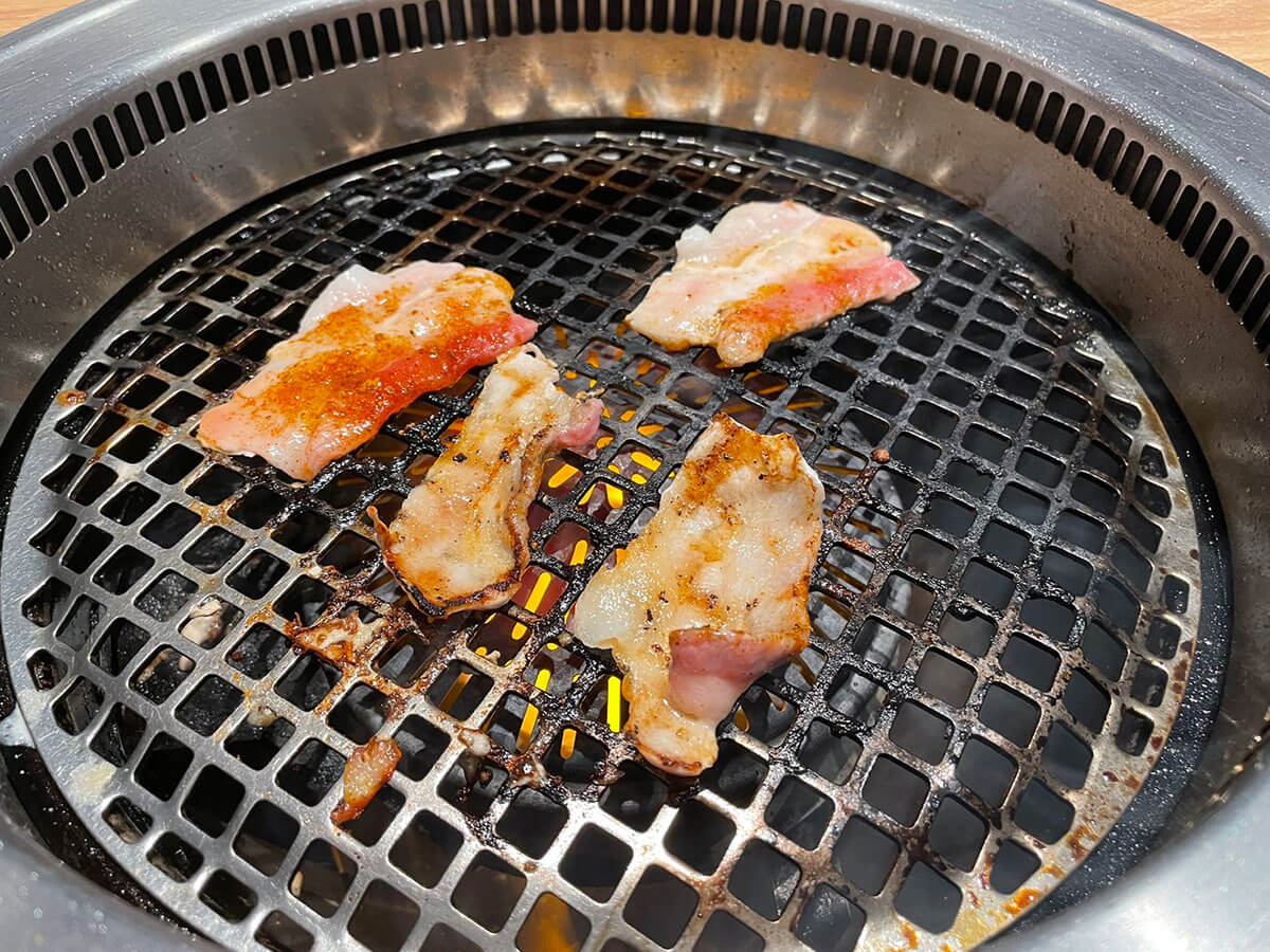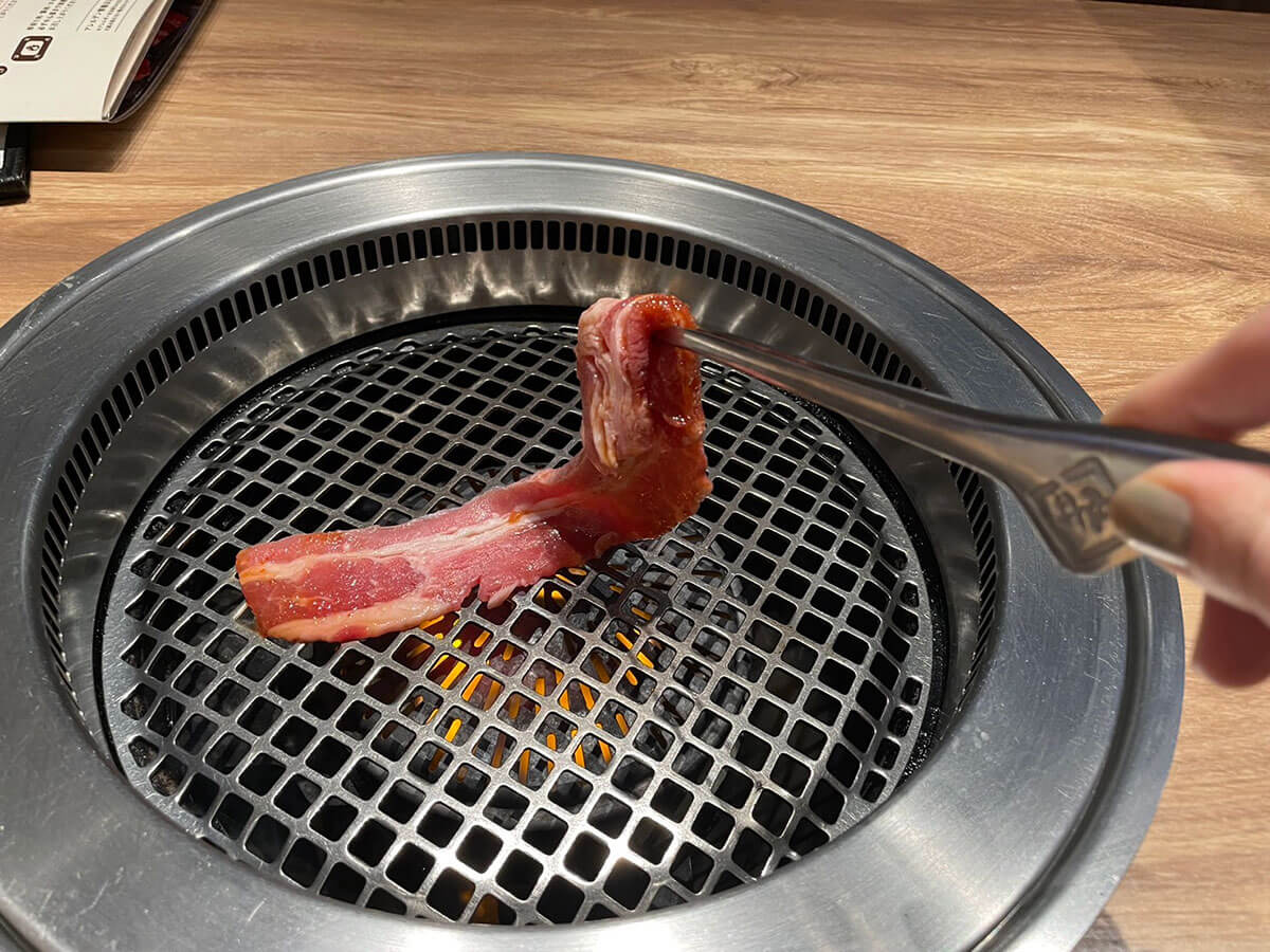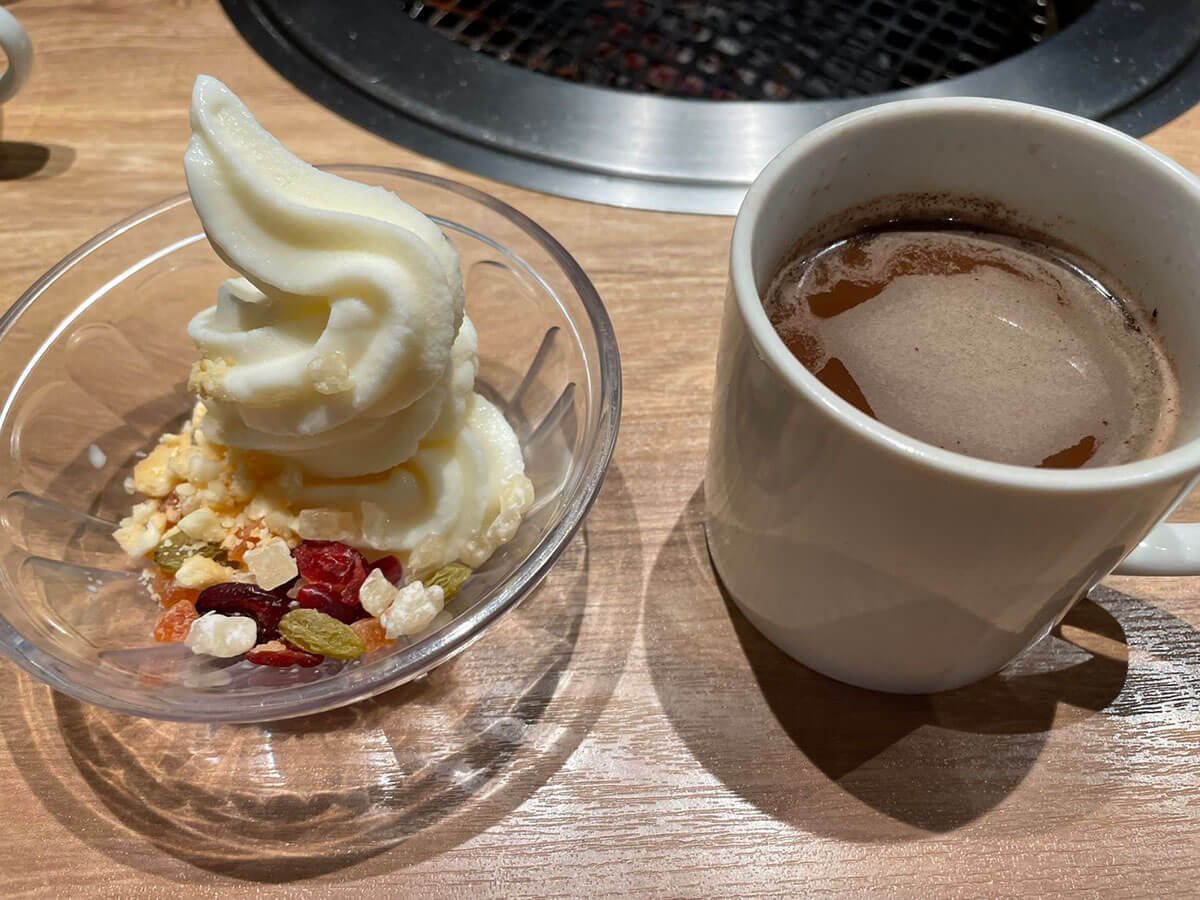 サイゾーウーマン暮らし食べ物牛角「2,178円食べ放題」に感動 暮らし ランチ食べ比べレビュー 黒字回復した【牛角】ランチ「2,178円食べ放題」は【焼肉きんぐ】より断然、「上」と言えるワケ 2024/06/15 17:00 仲宗根由紀子(エンタメライター) ランチ食べ比べレビュー牛角 牛角食べ放題専門店の外観(C)サイゾーウーマン 今日は昼からガツンといきたい気分……そんなときに食べたくなるのが“焼肉ランチ”ですよね。焼肉チェーン「牛角」が全国展開する「牛角食べ放題専門店」では平日ランチタイム限定のお得な食べ放題があると耳にしたので、早速足を運んでみました! ※2024年5月14日公開の記事を再編集しています。 ※価格はすべて税込。 ※価格やメニューは2024年5月10日時点の情報です。 ※店舗によって価格やメニューおよびシステムが異なることがあります。 ※最新の情報は公式サイトや公式SNSをご確認ください。 目次 ・牛角、売上高で焼肉きんぐに惨敗 ・2,178円「ランチ50品コース」を注文 ・牛カルビなど肉を次々と注文! ・ドライフルーツかけ放題に感動 ・ランチタイムなのに客1人 ・焼肉きんぐより味は上か 【牛角】店舗数1位も……売上高シェアで2位に転落 店舗数日本一を誇る牛角が展開する牛角食べ放題専門店は、平日ランチタイム限定(今回訪れた店舗は午前11時~午後3時)の食べ放題コースを提供しています。 平日ランチ食べ放題の看板(C)サイゾーウーマン 平日ランチ限定の食べ放題コースは、以下の2種類。 ・「ランチ50品コース」2,178円 ※小学生未満は無料、小学生と60歳以上は550円引き ・「ランチお気軽コース」2,728円 ※小学生未満は無料、小学生は半額、60歳以上は550円引き どちらも牛・豚・鳥の焼肉やサイドメニューが食べ放題なだけでなく、「ドリンク&パフェバー」(一部店舗ではドリンク&ソフトクリームバー)も付いています。 なお、2023年版「焼肉チェーンの店舗数ランキング」(22年7月~23年7月、日本ソフト調べ)によれば、店舗数1位は571店舗の牛角で、2位が焼肉きんぐの306店舗。 以前は売上高シェアで業界トップをひた走っていた牛角ですが、「焼肉チェーン店売上高シェアランキング」(富士経済「外食産業マーケティング便覧2023」より)では2位に転落。昨年は焼肉チェーン業界において焼肉きんぐの独り勝ち状態が目立ち、牛角は一時600店舗以上あった店舗数も近年、減少傾向にあるようです。 しかし、牛角や大戸屋などを運営する株式会社コロワイドの2024年3月期連結決算(国際会計基準)は、最終損益が29億円の黒字(前の期は68億円の赤字)に。赤字から黒字に回復しました。 熾烈な競争が繰り広げられている同業界ですが、牛角の今を調査するため、早速店舗へ向かいます。 【牛角食べ放題専門店】2,178円「ランチ50品コース」を注文 開店直後の午前11時頃にお店に着くと、まだお客さんはいない様子。すぐにほかのお客さんが来ると思いますが、こういう状況って、1人でお店を独占するようで少しワクワクしません? コースを選ぶ画面(C)サイゾーウーマン 今回は、卓上のタブレットから2,178円の「ランチ50品コース」を注文。この店舗はスープバーも付いているため、早速スープとドリンクを取りに行きます。 この日は卵スープでした(C)サイゾーウーマン サラダ2種類(C)サイゾーウーマン お肉を頼む前に、「焼肉屋さんのキャベツサラダ」と「パリシャキ梅しそじゃこサラダ」を注文。今回は肉をたくさん食べて元を取りたいので、あえてごはんは頼まず、肉と野菜で攻める作戦をとります。 ちなみに、「パリシャキ梅しそじゃこサラダ」は牛角公式サイトに掲載されている「ランチ50品コース」の一覧に見当たらないので、ほかの店舗でも頼めるかどうかは不明。 焼肉と相性抜群のキムチ(C)サイゾーウーマン キムチも頼みましたが、量が多くてびっくり! これを見てフラッシュバックしたのが、先日筆者が訪れた「牛角焼肉食堂」のキムチです。 「牛角焼肉食堂」は牛角がプロデュースしているフードコート専門店なのですが、ここで「牛カルビ焼き定食」(1,012円)を頼んだところキムチが一切れしかついておらず、「メニュー写真と違う」と涙を飲んだばかり。 ちなみに、こちらが牛角焼肉食堂の「牛カルビ焼き定食」(C)サイゾーウーマン 同じ牛角系でも、お店によってここまで“キムチの盛り”が違うとは……。 非公開: 牛角の新業態【牛角焼肉食堂】が全国で急拡大! 1,012円「カルビ定食」の残念なポイントとは? 国内焼肉チェーン店舗数1位の「牛角」が近年、プロデュースしているフードコート専門店「牛角焼肉食堂」。近頃、全国で急拡大していると聞きつけ、食べに行ってきました!...サイゾーウーマン2024.05.02 【牛角食べ放題専門店】いよいよ肉を注文! カルビの注文画面(C)サイゾーウーマン いよいよ本日のメインであるお肉を頼んでいきます。 「ランチ50品コース」で頼める牛カルビは主に「厚切りとろカルビ」など3種類。このほかに、さまざまな味付けの豚肉や鶏肉、牛ホルモン
