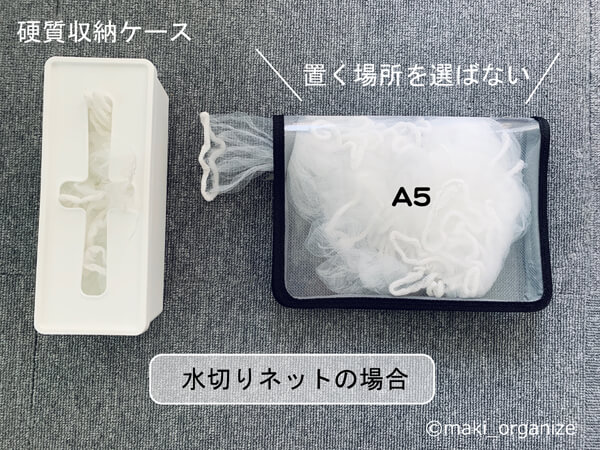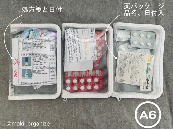 サイゾーウーマン暮らし100均・雑貨【セリア】110円「ファスナーケース」 暮らし 【ダイソー】収納アイデア 【セリア】110円「ファスナーケース」、見つけたら即買い! プロの収納活用例6 2024/07/11 13:00 伊藤まき(収納ライター) 伊藤まきの「お片付けSOS」相談 (写真:サイゾーウーマン) 整理収納アドバイザー・伊藤まきさんがサイゾーウーマンで連載中の「『お片付けSOS』相談!」。今回はセリアの「ファスナーケース」を再掲します。プロの収納実例は? ※2023年12月12日の記事を再編集したものです。 ※最新情報は公式サイトでご確認ください。 目次 ・【セリア】「ファスナーケース」110円 ・「ファスナーケース」A6使用例1:乾物や冷凍食品収納 ・「ファスナーケース」A6使用例2:ガジェットやコード収納 ・「ファスナーケース」A6使用例3:使い切り商品のストック収納 ・「ファスナーケース」A6使用例4:薬ストックを収納 ・「ファスナーケース」使用例5:水切りネット収納 ・「ファスナーケース」使用例6:型崩れしたくないグッズ収納 【セリア】「ファスナーケース」110円 A4ワイドは、3軒回っても入荷待ち状態でした(C)maki_organize セリアで購入した「ファスナーケース」のサイズは、全部で8サイズ。とても地味なアイテムながらも、「狭い家」に欠かせない名脇役です! フチが紺や赤、緑のものなどもあり、ほかの100均でも販売しています。 「A6」に出会ったら、とりあえず買って! (C)maki_organize 整理収納でよく使うのは「A6」サイズ。まずは、100均でも入手困難の多い「A6」サイズをメインに収納例を紹介します。 【セリア】「ファスナーケース」A6使用例1:乾物や冷凍食品収納 ニトリの「ソフトNインボックス」にぴったり(C)maki_organize 片付けで依頼主のご自宅を訪問すると、高確率で食品の乾物と冷凍庫の食材がこぼれ落ちています。決まって、ほとんどの家が袋止めクリップを使っています。ファスナーケースなら、食品袋を折ってケースの中に入れるだけ。ケースの大きさが揃うので、探しやすく埋もれる失敗も防げます。 【セリア】「ファスナーケース」A6使用例2:ガジェットやコード収納 外出時は、そのまま持ち出すだけ(C)maki_organize 各種コードをはじめ、モバイルバッテリー、デジタルカメラ、ボイスレコーダーなど現代の生活に欠かせない「ガジェット収納」に。透明なのでラベルを貼る必要もなく、インデックスファイルのように出し入れできます。旅行のときはケースごと荷造りできて、楽ちんです。 【セリア】「ファスナーケース」A6使用例3:使い切り商品のストック収納 ファスナーの天だけ開けっ放しにすると簡単(C)maki_organize 新しい生活様式に欠かせない、マスクのストック収納にも最適です。家族で暮らす家なら、成人男性、女性、子どもとサイズや好みによって種類も増えます。「ファスナーケースA6」なら、コミック本やCDを選ぶような感覚でまとめられます。ただし、ファスナーの開閉が面倒に思う欠点も。この場合、天の部分(上だけ)を開けることで手間をカットできます。 【セリア】「ファスナーケース」A6使用例4:薬ストックを収納 消費期限のあるモノは、「在庫の見える化」で管理(C)maki_organize これもまた、片付け訪問時に多い「お薬迷子」です。病院からの常備薬を白い袋に入れっぱなしの家、多いです! そして決まって、「袋を開けてみないと中身がわからない」「いつ処方されたか記録にない」「念の為取っておきたい」という声が返ってきます。そんな時こそ、「ファスナーケースA6」の出番。処方されたその日に、薬と処方箋を袋から移すだけで済みます。 ここまでA6サイズの4つの使用例を紹介しましたが、他サイズも「圧縮収納」や「調味料の保管」などいろいろな使い方があります。その使用例と魅力を、実例とともに紹介していきます! 【セリア】「ファスナーケース」使用例5:水切りネット収納 狭い家では、効率的な万能性をチョイスして!(C)maki_organize 「ファスナーケース」は「狭い家」におすすめ。その理由はひとつ、空間を無駄にしないからです。硬質の収納ケースだと、在庫が半分に減ったら空気を保管するだけの箱。「ファスナーケース」なら、ストック品が減ると同時に「圧縮収納箱」に変身。かさばらないので、収納スペースを奪いません。 【セリア】「ファスナーケース」使用例6:型崩れしたくないグッズ収納 ゴミ袋は、A4ワイドがおすすめ(C)maki_organize ウィッグや思い出の作品、旅先の荷物など“型崩れ”を防ぎたいモノ。ゴミ袋やレジャーシートなど“自立できない”モノに適しています。ほか、硬質の収納ケースに比べて、力を入れて押し込めるのも自由がきいて◎。もったいない隙間スペースも、無駄なく使えます。 スリムケースの魅力は伝わりましたか? これらの理由から、スリムケースは「狭い家」を救うのです! ダイソー収納アイデア&アイテム人気記事(※画像クリックで記事に飛びます) ダイソー「蓋付き収納 BOX」商品番号:4549131634921ダイソーの「蓋付き収納