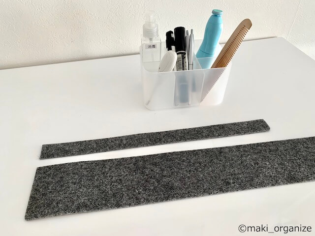 サイゾーウーマン暮らし100均・雑貨【セリア】110円「多目的マット」 暮らし 【セリア】収納アイデア 【セリア】プロは見つけたら即購入! 110円「多目的マット」使用法8 2024/07/16 13:00 伊藤まき(収納ライター) 伊藤まきの「お片付けSOS」相談 セリアの店内(C)サイゾーウーマン 整理収納アドバイザー・伊藤まきさんがサイゾーウーマンで連載中の「『お片付けSOS』相談!」。今回はセリアなどで購入できる「多目的マット」を再掲します。プロの収納実例は? ※2023年12月25日公開の記事を再編集したものです。 ※最新情報は公式サイトでご確認ください。 目次 ・【セリア】「多目的マット」110円 ・使用法1:下駄箱シートに ・使用法2:引き出しの中のインサートマットに ・使用法3:アクセサリートレイに ・使用法4:スチール製建具の保護と音の抑制に ・使用法5:安っぽいプラスチックケースを高見えに ・使用法6:車内の保護・カスタムに ・使用法7:古いベニヤ板貼りの押入れのカバーに ・使用法8:オリジナルの収納箱など「工作」に 【セリア】「多目的マット」110円 グレーの品切れが多い(赤、青、黄色などもあり)。裏面は、ゴム素材が付いています(C)maki_organize セリアの「多目的マット」とキャンドゥの「マルチマット」(以下、ともにマルチマット)。どちらも、同じメーカー(株セイワ・プロ)の商品で、ほぼ同じサイズ(※商品によってサイズが若干異なります)になります。 大型店のDIYコーナーにマルチマットが置かれていますが、品切れが多い印象。それもそのはず、使い方を知る人にはコスパの良い便利グッズ! 筆者はマルチマットのグレーを見つけたら「即購入」しています。そんなマルチマットの使い方を8つにまとめました。 その前に、マルチマットのポイントを説明します。 マルチマットの特徴.1:オフィス床のカーペットなどにそっくり 素材と厚み、質感が違うものの「用途」は同じ(C)maki_organize 写真上は、ホームセンターの「ニードル パンチカーペット」W91cm(1Mあたり)525円(税込)です。汚れにくい、ポリプロピレン系の材質です。フェルト生地をやや硬くしたような素材なので、加工しやすくなっています。読者の皆さまも、エレベーター内の養生、イベント会場やオフィスの床、階段などで目にしているもの。 「マルチマット」は、この「ニードル パンチカーペット」の裏面にゴム系の樹脂が付いた素材です。 マルチマットの特徴.2:砂・ホコリ・毛が付着しても飛び散らない キャンドゥとセリア、同じ発売元の商品です(C)maki_organize 100均マルチマットの大きなポイントは、砂・ホコリ・毛・雨水が付着しても飛び散らずに沈むことです。先のパンチカーペットも、そういった場所にありますよね。セリアとキャンドゥで購入できるマルチマットは、パンチカーペットより硬くて加工しやすい感じです。 ただし、注意点も。マルチマットは、撥水性、防水性、耐熱用、耐火用はありません。また、水洗い、洗濯は不可と商品シールに記されています。 セリア「多目的マット」使用法1:下駄箱シートに 100均のワイヤーネットを曲げて加工した棚(C)maki_organize 筆者宅の玄関に作ったワイヤーラックです(100均のワイヤーネットと石膏ボード用ピンフック)。子どもの靴は、砂の付着が多いのでワイヤーネットの隙間から砂が落ちないよう「マルチマット」を敷いています。裏面が滑り止めマットのようになっているので、そのまま敷くだけでOK。 砂が付いても、外までこぼさず落とせます(C)maki_organize もちろん、下駄箱にも使っています。安価な下駄箱用シート、食器棚用のシートなど汚れをブロックするシートは「ヨレたりズレたり」しがち。その点「マルチマット」なら、家具の保護パッド(滑り止め、傷防止フェルト)に似ているので、建具やモノを優しく守ってくれます。 セリア「多目的マット」使用法2:引き出しの中のインサートマットに Before 地味に、チリゴミが角にたまってイライラ(C)maki_organize After ただの引き出しも、高見えに!(C)maki_organize 引き出しの底面にたまる、小さなゴミやペットの毛も「マルチマット」なら沈みます。プラスチック製の仕分けケースを使っているので、静電気による厄介なゴミ付着も軽減できます。 サランラップや汚れ避けシートのように、ヨレないのが「マルチマット」の最大の魅力です。ホコリや抜け毛が沈むので、こまめに掃除できない家具の上に敷いたり「汚れ防止」に万能です。 セリア「多目的マット」使用法3:アクセサリートレイに 欲しいサイズに合わせて切るだけ!(C)maki_organize アクセサリーが傷つかないよう保護してくれるので、スマホやお財布置き場の「お出かけセット」を作ってみました。イケアの「コムプレメント インサート 引き出しマット(90×30cm)」1,500円(税込)に似た素材なので、同じような使い方ができます。そうめんの木箱などの形状が、理想的です。 グルーガンで山折りを接着するだけ(C)maki_organize マルチマットにカッターで3cm刻みで切り込みを軽く入れて「蛇腹式