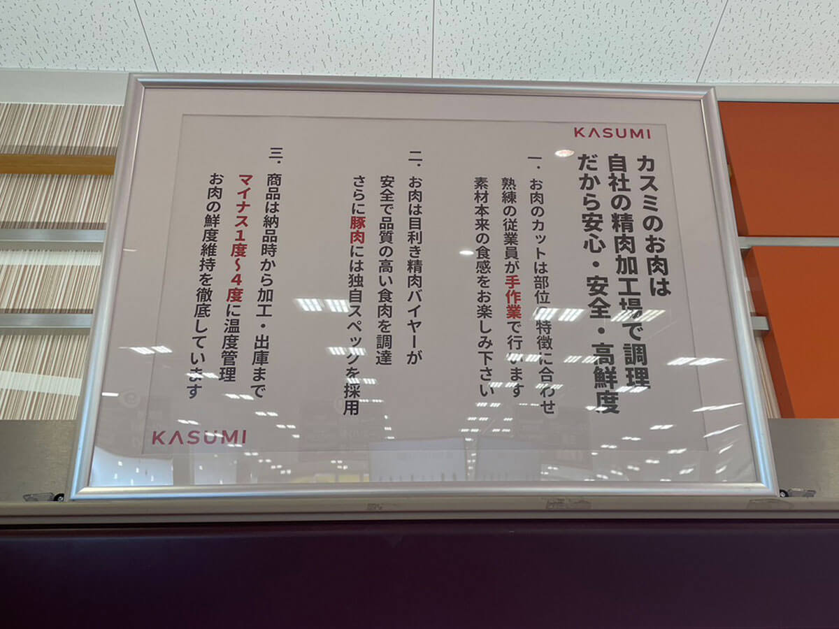 サイゾーウーマン暮らし食品スーパー【カスミ】高級イメージで苦戦? 暮らし 話題のスーパー探訪 売上減少続く食品スーパー【カスミ】、行ってわかった苦戦のワケ……高級イメージの実態は? 2024/07/26 13:00 サイゾーウーマン編集部 スーパーカスミ フードスクエアカスミ(C)サイゾーウーマン 近年、食品スーパー業界が好調だと報じられています。多くのスーパーが増収するなか、減収減益を続けているスーパーマーケットチェーン・カスミ。なぜ、カスミは苦戦しているのか? 実際に利用してきました。 ※2024年3月19日公開の記事を再編集しています。 ※価格はすべて税込み。 ※店舗によって取り扱い商品や価格が異なります。 ※2024年3月16日の情報です。 目次 ・スーパーマーケットチェーン・カスミとは? ・カスミのイメージは? ・カスミの売り場をチェック ・「肉が高い」というイメージはない カスミとは? 茨城県に本社を構え、関東を中心に195店舗を運営するスーパーマーケットチェーン「カスミ」。一口にカスミといっても、輸入食品なども豊富に取り揃える「フードスクエアカスミ」、標準店である「フードマーケットカスミ」、低価格路線の「フードオフストッカー」の3業態を展開しています。 流通・小売・メーカーのニュースサイト「流通ニュース」によると、全国主要スーパーマーケット大手10社の24年1月の営業概況は、ライフやヤオコーなど大手8社が前年同月比で増収するなか、カスミだけが減収、一人負け状態となっているようです。 また24年6月度の既存店における販売実績は、売上高4.0%減、客数5.0%減。3月〜6月は全月において売上高、客数ともに前年比割れを起こし、売上減少ループに陥っている様子。 なお、一部経済メディアによると、客足が落ち込んだ理由には“販促の切り替え”があったとか。昨年7月に紙のクーポンを廃止し、カード・アプリ会員向けの販促に切り替えたものの、このシステムの浸透に時間がかかっているといいます。 カスミのイメージは「質は良いけど少し高い」? カスミに行く前に、長年カスミに通い続けている知人にフードスクエアカスミに抱いているイメージを聞いたところ、以下のような答えが返ってきました。 ・生鮮食品の質は良いが、少し高い ・特にお肉はおいしい ・品揃えが良い ・週2回の割引券の配布や、スタンプを貯める紙のチケットが廃止されてしまって悲しい ・魚は近所のヨークベニマルのほうが充実しているため、そちらで買っている 店舗によって品揃えも違うでしょうから、すべてのフードスクエアカスミに当てはまるわけではないでしょう。ただ、ネット上でも「肉の質が良い」「ちょっと高い」「前の割引券がよかった」などと似たような声が散見されたので、同じような印象を持っている人は多いのかもしれません。 というわけで、肉コーナーはしっかり見ていくことにします。 フードスクエアカスミの売り場をチェック! 深夜0時まで営業 お買い得品のポスター(C)サイゾーウーマン 筆者が訪れたフードスクエアカスミの営業時間は午前9時~深夜0時まで。この地域は共働き世帯が多いので、遅い時間帯の営業は需要がありそうです。 まず入って気になったのが、店内の明かりの暗さ。ほかのカスミはわかりませんが、普段、店内が煌々と照らされているロピア、ベルク、角上魚類をホームとしている筆者は、控えめな蛍光灯の明かりに少々困惑してしまいました。 通路は広めで、買い物しやすい(C)サイゾーウーマン 商品を品定めする分には十分な明かりではあるものの、まず目に入ったのがお供え物コーナーだったこともあり、入店早々、なんだか暗い気持ちに……。 お供え物コーナー(C)サイゾーウーマン ちなみに、お供え物が充実しているのは、徒歩5分ほどの場所に霊園があるからかもしれません。 青果売り場をチェック 新鮮な商品が並ぶ青果売り場(C)サイゾーウーマン 気を取り直して、青果売り場へ。隙間なく陳列されているせいか、果物も野菜もおいしそうに見えました。 小分けのいちごがうれしい(C)サイゾーウーマン 値段的には、周辺スーパーと大差ない印象。小分けパックのいちごが200円台で販売されているのは、気が利いています。 卵もお手頃価格(C)サイゾーウーマン いたるところに「日常の暮らしに必要な商品をお安くしました!」と書かれたポップがあるのですが、実際、卵や豆腐、ヨーグルトなど、常備しておきたい食品がお手頃価格で売られていました。 豆腐は73円(C)サイゾーウーマン 鮮魚売り場をチェック 生魚売り場(C)サイゾーウーマン 続いて、生魚売り場をチェック。すべてパックで販売されており、切り身などが一通りそろっていました。どれもきれいにパックされ、新鮮に見えます。 すべてパック販売(C)サイゾーウーマン お刺身が少ないな……と思いましたが、ガラス越しの調理場で1人の店員さんが刺身パックを作っていたので、これから並ぶのでしょう。 冷凍エビが並ぶ(C)サイゾーウーマン 鮮魚以上に