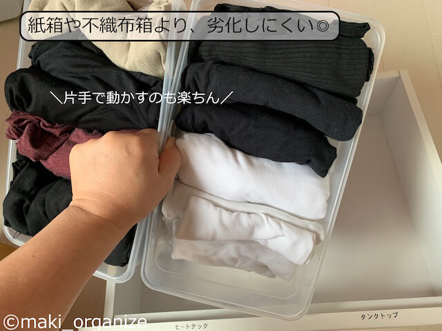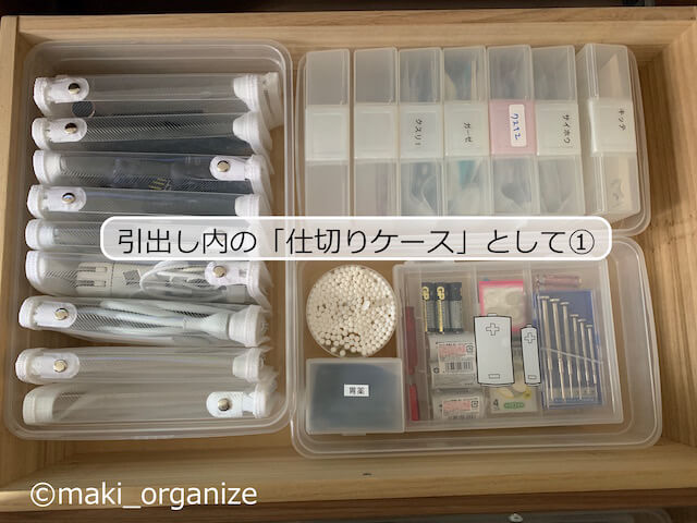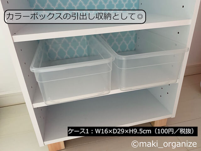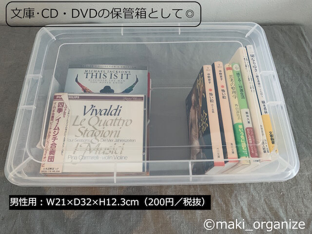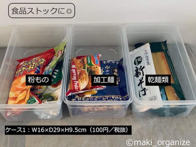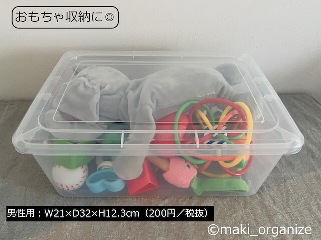 サイゾーウーマン暮らし100均・雑貨【ダイソー】165円「シューズケース」使用例8 暮らし 【ダイソー】収納アイデア 【ダイソー】165円「シューズケース」が優秀! 片付けのプロによる収納実例集8 2024/07/09 13:00 伊藤まき(収納ライター) 伊藤まきの「お片付けSOS」相談ダイソー (C)GettyImages 整理収納アドバイザー・伊藤まきさんがサイゾーウーマンで連載中の「『お片付けSOS』相談!」。今回はダイソーの「シューズケース」を再掲します。プロの収納実例は? ※2023年12月17日公開の記事を再編集したものです。 ※最新情報は公式サイトでご確認ください。 目次 ・【ダイソー】「シューズケース」165円 ・使用例1:引き出しの「仕切りケース」 ・使用例2:カラーボックスの「引出しケース」 ・使用例3:キッチンの吊り戸棚に置く ・使用例4:扉タイプの洗面台下「小物ケース」に ・使用例5:コレクションアイテムの保管に ・使用例6:湿気や虫から守る「食品ストック」に ・使用例7:子どもの「おもちゃ収納」に ・使用例8:洋服の「分類ケース」に 【ダイソー】「シューズケース」165円 (C)maki_organize ダイソー「シューズケース」(165円)(商品番号:4984355062691)です。靴ケア売り場に置かれることの多い商品ですが、入荷待ちが多くて困っています。それもそのはず、各業種のプロやコレクターから熱烈な支持を受ける優秀な万能ケースなのです。筆者もまた、片付けのプロとして頼りにしています。 ※横幅11cmと21.5cmのサイズはオンラインでの販売が終了しています。 【ダイソー】「シューズケース」使用例1:引き出しの「仕切りケース」 よく使う小物は、透明な箱へ入れるほど出しやすい(C)maki_organize 空間を仕切ることで、小物の仕分けが明確になります。また、箱を取り出すだけで空っぽにできる点も◎です。モノの定期的な見直しや引き出し内の掃除も、簡単です。 【ダイソー】「シューズケース」使用例2:カラーボックスの「引出しケース」 現在の価格は税込み165円(C)maki_organize ダイソーの「シューズケース1」は、カラーボックスの奥行き(D28cm)にもぴったり。カラボの棚増しをすれば、引出しのように活用できます。 【ダイソー】「シューズケース」使用例3:キッチンの吊り戸棚に置く「保管ケース」に 透明だから、持っていることも忘れない(C)maki_organize キッチンの吊り戸棚の奥行き(標準約32cm)にも、ダイソーの「シューズケース1」と「2」がぴったり。写真上のように、使用頻度の低いモノの保管に最適です。 【ダイソー】「シューズケース」使用例4:扉タイプの洗面台下「小物ケース」に 在庫の見える化で、使い切る気持ちもUP!(C)maki_organize 奥行き35cm内の洗面台下の空間なら、シューズケースの1と男性用がおすすめ。積み重ねができるケースなので、低コスパで収納力アップです! 【ダイソー】「シューズケース」使用例5:コレクションアイテムの「保管ボックス」として 捨てられないモノの保管に(C)maki_organize ダイソーのシューズケース「男性用」と「1」は、大切に保管したい思い出、コレクション、宝物の「保管ボックス」に◎。文庫やDVD程度の耐荷重なら、問題ありません。使わないのにスペースを奪う、捨てがたいモノの保留箱にも可。 【ダイソー】「シューズケース」使用例6:湿気や虫から守る「食品ストック」に 引出しと棚、どちらも使えます(C)maki_organize ダイソーのシューズケースは、ふたがカチッと閉まるので、「食品のストック」にも役立ちます。しかも透明なので、在庫の見落とし防止にも◎ 食材ロスも減って、無駄を減らす効果に繋がります。 ダイソー「シューズケース」使用例7:子どもの「おもちゃ収納」に 中のモノが見えるから、子どもでもわかりやすい(C)maki_organize ダイソーの「シューズケース」は、すべてのサイズが子どものおもちゃ収納に最適。透明の箱なら、色別、素材別、ジャンル別など分類法そのものを、子ども自身で選び学べます。 ダイソー「シューズケース」使用例8:洋服の「分類ケース」に 紙箱よりも頑丈だから、長く使いたい人へ◎(C)maki_organize ダイソーの「シューズケース」は引き出し内の「分類ケース」におすすめ。紙箱や不織布箱にありがちな、劣化も少なく丸ごと入れ替えできます。折りたたんだトップス、タオルのサイズにもぴったりです。シューズケースの全サイズが使えます。 [まとめ]ストック管理として◎ 「シューズケース 2」に、来客セットを(C)maki_organize 見えない袋や箱に収納してしまうと、その存在自体を忘れてしまいますが、ダイソーの「シューズケース」は半透明だからストックの管理も簡単です。また、厚みもないので“かさばり”が少ないのも魅力。 一方、靴箱としては湿気がこもる心配があるので、定期的に手入れするように。何でも、入れっぱなしでは「買ったモノの意味」がなくなってしまいます。 ダイソー収納アイデア&アイテム(※画像クリックで記事に飛びます) ダイソー「蓋付き収納 BOX」商品番号:4549131634921ダイソーの「蓋付き収納 BOX」。大型ク