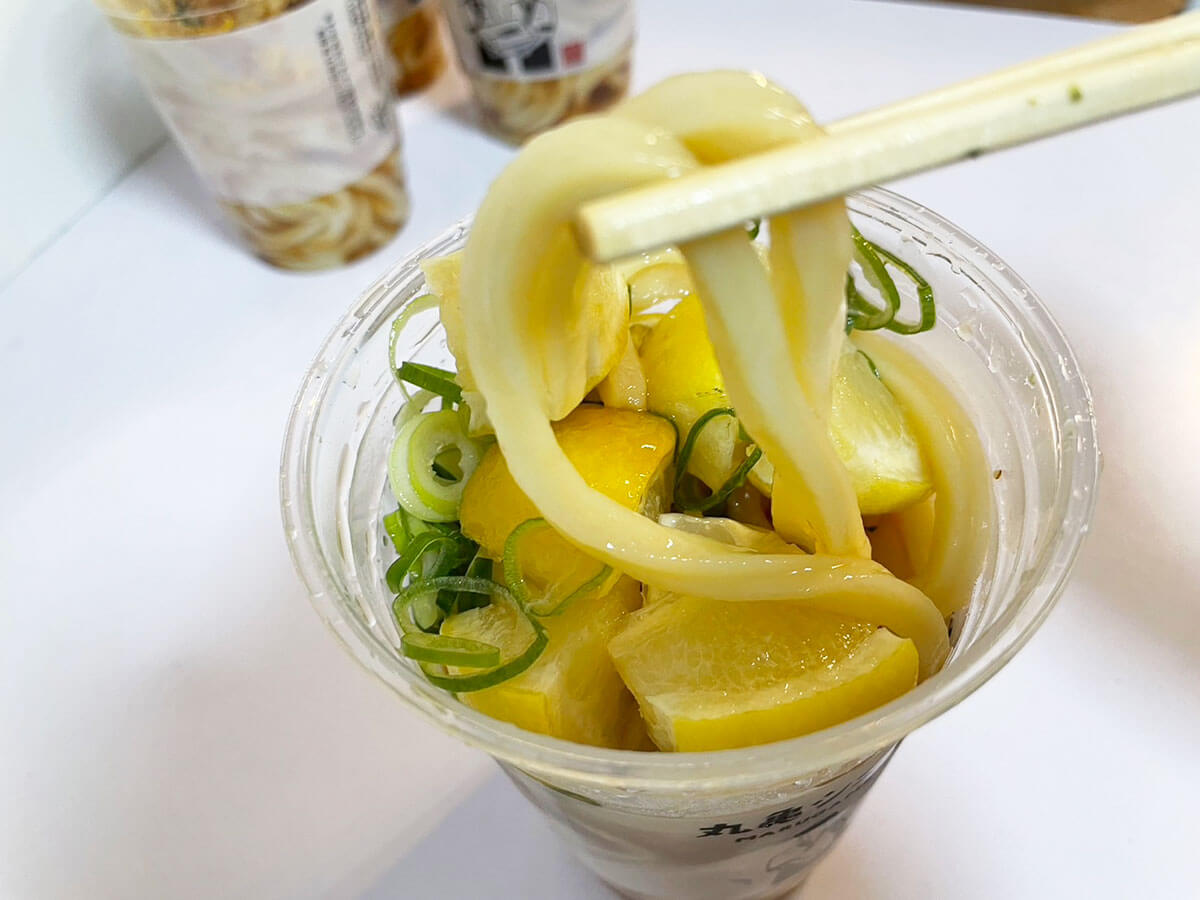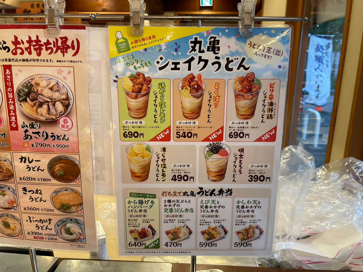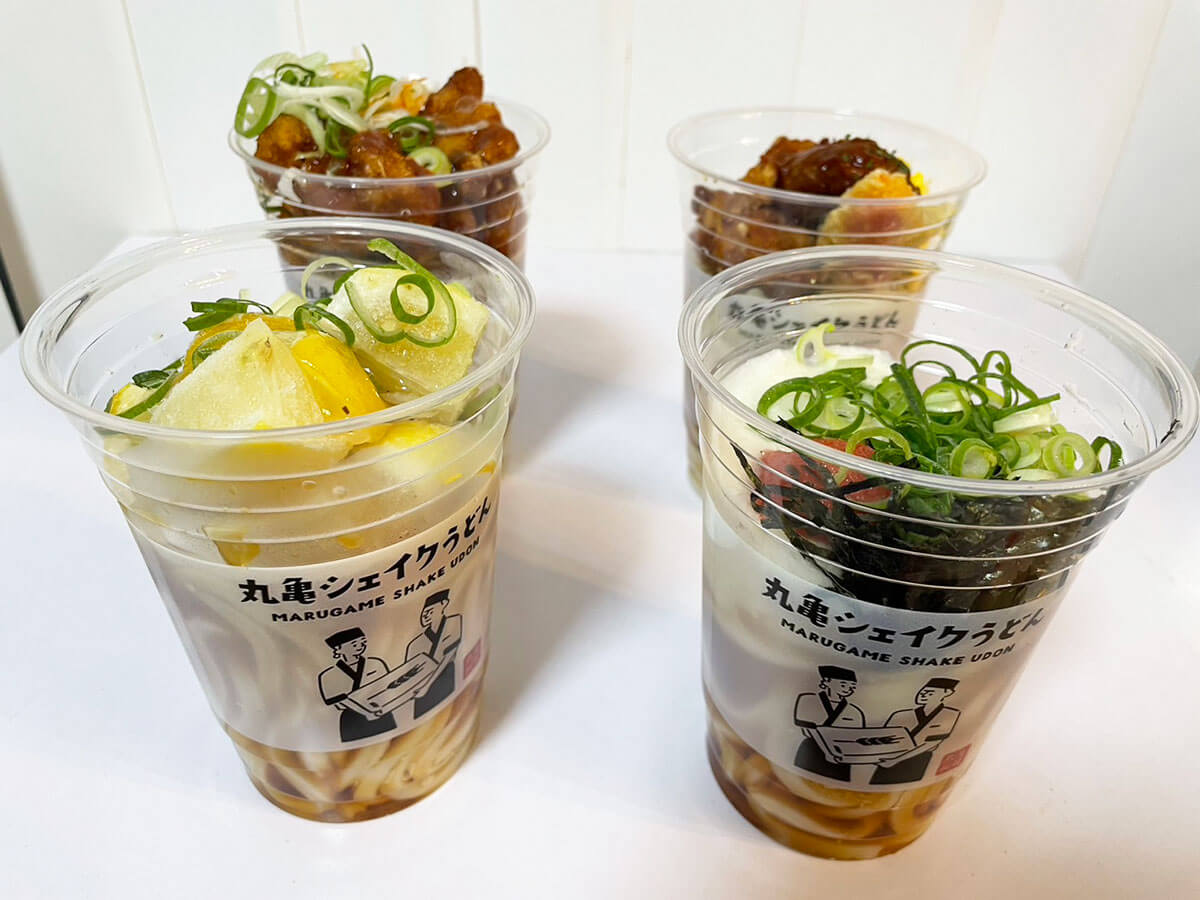 サイゾーウーマン暮らし食べ物丸亀製麺、運営会社が純利益43%減 暮らし 人気チェーン店、実食レビュー 【丸亀製麺】運営会社が純利益43%減でも……「シェイクうどん」食べてわかった「攻め」の意欲 2024/08/15 13:00 仲宗根由紀子(エンタメライター) 丸亀製麺暮らし 丸亀製麺の看板(C)サイゾーウーマン はなまるうどん、杵屋など数あるうどんチェーンの中で、売上高・店舗数ともに群を抜いている「丸亀製麺」。昨年、何かと話題になった「シェイクうどん」が復活したと聞きつけ、早速食べてきました! ※2024年4月23日公開の記事を再編集しています。 目次 ・【丸亀製麺】トリドールホールディングス、純利益43%減 ・丸亀はうどんチェーン売上高首位 ・「シェイクうどん」購入でミス! ・「シェイクうどん」4種をチェック ・「シェイクうどん」を実食! ・丸亀製麺はコスパ良すぎ ※価格はすべて税込。 ※価格やメニューは2024年4月22日時点の情報です。 ※店舗によって価格やメニューおよびシステムが異なることがあります。 ※最新の情報は公式サイトや公式SNSをご確認ください。 【丸亀製麺】トリドールホールディングス、純利益43%減 丸亀製麺などを運営するトリドールホールディングス。2024年4〜6月期の連結決算は、純利益が前年同期比で43%減の15億円だったと「日本経済新聞」で報じられました。 一方、売上高にあたる売上収益は25%増の658億円。本業のもうけを示す「事業利益」は13%増の44億円、特に「丸亀製麺」の事業利益は22%増と業績をけん引したとのこと。米国、英国、香港での海外飲食事業が足を引っ張ったとされています。 【丸亀製麺】2位の「はなまるうどん」を引き離しトップ! 全国に800店舗以上を運営する丸亀製麺。うどんチェーンの店舗数では、2位のはなまるうどんの444店舗(2023年2月時点)に大差をつけており、売上高でもうどん業界で独走状態が長年続いています。 その魅力は、なんといっても店舗で小麦粉から作る打ち立て麺! 店舗に入るとまず目に飛び込んでくる製麺機は、この上ない説得力を漂わせています。 そんな絶対王者である丸亀製麺ですが、昨年5月には、テイクアウト商品「丸亀シェイクうどん」がメニューに新登場。販売開始早々に、SNSユーザーが「うどんにカエルが混入している」と訴える騒動はあったものの、発売から約2カ月半で累計販売数250万食を突破するほどの人気を誇りました。 そして、今月16日から「丸亀シェイクうどん」がメニューに再登場! ラインアップは、新メニュー3種と再登場メニュー2種の計5種となっています。 テイクアウト専用「丸亀シェイクうどん」全5種類 ・よくばりシェイクうどん(新作) 540円 ・鶏から塩レモンシェイクうどん(新作) 690円 ・ピリ辛 油淋鶏シェイクうどん(新作) 690円 ・明太とろろシェイクうどん(再登場) 390円 ・凍らせ塩レモンシェイクうどん(再登場) 490円 ※販売期間:6月中旬まで 今回は4種類を購入し、実食してみます。 【丸亀製麺】「シェイクうどん」がない……テイクアウト非対応店舗にご注意を 「シェイクうどん」どこ!?(C)サイゾーウーマン 早速、某駅構内の「丸亀製麺」へ到着。しかし、「シェイクうどん」のメニューが見当たりません。 キョロキョロしていると、「テイクアウトメニューは扱っておりません」の貼り紙を発見。どうやら「丸亀製麺」にはイートイン専門店舗があるようです。 ちゃんと事前に調べてから行くべきでした……。皆さまもご注意くださいね。 テイクアウトに対応している店舗!(C)サイゾーウーマン 気を取り直して、今度はテイクアウト商品も扱っている「丸亀製麺」に到着。 テイクアウトのメニュー表(C)サイゾーウーマン やはり、メニュー表でも「シェイクうどん」が押されていました。小ぶりに見えますが、「うどん1玉(並)入ってます!」とのこと。 テイクアウト専用レジ(C)サイゾーウーマン 注文すると、目の前で手際よく「シェイクうどん」が作られていきます。 持ち帰る際、袋の底に丸い穴が開いた段ボールを敷いてくれたので、スタバでテイクアウトした時のような安定感がありました。 【丸亀製麺】「シェイクうどん」新作含む4種をチェック! シェイク前のうどん(C)サイゾーウーマン 新作含む4種を持ち帰りまりました。パッケージのデザインがかわいい! イラストはおしゃれな線画が人気の長場雄氏が手掛けているそう。このイラストを見ていると、「丸亀製麺」の店員さんが愛おしく思えてきます。 新作の「よくばりシェイクうどん」(C)サイゾーウーマン 「よくばりシェイクうどん」(540円)は、「お子さまから大人まで、大好きなおかずを集めたよくばりな一杯」とのこと。打ち立てのうどんに、鶏のから揚げ、ハンバーグ、赤ウインナー天、かきたまが豪快にのっています。 新作の「ピリ辛 油淋鶏シェイクうどん」(C)サイゾーウーマン 「ピリ辛 油淋鶏シェイクうどん」(690円)は、鶏からにピリ辛の油淋鶏たれとラー油、白ねぎを添えた一杯。 ふたを開けた瞬間にタレの香りが強め