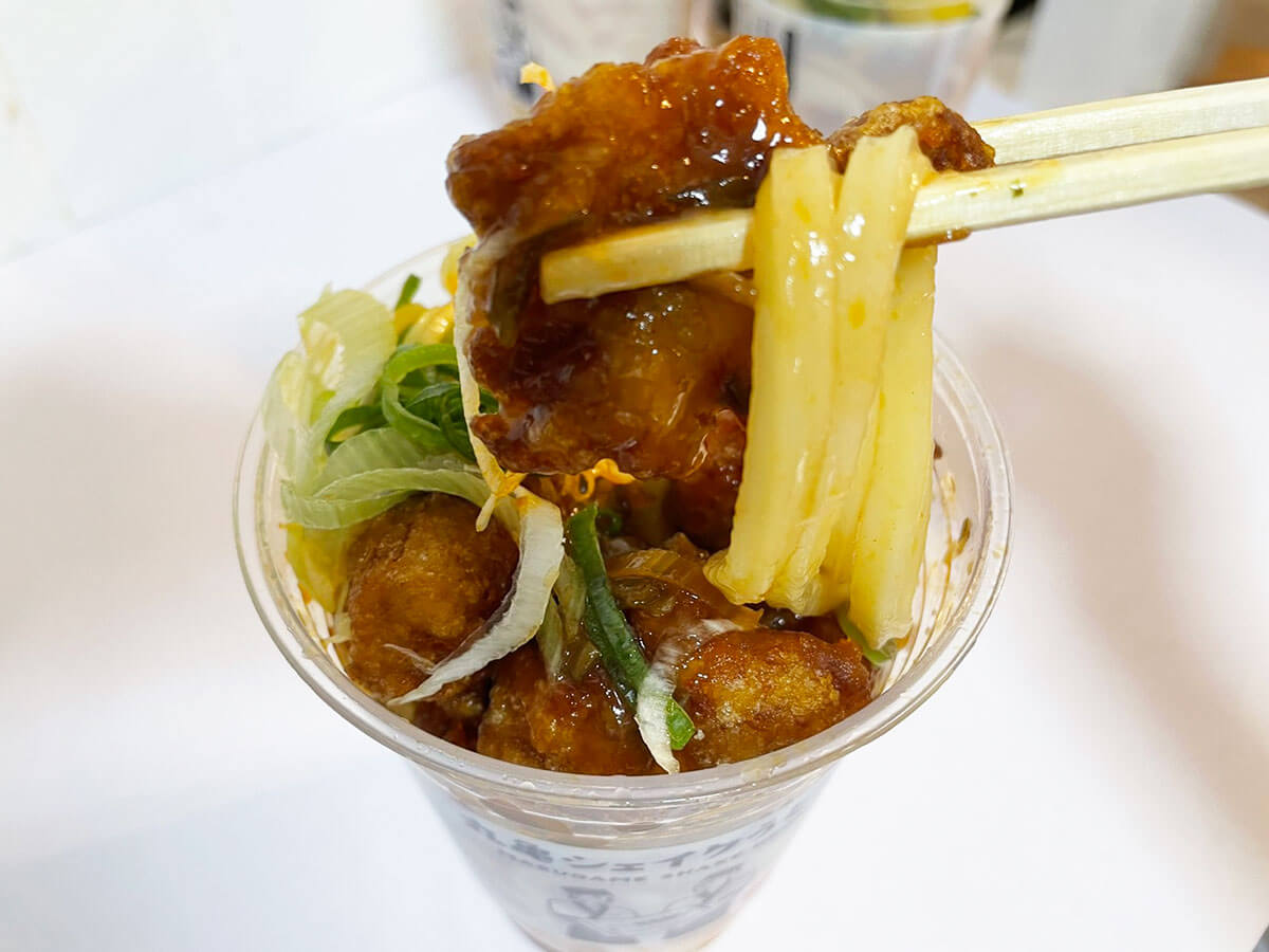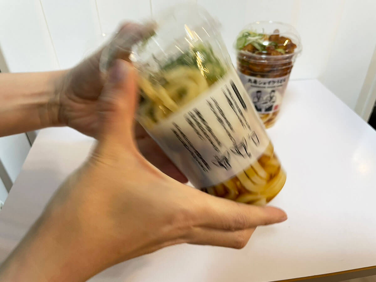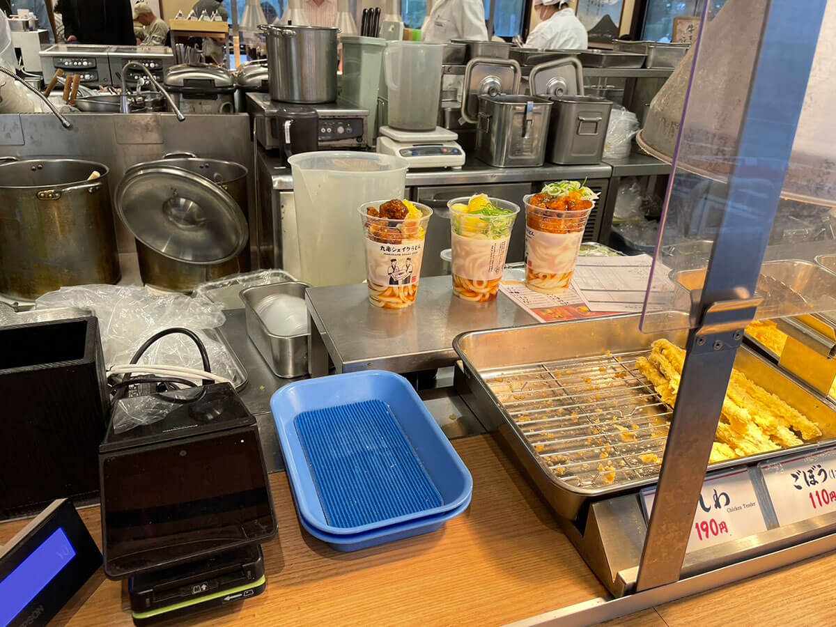 サイゾーウーマン暮らし食べ物丸亀製麺、運営会社が純利益43%減 暮らし 人気チェーン店、実食レビュー 【丸亀製麺】運営会社が純利益43%減でも……「シェイクうどん」食べてわかった「攻め」の意欲 2024/08/15 13:00 仲宗根由紀子(エンタメライター) 丸亀製麺暮らし 丸亀製麺の看板(C)サイゾーウーマン はなまるうどん、杵屋など数あるうどんチェーンの中で、売上高・店舗数ともに群を抜いている「丸亀製麺」。昨年、何かと話題になった「シェイクうどん」が復活したと聞きつけ、早速食べてきました! ※2024年4月23日公開の記事を再編集しています。 目次 ・【丸亀製麺】トリドールホールディングス、純利益43%減 ・丸亀はうどんチェーン売上高首位 ・「シェイクうどん」購入でミス! ・「シェイクうどん」4種をチェック ・「シェイクうどん」を実食! ・丸亀製麺はコスパ良すぎ ※価格はすべて税込。 ※価格やメニューは2024年4月22日時点の情報です。 ※店舗によって価格やメニューおよびシステムが異なることがあります。 ※最新の情報は公式サイトや公式SNSをご確認ください。 【丸亀製麺】トリドールホールディングス、純利益43%減 丸亀製麺などを運営するトリドールホールディングス。2024年4〜6月期の連結決算は、純利益が前年同期比で43%減の15億円だったと「日本経済新聞」で報じられました。 一方、売上高にあたる売上収益は25%増の658億円。本業のもうけを示す「事業利益」は13%増の44億円、特に「丸亀製麺」の事業利益は22%増と業績をけん引したとのこと。米国、英国、香港での海外飲食事業が足を引っ張ったとされています。 【丸亀製麺】2位の「はなまるうどん」を引き離しトップ! 全国に800店舗以上を運営する丸亀製麺。うどんチェーンの店舗数では、2位のはなまるうどんの444店舗(2023年2月時点)に大差をつけており、売上高でもうどん業界で独走状態が長年続いています。 その魅力は、なんといっても店舗で小麦粉から作る打ち立て麺! 店舗に入るとまず目に飛び込んでくる製麺機は、この上ない説得力を漂わせています。 そんな絶対王者である丸亀製麺ですが、昨年5月には、テイクアウト商品「丸亀シェイクうどん」がメニューに新登場。販売開始早々に、SNSユーザーが「うどんにカエルが混入している」と訴える騒動はあったものの、発売から約2カ月半で累計販売数250万食を突破するほどの人気を誇りました。 そして、今月16日から「丸亀シェイクうどん」がメニューに再登場! ラインアップは、新メニュー3種と再登場メニュー2種の計5種となっています。 テイクアウト専用「丸亀シェイクうどん」全5種類 ・よくばりシェイクうどん(新作) 540円 ・鶏から塩レモンシェイクうどん(新作) 690円 ・ピリ辛 油淋鶏シェイクうどん(新作) 690円 ・明太とろろシェイクうどん(再登場) 390円 ・凍らせ塩レモンシェイクうどん(再登場) 490円 ※販売期間:6月中旬まで 今回は4種類を購入し、実食してみます。 【丸亀製麺】「シェイクうどん」がない……テイクアウト非対応店舗にご注意を 「シェイクうどん」どこ!?(C)サイゾーウーマン 早速、某駅構内の「丸亀製麺」へ到着。しかし、「シェイクうどん」のメニューが見当たりません。 キョロキョロしていると、「テイクアウトメニューは扱っておりません」の貼り紙を発見。どうやら「丸亀製麺」にはイートイン専門店舗があるようです。 ちゃんと事前に調べてから行くべきでした……。皆さまもご注意くださいね。 テイクアウトに対応している店舗!(C)サイゾーウーマン 気を取り直して、今度はテイクアウト商品も扱っている「丸亀製麺」に到着。 テイクアウトのメニュー表(C)サイゾーウーマン やはり、メニュー表でも「シェイクうどん」が押されていました。小ぶりに見えますが、「うどん1玉(並)入ってます!」とのこと。 テイクアウト専用レジ(C)サイゾーウーマン 注文すると、目の前で手際よく「シェイクうどん」が作られていきます。 持ち帰る際、袋の底に丸い穴が開いた段ボールを敷いてくれたので、スタバでテイクアウトした時のような安定感がありました。 【丸亀製麺】「シェイクうどん」新作含む4種をチェック! シェイク前のうどん(C)サイゾーウーマン 新作含む4種を持ち帰りまりました。パッケージのデザインがかわいい! イラストはおしゃれな線画が人気の長場雄氏が手掛けているそう。このイラストを見ていると、「丸亀製麺」の店員さんが愛おしく思えてきます。 新作の「よくばりシェイクうどん」(C)サイゾーウーマン 「よくばりシェイクうどん」(540円)は、「お子さまから大人まで、大好きなおかずを集めたよくばりな一杯」とのこと。打ち立てのうどんに、鶏のから揚げ、ハンバーグ、赤ウインナー天、かきたまが豪快にのっています。 新作の「ピリ辛 油淋鶏シェイクうどん」(C)サイゾーウーマン 「ピリ辛 油淋鶏シェイクうどん」(690円)は、鶏からにピリ辛の油淋鶏たれとラー油、白ねぎを添えた一杯。 ふたを開けた瞬間にタレの香りが強め