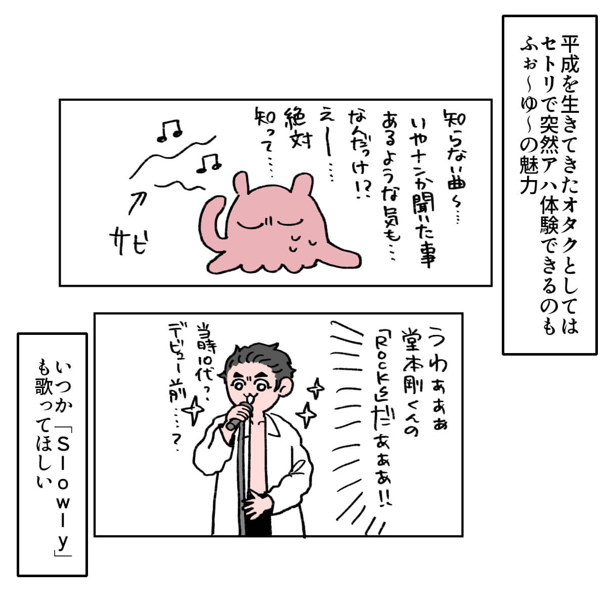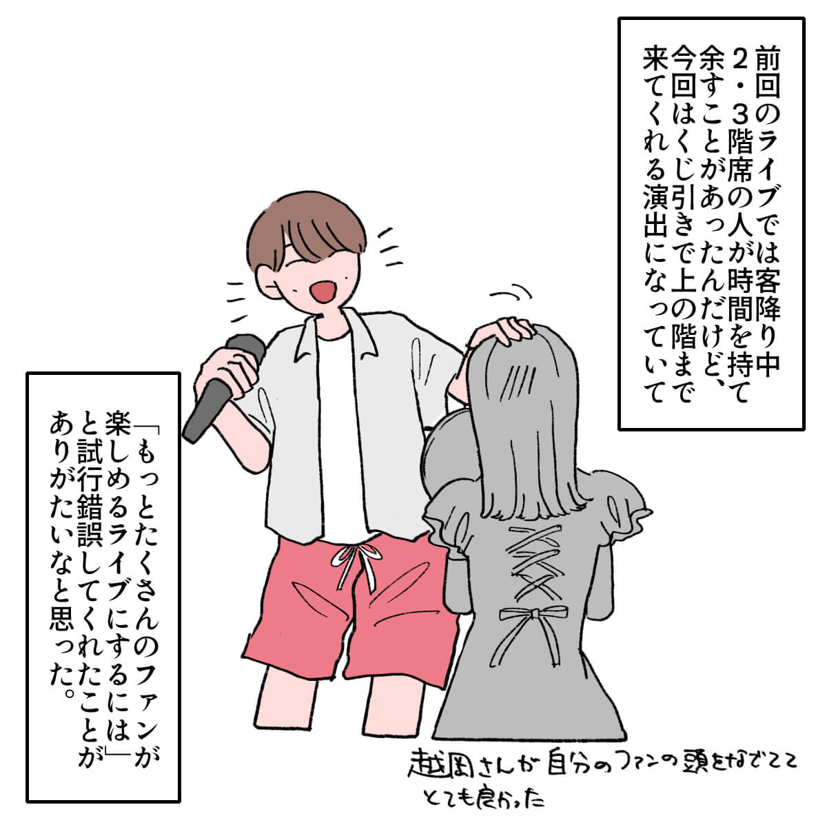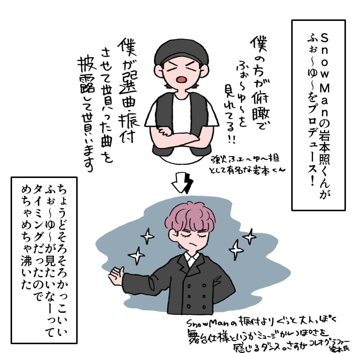 サイゾーウーマン男性アイドルSTARTO(旧ジャニーズ)ふぉ~ゆ~初の夏ライブ『PANIC』レポ 男性アイドル [ドルオタ漫画家・竜田トキヒロの“推し事”見聞録]vol.67 Snow Man・岩本照の振り付けがさすが! ふぉ~ゆ~初の夏ライブ『PANIC』レポ 2024/08/08 12:30 竜田トキヒロ(マンガ家) ふぉ~ゆ~竜田トキヒロの“推し事”見聞録STARTO ――Twitterで日々、ジャニーズタレントにまつわるイラストを投稿中のジャニオタ漫画家・竜田トキヒロが、現場レポートからドラマや映画、番組レビューまで、“推し事”の様子をお届け! 今回は、舞台を中心に活躍する4人組グループ・ふぉ~ゆ~のコンサート『ふぉ~ゆ~ LIVE TOUR 2024 “PANIC”』東京公演(TOKYO DOME CITY HALL)の模様をレポート! 福田悠太、辰巳雄大、越岡裕貴、松崎祐介の4人の「ゆう」からなるふぉ~ゆ~。2011年に結成され、CDデビューをしないまま、17年にジュニア(当時はジャニーズJr.)を卒業した彼らですが、その確かな実力はKinKi Kids・堂本光一ら先輩たちからも抜群の信頼を寄せられています。 19年の初単独コンサート以来、秋から冬にかけてライブを行うことが定番となっていた彼らにとって、初めての真夏の開催となった今回のライブ。いったいどんな内容になっていたのか、イラストと共に振り返っていきます。 目次 ・ふぉ~ゆ~初の夏ライブで感じた“最強感” ・ふぉ~ゆ~、KinKi Kidsへの愛が強すぎ!? ・客降り演出で越岡裕貴がファンの頭をなでる ・Snow Man・岩本照プロデュース曲も ふぉ~ゆ~、初の夏ライブ『PANIC』で感じた4人の“最強感” ふぉ~ゆ~、KinKi Kidsへの愛が強すぎ!? 堂本剛 のソロ曲披露 ふぉ~ゆ~・越岡裕貴がファンの頭をなでた! 客降り演出に感激 Snow Man・岩本照、自身の振付け曲でふぉ~ゆ~をプロデュース! 【ジャニオタマンガ】ふぉ~ゆ~の“ギャップ”にメロメロ! ライブ『HAPPY 4U.HOUR』レポ――Twitterで日々、ジャニーズタレントにまつわるイラストを投稿中のジャニオタ漫画家・竜田トキヒロが、現場レポートからドラマや映画、番組レビューまで、“推し事”の様子を...サイゾーウーマン2023.10.18 竜田トキヒロ(マンガ家) 漫画家、イラストレーター。育休中に執筆したエッセイ漫画でKADOKAWAコミックエッセイ大賞受賞。Ameba、ライブドア公式ブロガーを経たのち現在はインフルエンサーとしてエンタメ、オタクに特化した漫画やイラストや体験ルポ等幅広く執筆。著書『コミュ障母さんとごきげん娘』(KADOKAWA) X:@musumenuma 最終更新:2024/08/08 12:52 ジャニオタ、一度はふぉ~ゆ~現場経験すべき 関連記事 【ジャニオタマンガ】ふぉ~ゆ~の“ギャップ”にメロメロ! ライブ『HAPPY 4U.HOUR』レポBE:FIRSTの歌唱力の高さに「生で聞きた~い」と感動! アマプラ配信初ドームライブ映像レビューSnow Man・佐久間大介のダンスはさすが! BE:FIRST・SOTAは異次元すぎた『音楽の日』レビューキンプリ・高橋海人の体幹、BE:FIRST・SOTAの動きがすごい! 『THE MUSIC DAY』レビュー『それスノ』で『ひみつの嵐ちゃん!』「マネキンファイブ」が復活! 目黒蓮の“モテ男”コーデとは? 次の記事 【富士そば】賛否メニューを実食したら最高だった >