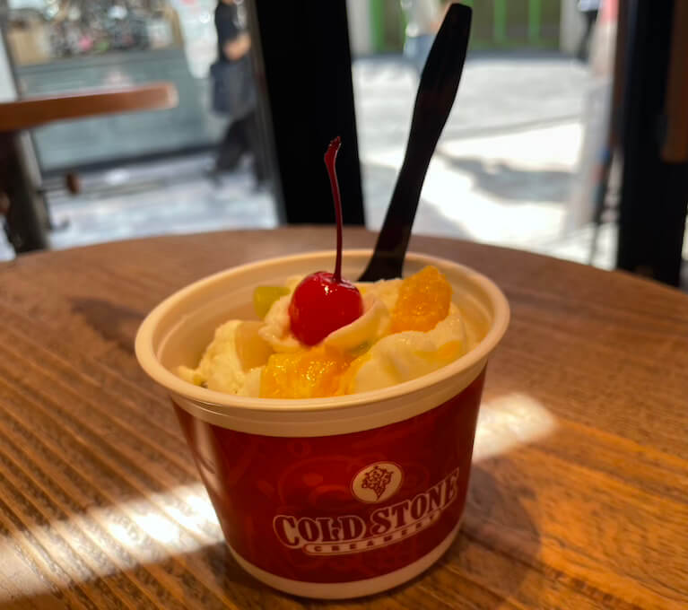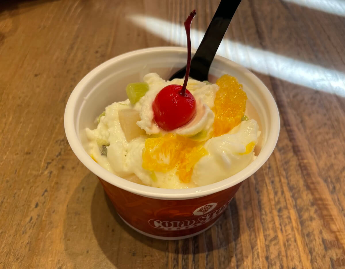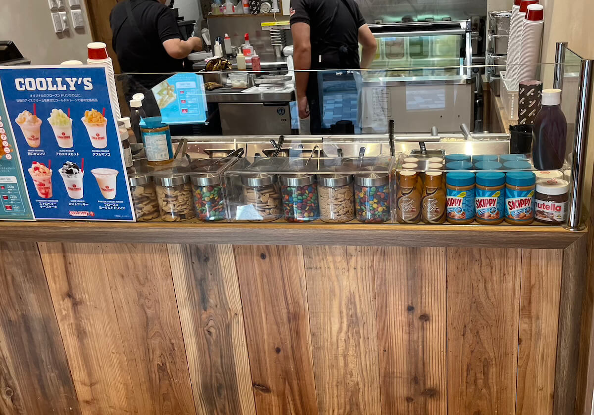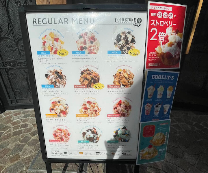 サイゾーウーマン暮らし食べ物【コールド・ストーン】歌が激変していた 暮らし 話題のチェーン店探訪 絶滅危機から復活の【コールド・ストーン】、食べに行ったら「歌」のイメージ激変でびっくり! 2024/08/25 15:00 サイゾーウーマン編集部 (写真:サイゾーウーマン) かつて人気を集めたアイスクリームショップ「コールド・ストーン・クリーマリー」。一時はわずか2店舗という絶滅危機でしたが、最近再び店舗が増加中! ということで、実際に食べてきました。 目次 ・【コールド・ストーン・クリーマリー】とは? 絶滅危機から復活! ・【コールド・ストーン・クリーマリー】行ってきた ・「ザ・アンニン」実食! ・歌の印象が激変、万人に受け入れられそう 【コールド・ストーン・クリーマリー】とは? 絶滅危機から復活! 「築地銀だこ」「野郎めし」など人気の飲食チェーン店を展開する株式会社ホットランドが運営する「コールド・ストーン・クリーマリー」。 「コールド・ストーン・クリーマリー」は2005年に日本へ上陸、一時は話題のアイスクリーム店になりましたが、18年12月期に3800万円の純損失を計上し債務超過に。 かつては30店以上あったという店は、22年にわずか2店舗となったことが一部ニュースサイトなどで報じられています。しかし、それから数年後の現在は5店舗まで復活しているんです。 【コールド・ストーン・クリーマリー】行ってきた 東京・原宿にある「コールド・ストーン」。町並みに溶け込むかわいらしいミントグリーンの外壁と、外国人客を意識してるだろうのれんや提灯の和風アイテムが目を引きます。 世界観がかわいい(写真:サイゾーウーマン) 和風アイテムも素敵です(写真:サイゾーウーマン) 訪れたのは平日の午後2時半。猛暑の中、駅から歩いてきたのでアイスクリームへの欲望は今年一番に高まっています。 外に置かれたメニュー表には、「毎月21日22日23日はストロベリー2倍」というお知らせがありましたが、この日は20日! ニアミスでした。 外看板(写真:サイゾーウーマン) 店内にあるメニュー表はさらに魅惑的!! せっかくなら、「Tokyo限定」の焼きさつまいも、宇治抹茶あずきを食べたいと思いつつ、人気No.1のストロベリーショートケーキセレナーデも気になる! でも、今日は暑いから軽めのジェラート系もいいなあ……なんて迷いまくり、全然決められません。全部おいしそう! 子どもの夢が詰まったようなメニュー表(写真:サイゾーウーマン) コールド・ストーンといえば、この光景。マイナス9度に冷えた石板の上で、店員さんがアイスとナッツやフルーツをこねこねしながら歌ってくれるんですよね。 そう……その「歌」こそ、筆者がコールド・ストーンに行きづらかった理由の一つなんですが、今日は歌も楽しむ気持ちでやってきました! この前に立って歌を聞くと思うとちょっと構える(写真:サイゾーウーマン) すでに店内にいた男性客2人組(中国系の観光客のよう)が、男性店員さんの歌をちょっと照れながら笑顔で受け止めていたのを見て、「この柔らかい雰囲気なら、なんかいけそう!」と自信もわいてきました。 【コールド・ストーン・クリーマリー】「ザ・アンニン」実食! 今回は迷いに迷ったあげく、期間限定の「杏仁ジェラート」から「ザ・アンニン」をオーダー。レギュラーサイズのカップを選んで、金額は639円です。 杏仁ジェラートのメニュー(写真:サイゾーウーマン) 担当の男性店員さんの物腰が柔らかく、コールド・ストーンの店舗が最近また増えていることなどお話してくれました。 そして、その穏やかな空気感のまま「今日は歌を歌ってもよろしいでしょうか?」と極めて謙虚におうかがいを立ててくださり、こちらも「はい、ぜひお願いします」とお返事です。 そうして店員さんが歌ってくれた歌は、不思議とこちらをニコニコとさせる平和で温かなもので、「あれ? なんで昔はあんなに嫌だったんだろう?」と拍子抜け。まあ、たまたま店員さんの声色や雰囲気が良かっただけかもしれませんが、それにしてもイメージが激変しました。 「ザ・アンニン」かわいい(写真:サイゾーウーマン) そして、「ザ・アンニン」が完成! ビジュアルがかわいい! シロップ漬けのさくらんぼが映えますね。そのほかオレンジ、キウイ、白桃が入っています。 どこから見てもかわいい(写真:サイゾーウーマン) 食べてみると、味は見事に「杏仁豆腐」。あれがジェラートになっている新体験です。なめらかな舌触りの中に、フレッシュなキウイやオレンジが良いアクセントになっています。 なにより、生のキウイの程よい酸味が、汗をかいて疲れた体に染み渡る! 白桃は生ではなくシロップ漬けですが、ダイスカットのザクザク感が良い感じです。 フレッシュなオレンジとキウイが入っている(写真:サイゾーウーマン) アイスクリームにフルーツがミックスされると、こんなにおいしくなるんだなあと、市販のアイスでは得られない味覚に大満足! 暑い日にぴったりの一品でした