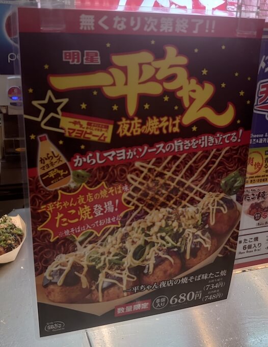 サイゾーウーマン暮らし食べ物【銀だこ】一平ちゃんコラボの味は? 暮らし 話題のチェーン店探訪 【築地銀だこ】「一平ちゃん」コラボ味って、つまりたこ焼き味では? 食べたら実力に驚いた! 2024/09/02 15:00 阿左美賢治(ライター) 銀だこ フードコート前にあった「築地銀だこ」のパネル(写真:サイゾーウーマン) 株式会社ホットランドが運営するたこ焼きチェーン「築地銀だこ」。揚げることで独特の触感を持つたこ焼きが特徴の同チェーンですが、現在異色すぎるコラボを行っているようで……!? グルメライターがそんな「銀だこ」を訪れ、コラボ商品を実食してきました。 目次 ・【銀だこ】495店舗を展開! ・「一平ちゃん」「推しの子」などコラボ商品だらけ! ・「一平ちゃん」コラボ、揚げ玉が特徴? ・「一平ちゃん」コラボを実食! ・「一平ちゃん」コラボは全力でオススメできる商品! 【銀だこ】495店舗を展開! たこ焼きチェーン大手の「築地銀だこ」。株式会社ホットランドが運営し、今年の1月時点では全国に495店舗(日本ソフト販売株式会社の「飲食店チェーンの店舗数ランキング」2024年版による)を誇る同チェーンは、店舗数でたこ焼きチェーン店の日本一となっています。 一方で、群馬県桐生市発祥にもかかわらず、“築地”を名前に冠していることをイジられたり、焼き上げた後に揚げるような工程を経ることで、独特の食感を持ったこ焼きの味について賛否を集めたりと、良くも悪くもネット上で話題になる同店。 そんな銀だこが、8月28日から“異色”すぎるコラボ商品を販売開始し、注目を集めています。それが明星食品株式会社の販売するカップ焼きそばの人気商品「明星 一平ちゃん 夜店の焼そば」(メーカー希望小売価格254円、以下「一平ちゃん」)とのコラボ商品「一平ちゃん夜店の焼そば味 たこ焼」(734円、税込み/以下同)です。 同じ粉もの仲間である焼きそばの味を再現する、というこのコラボ商品について、ネット上では「絶対うまい」「食べてみたい!」という声が多く見られています。 【銀だこ】「一平ちゃん」「推しの子」などコラボ商品だらけ! 「一平ちゃん」との異色コラボ商品を受けて、筆者は「いや、両方ともソースとマヨネーズの味付けだし、コラボしたところで普通のたこ焼きとそんなに味が変わらないのでは……?」という疑問を抱くことに。 実際のところを確かめるべく、同商品を実食することにしました。 「一平ちゃん」コラボの掲示(写真:サイゾーウーマン) 最寄りの店舗を訪れてみると、店舗のパネルには「一平ちゃん夜店の焼そば味 たこ焼」を宣伝するパネルが。ほかにも、人気アニメ『推しの子』や、大谷翔平選手が所属するMLBチームのロサンゼルス・ドジャースとのコラボなども行っているようで、こちらも宣伝する垂れ幕やパネルが置いてありました。 どんだけコラボしてんの!?(写真:サイゾーウーマン) もちろんタイミングもあるのでしょうが、同時並行で3つのコラボを行っているチェーンというのはなかなか珍しいな……と思いながら、「一平ちゃん夜店の焼そば味 たこ焼」と、比較するためのスタンダードメニューである「ぜったいうまい!! たこ焼」(626円)をテイクアウトでオーダー。 店員さんが商品を作る工程を眺めていると、どうやら通常のたこ焼きと「一平ちゃん夜店の焼そば味 たこ焼」では使うソースが違うようで、別々の容器からたこ焼きにかけていました。 なお、通常の「たこ焼き」に関しては、ソースを小袋で別添えにしてもらうことも可能なようですが、できるだけ同じ条件で比較したかったため、最初からかけてもらいました。 今回はこの2種類のたこ焼きに加え、たまたま筆者の家にストックされていたコラボ対象である「一平ちゃん」の3つを実食し、それぞれを比べていこうと思います。 【銀だこ】「一平ちゃん」コラボ、揚げ玉が特徴? たこ焼き2種と「一平ちゃん」 メタリックな真ん中のからしマヨが「一平ちゃんたこ焼き」用、右端はカップ麺「一平ちゃん」のからしマヨ(写真:サイゾーウーマン) さっそく家に持ち帰ったたこ焼き2種と「明星 一平ちゃん 夜店の焼きそば」の食べ比べを行うことにしました。 それぞれについているマヨネーズをチェックしてみると、普通のたこ焼きに使われているマヨネーズは、銀だこオリジナルのもの。対して「一平ちゃん夜店の焼そば味 たこ焼」には、一平ちゃんの代名詞ともいえる「オリジナルからしマヨネーズ」がついていました。 味を確認してみると、カップ麺「一平ちゃん」のからしマヨネーズと違いはなく、「築地銀だこ」の公式サイトにも「オリジナルからしマヨネーズ」は“同じものをご用意”したと書かれていました。 「一平ちゃん夜店の焼そば味 たこ焼」にはねぎと揚げ玉が乗ってます(写真:サイゾーウーマン) 通常のたこ焼(写真:サイゾーウーマン) それぞれの断面。たこ焼きそのものには違いがないようです(写真:サイゾーウーマン) たこ焼き同士の比較をしてみました。 