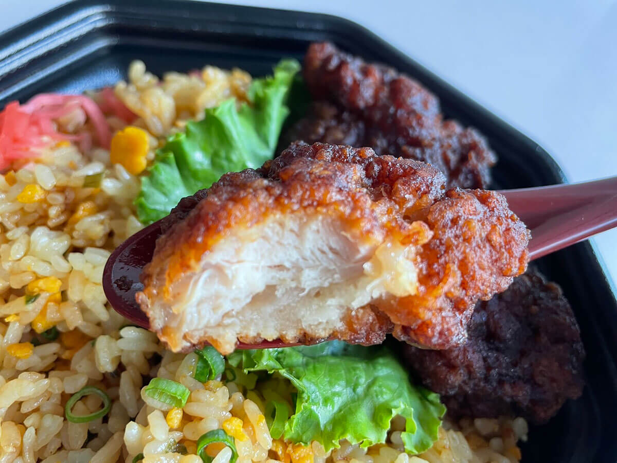 サイゾーウーマン暮らし食べ物ベルク、クロちゃん開発惣菜実食 暮らし 【ベルク】クロちゃんコラボ惣菜431円「食って大丈夫だしんか?」食べてみたら想像以上でびっくり! 2024/09/11 15:00 仲宗根由紀子(エンタメライター) ベルク ベルクの外観(写真:サイゾーウーマン) 人気スーパーマーケットチェーン「ベルク」では、あの人気芸人とコラボした惣菜が爆売れ中だとか! その味を確かめるべく、早速店舗で買ってみました! 目次 ・「クロちゃーはん」が爆売れ ・“謎の記念日”に困惑 ・「クロちゃーはん」431円を実食! ・ベルクはそもそも中華総菜に定評 【ベルク】「クロちゃーはん」売れすぎて早期終売と発表 関東地方を中心に139店舗(7月末現在)を展開する大人気スーパーマーケットチェーン・ベルク。イオングループでありながら、アイドルやプロレス団体とコラボするなど、ジャンルレスでユニークな販促方法が多いことでも知られています。 そんな独自路線は惣菜コーナーでも発揮されており、5~7月には人気アニメ『ゆるキャン△ SEASON3』(AT-Xほか)とコラボしたアヒージョや水餃子などを展開していました。 そして、先月からは安田大サーカス・クロちゃんと共同開発した「クロちゃーはん 黒マー油唐揚げ入り」の販売を開始。 発売日には、クロちゃんが自身のSNSで「ボリューム満点の黒マー油唐揚げが 最高だしんよ 9/15(日)までの期間限定発売なので ぜひ食べてみてだしんねー!」と告知。 すると、「おいしいそうだしんね」「酒に合いそうなチャーハンだしん」と好意的な声が寄せられる一方で、「食って大丈夫だしんか?」「ベルクのイメージを悪くしないでください」「チャーハンへの風評被害」などと疑うようなコメントが続出し、荒れ気味でした。 そんな中、ベルクは10日、公式SNSで「クロちゃーはん早期終売のお知らせ」との見出しで、「ベルク各店原料がなくなり次第、販売を終了」すると発表。当初は9月15日まで販売予定だったものの、「予想を大きく上回る売れ行き」だったそうです。 そんな大人気のチャーハンとは、一体どんな味なのでしょうか。販売が終了する前に、ダッシュで店舗へ向かいます! 【ベルク】「クロちゃーはん」431円をゲット! “謎の記念日”に困惑 ベルクの惣菜売り場に到着するやいなや、売れ筋商品である「柔らかロースかつ重」の隣に、中華鍋を振るクロちゃんの販促ポスターと「クロちゃーはん」を発見! しかも、筆者が訪れた夕飯ラッシュ前のタイミングで、23個も売り場に並んでいました。 容器も黒い(写真:サイゾーウーマン) こちらが「クロちゃーはん」。カロリーは推定値で877kcal、脂質は44.4gとのこと。クロちゃんの名前にかけて“黒”にこだわった商品のようです。 クロちゃんの写真は控えめサイズ(写真:サイゾーウーマン) クロちゃんがプリントされたシールには、「9月6日はクロちゃんの日」という“謎の記念日”を報告する文字が! 「クロちゃんの日って一体!?」と困惑しつつ調べてみると、なんと9月6日に千葉県「ベルクフォルテ津田沼店」で購入した先着96人を対象に、クロちゃん本人から「あ~ん」をしてもらえる「あ~ん試食会 お口を大きく開けてワワワワワア~」を開催していた様子。 これほどの人気芸人なのに、なぜか“前日に告知”という不自然さに、『水曜日のダウンタウン』(TBS系)のどっきり企画が絡んでいるのではないかと疑わずにはいられません。 【ベルク】「クロちゃーはん」431円を実食! フタをオープン(写真:サイゾーウーマン) フタを開けると、チャーハンと唐揚げの間に葉物野菜が挟まれていたり、ちょうど良い量の紅生姜が添えられていたりと、シンプルながら気の利いた盛り付けが印象的です。 シンプルな玉子チャーハン(写真:サイゾーウーマン) 黒っぽい唐揚げ(写真:サイゾーウーマン) 商品説明によると、「たまり醤油のコクと焦がし醤油の風味が効いた『クロちゃーはん』と、焦がしにんにくの香りとコクがおいしい『黒マー油からあげ』は相性抜群だしん! クロちゃんが選んで決めた商品だしんよ!」とのこと。 「クロちゃんが考えた」ではなく「選んで決めた」というあたりに正直な人柄を感じます。 パラパラ(写真:サイゾーウーマン) チャーハンをスプーンですくうと、見事なパラパラ具合い! そのまま口へ運ぶと、一瞬で焦がし醤油の風味が口に広がり、文句なしでうまい! 優しい味付けで、添えられた紅生姜と一緒に食べても最高です。 鶏肉はふっくら(写真:サイゾーウーマン) 続いて唐揚げを食べてみると、しっかりとした濃いめの味付けで、黒マー油の焦がしにんにくの風味がかなりガツンときます。 優しい味つけのチャーハンと、パンチの利いた唐揚げのバランスが絶妙で、この味を選んだクロちゃんに「ありがとう」と伝えたい気持ちでいっぱいになりました。 【ベルク】「クロちゃーはん」431円はガツン系の味で満足度◎ 実は今回、おなかがあまり空いていない状況で食べ始めてしまった筆者ですが、「クロちゃー
