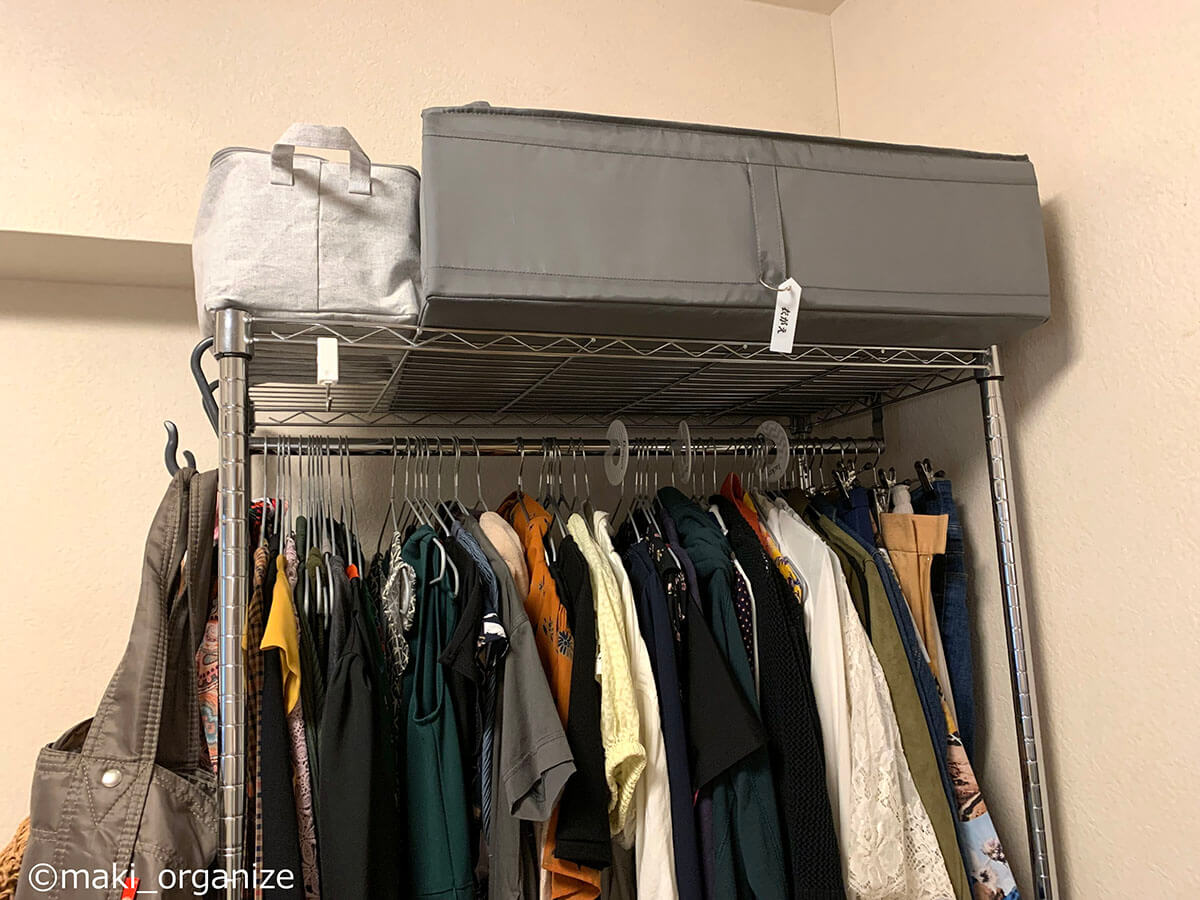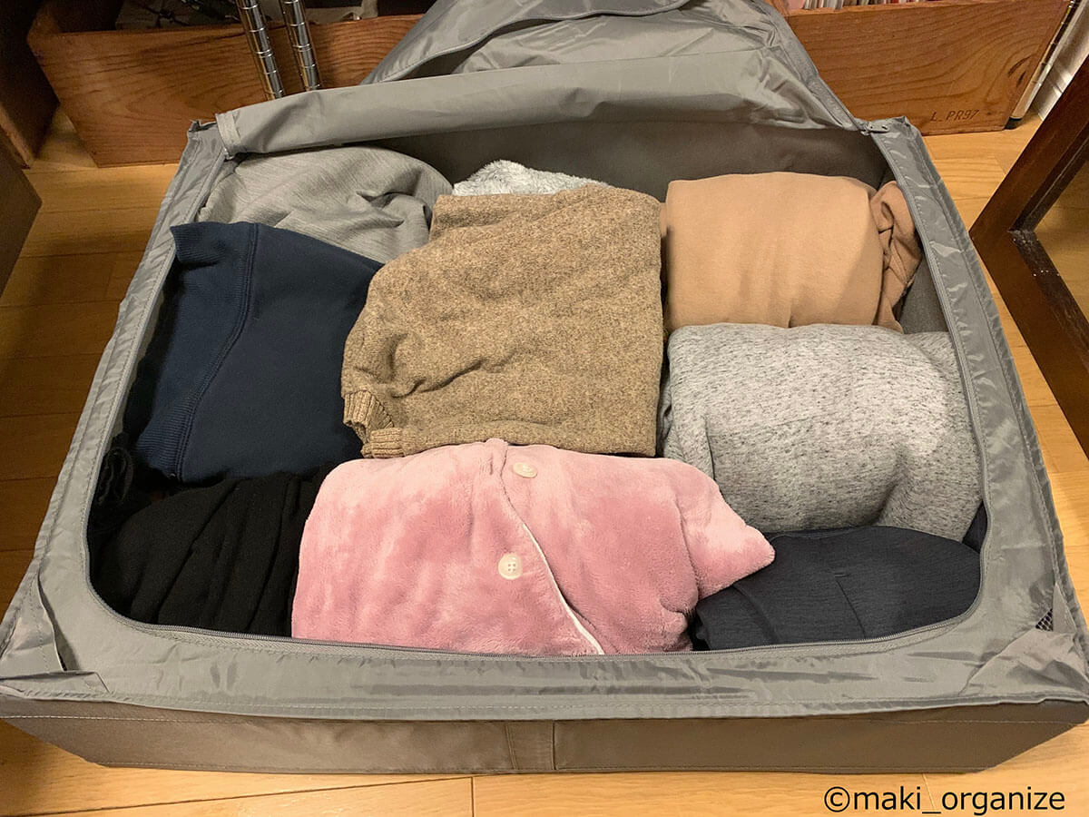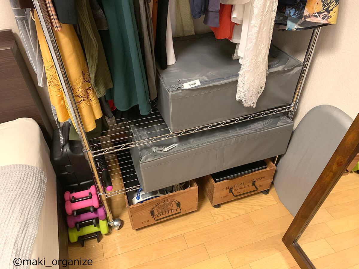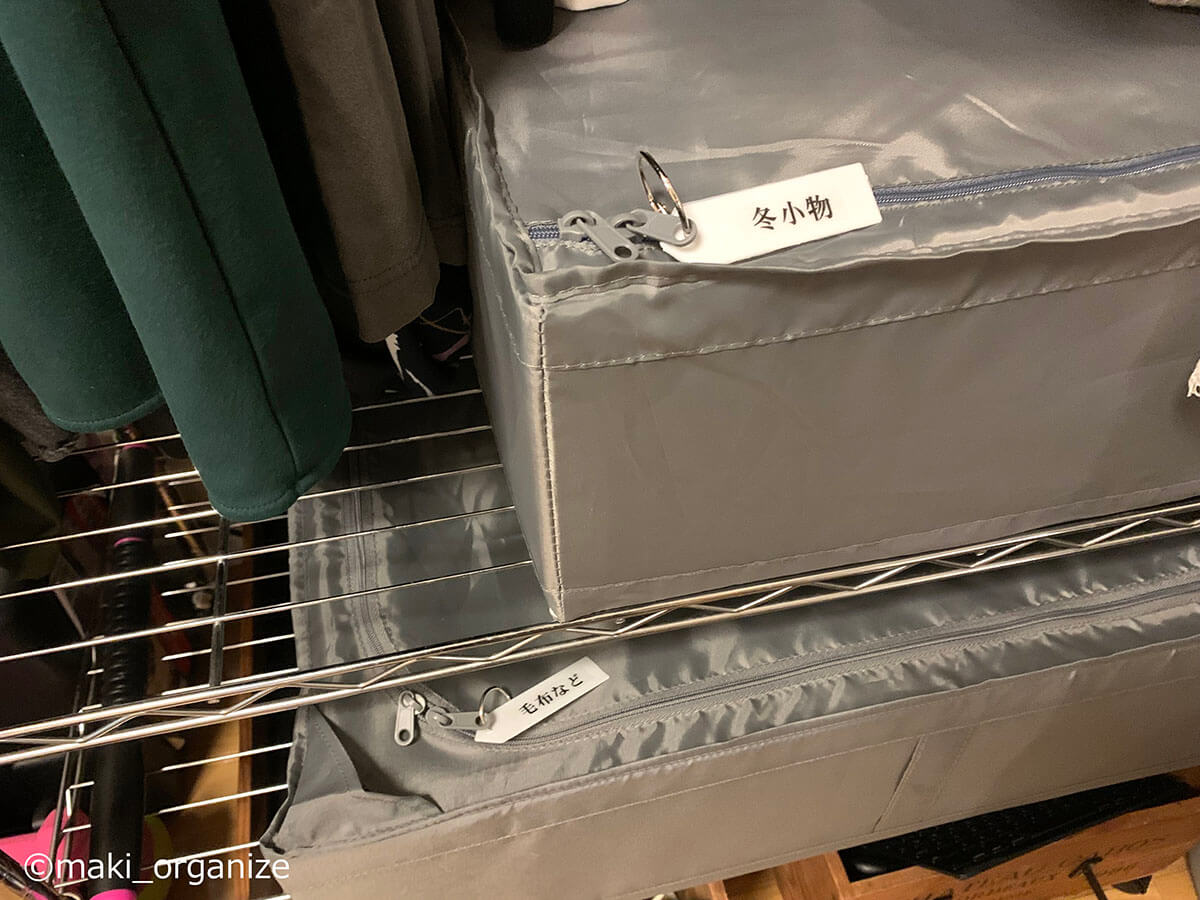 サイゾーウーマン暮らし住まい【イケア】899円「大容量収納ケース」活用術3 暮らし [連載]女たちの「煩悩部屋」ビフォーアフター 【IKEA】899円大容量「収納ケース」で寝室スッキリ! プロが教える活用事例3 2024/09/18 17:00 伊藤まき(収納ライター) 「汚部屋」ビフォーアフター 整理収納アドバイザーの伊藤まきさんが、片付けに悩む読者の自宅を使いやすく生まれ変わらせる連載シリーズ【「煩悩部屋」ビフォーアフター】。 連載企画『ビフォーアフター』新シーズンです。第10回目の片付けモニターは、東京都世田谷区・1SLDKで暮らす3人家族のまいさん(32歳)。今回は、汚部屋の片付けではなく「リノベマンション」の収納を手直しする特別編です。 目次 ・【イケア】SKUBB収納ケース活用例 ・【イケア】SKUBB収納ボックス活用例 ・【イケア】DRONAボックス活用例 ・【まとめ】かさばりが減って寝室全体がスッキリ! 衣替えの洋服や紙袋の山がどっさりです(C)maki_organize クライアントプロフィール ・まいさん(32歳) ・保育園の園長先生(フルワーク) ・育児系インフルエンサー“まい先生“としても活躍 ・3人家族 ・1SLDK ・中古マンションをリノベーション購入(持ち家) ・東京都世田谷区在住 収納に関する要望 ・掃除や片付けの頻度を少なくしたい ・子どもが自分で身支度できる仕組みを作りたい ・ベッドルームのレイアウトを変えたい ・シンプルに暮らしたいので、家具を増やしたくない 前回は「洋服を捨てない収納術」で、寝室のワードローブ用ラックを片付けました。今回はその際に使用した「IKEAの収納ケース&ボックス」について、活用例やメリットをくわしく紹介していきます。 【イケア】SKUBB収納ケース活用例:かさばる「冬小物」収納に W55×D44×H19cm(899円) 商品番号/502.903.61(C)maki_organize 使用頻度の低い小物や衣類をしまうのにぴったりなのが、イケア「SKUBB 収納ケース」です。 899円のサイズ(W55×D44×H19cm)にマフラー、ニット帽、ストール、モコモコ靴下など、「冬のかさばる小物」をまとめて収納しました。シーズンになれば、ジッパーを開けっぱなしにして、出し入れすればOKです。 【イケア】SKUBB収納ケース活用例:ジッパー付きだから「圧縮収納」できる W69×D55×H19cm(999円) 商品番号/702.949.90(C)maki_organize 部屋のすき間に押し込んでいた寝具類も、999円のサイズの(W69×D55×H19cm)SKUBB収納ケースへ。毛布を4枚入れましたが、まだまだ余裕がありますね。かさばる羽毛布団を入れても、ジッパー付きなので「圧縮収納」することが可能です。 「ラベリング」で管理をラクに! 中身がすぐに分かるので便利(C)maki_organize 冬用小物と毛布、それぞれのケースにカードリングと100均の園芸用ラベルで作った「タグ」をつけました。ケースを開けなくても中身が分かるので、管理がラクになります。 【イケア】SKUBB収納ケース活用例:引き出しのように使えて便利 ラックにスッキリ収まった!(C)maki_organize 2つのケースをワイヤーラックに設置しました。いずれも高さ19cmなのでスペースを無駄に奪わず、コンパクトに収納できるのがメリット。ふた付きなのでほこりが防げる点も◎です。 また、取っ手がついているので、引き出しのように中のモノを取り出せる点も便利ですね。 【イケア】SKUBB収納ケース活用例:衣装ケースより「収納力」あり W69×D55×H19cm(999円)(C)maki_organize シーズンオフの衣類を、999円のSKUBBケースにまとめました。衣装ケースだと3〜4枚しか入らないトップス(セーター、トレーナーなど)も余裕で入る収納力の高さが特徴。写真は9着分ですが、12枚以上は入りますね。 夏冬のスポーツウェア、キャンプや登山服など「かさばる衣類」の収納にも向いています。 【イケア】SKUBB収納ケース活用例:軽い素材だから「上段収納」に最適 ケースが多い場合は、縦置きにしてもOK(C)maki_organize ケースに収納した衣替え用の衣類を、ワイヤーラックの最上段に設置しました。軽い素材なので、「女性ひとりの力」で置くことができます。 【イケア】SKUBB収納ボックス活用例:クローゼット上段でも使いやすい W31×D34×H33cm 商品番号/101.863.90(C)maki_organize クローゼットの上段には、IKEA「SKUBB 収納ボックス」(3ピース 1799円)を設置しました。 取っ手が長いので、快適な出し入れができる点が◎。クローゼットの奥行きが70cm以上ある場合も、手前と奥の2つに分けて使えます。ただし、奥行き45cmの場合は「奥行き42cmの収納ボックス」を選ぶようにしてください。 【イケア】SKUBB収納ボックス活用例:使用頻度の低い小物を収納 取っ手が「縦長」だから使いやすい!(C)maki_organize クローゼットの上段は手を伸ばして出し入れする場所になるため、使用頻度の低い小物の収納に向いています。例えば、予備のバッグ、スポーツウェア、イベント服、季節外れの家着など。子どもがいるご家庭の場合は、サイズアウトや売りたい服をまとめておいても便利です。 【イケア】SKUBB収納ボックス活用例:ファイルボックスで仕切ると◎ 使用頻度の低いイベント小物入れに