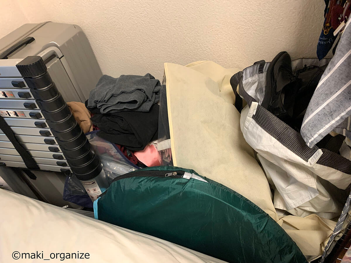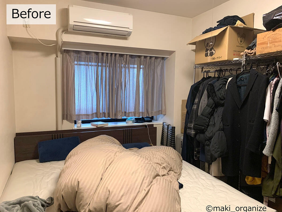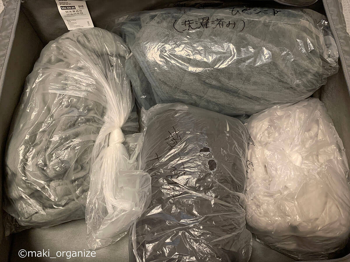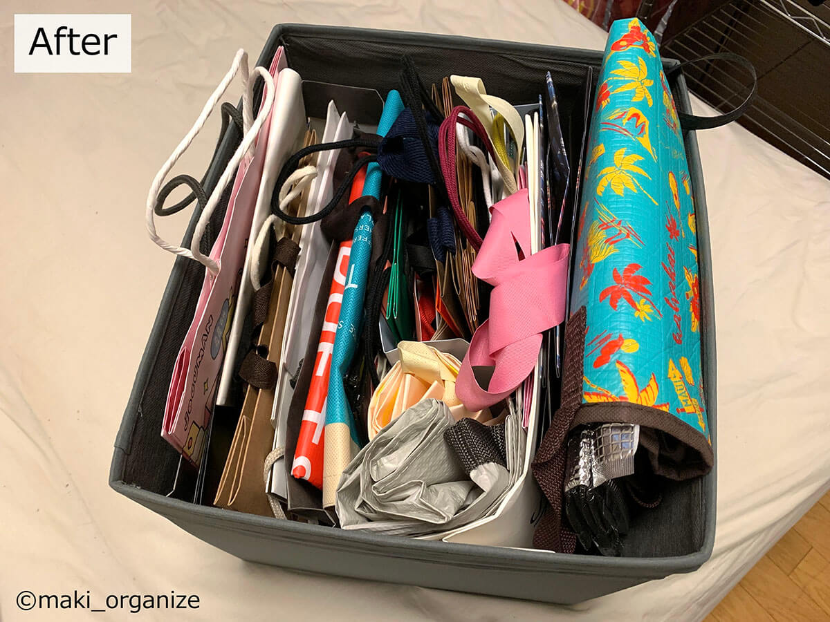 サイゾーウーマン暮らし住まい【イケア】899円「大容量収納ケース」活用術3 暮らし [連載]女たちの「煩悩部屋」ビフォーアフター 【IKEA】899円大容量「収納ケース」で寝室スッキリ! プロが教える活用事例3 2024/09/18 17:00 伊藤まき(収納ライター) 「汚部屋」ビフォーアフター 整理収納アドバイザーの伊藤まきさんが、片付けに悩む読者の自宅を使いやすく生まれ変わらせる連載シリーズ【「煩悩部屋」ビフォーアフター】。 連載企画『ビフォーアフター』新シーズンです。第10回目の片付けモニターは、東京都世田谷区・1SLDKで暮らす3人家族のまいさん(32歳)。今回は、汚部屋の片付けではなく「リノベマンション」の収納を手直しする特別編です。 目次 ・【イケア】SKUBB収納ケース活用例 ・【イケア】SKUBB収納ボックス活用例 ・【イケア】DRONAボックス活用例 ・【まとめ】かさばりが減って寝室全体がスッキリ! 衣替えの洋服や紙袋の山がどっさりです(C)maki_organize クライアントプロフィール ・まいさん(32歳) ・保育園の園長先生(フルワーク) ・育児系インフルエンサー“まい先生“としても活躍 ・3人家族 ・1SLDK ・中古マンションをリノベーション購入(持ち家) ・東京都世田谷区在住 収納に関する要望 ・掃除や片付けの頻度を少なくしたい ・子どもが自分で身支度できる仕組みを作りたい ・ベッドルームのレイアウトを変えたい ・シンプルに暮らしたいので、家具を増やしたくない 前回は「洋服を捨てない収納術」で、寝室のワードローブ用ラックを片付けました。今回はその際に使用した「IKEAの収納ケース&ボックス」について、活用例やメリットをくわしく紹介していきます。 【イケア】SKUBB収納ケース活用例:かさばる「冬小物」収納に W55×D44×H19cm(899円) 商品番号/502.903.61(C)maki_organize 使用頻度の低い小物や衣類をしまうのにぴったりなのが、イケア「SKUBB 収納ケース」です。 899円のサイズ(W55×D44×H19cm)にマフラー、ニット帽、ストール、モコモコ靴下など、「冬のかさばる小物」をまとめて収納しました。シーズンになれば、ジッパーを開けっぱなしにして、出し入れすればOKです。 【イケア】SKUBB収納ケース活用例:ジッパー付きだから「圧縮収納」できる W69×D55×H19cm(999円) 商品番号/702.949.90(C)maki_organize 部屋のすき間に押し込んでいた寝具類も、999円のサイズの(W69×D55×H19cm)SKUBB収納ケースへ。毛布を4枚入れましたが、まだまだ余裕がありますね。かさばる羽毛布団を入れても、ジッパー付きなので「圧縮収納」することが可能です。 「ラベリング」で管理をラクに! 中身がすぐに分かるので便利(C)maki_organize 冬用小物と毛布、それぞれのケースにカードリングと100均の園芸用ラベルで作った「タグ」をつけました。ケースを開けなくても中身が分かるので、管理がラクになります。 【イケア】SKUBB収納ケース活用例:引き出しのように使えて便利 ラックにスッキリ収まった!(C)maki_organize 2つのケースをワイヤーラックに設置しました。いずれも高さ19cmなのでスペースを無駄に奪わず、コンパクトに収納できるのがメリット。ふた付きなのでほこりが防げる点も◎です。 また、取っ手がついているので、引き出しのように中のモノを取り出せる点も便利ですね。 【イケア】SKUBB収納ケース活用例:衣装ケースより「収納力」あり W69×D55×H19cm(999円)(C)maki_organize シーズンオフの衣類を、999円のSKUBBケースにまとめました。衣装ケースだと3〜4枚しか入らないトップス(セーター、トレーナーなど)も余裕で入る収納力の高さが特徴。写真は9着分ですが、12枚以上は入りますね。 夏冬のスポーツウェア、キャンプや登山服など「かさばる衣類」の収納にも向いています。 【イケア】SKUBB収納ケース活用例:軽い素材だから「上段収納」に最適 ケースが多い場合は、縦置きにしてもOK(C)maki_organize ケースに収納した衣替え用の衣類を、ワイヤーラックの最上段に設置しました。軽い素材なので、「女性ひとりの力」で置くことができます。 【イケア】SKUBB収納ボックス活用例:クローゼット上段でも使いやすい W31×D34×H33cm 商品番号/101.863.90(C)maki_organize クローゼットの上段には、IKEA「SKUBB 収納ボックス」(3ピース 1799円)を設置しました。 取っ手が長いので、快適な出し入れができる点が◎。クローゼットの奥行きが70cm以上ある場合も、手前と奥の2つに分けて使えます。ただし、奥行き45cmの場合は「奥行き42cmの収納ボックス」を選ぶようにしてください。 【イケア】SKUBB収納ボックス活用例:使用頻度の低い小物を収納 取っ手が「縦長」だから使いやすい!(C)maki_organize クローゼットの上段は手を伸ばして出し入れする場所になるため、使用頻度の低い小物の収納に向いています。例えば、予備のバッグ、スポーツウェア、イベント服、季節外れの家着など。子どもがいるご家庭の場合は、サイズアウトや売りたい服をまとめておいても便利です。 【イケア】SKUBB収納ボックス活用例:ファイルボックスで仕切ると◎ 使用頻度の低いイベント小物入れに