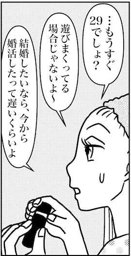 サイゾーウーマンカルチャーマンガ婚活したって遅いくらいよ カルチャー まんが『オバサンと言われても結婚したい!』読者編 【アラフォー婚活ルポ】「29でしょ? 婚活したって遅いくらいよ」 2024/09/29 13:30 白戸ミフル(マンガ家) オバサンと言われても結婚したい! ――合コン歴20年以上、累計回数2,500回以上、30代なかばに乳がんで闘病するも、現在は絶賛婚活中のライター・漫画家の白戸ミフルが「アラフォー婚活」の実体験をほぼリアルタイムでお届けします! アラフォー中の結婚は成就するのか……!? 【前回まで】 しばらくは「番外編」で読者の婚活体験をご紹介! 20代後半で婚活を始め、30代で結婚したソルトさん。婚活のきっかけは、結婚が決まった姉から言われた言葉だった! 読者エピソード編『29でしょ? 婚活したって遅いくらいよ』 次のページ ユルッと婚活スタート 123次のページ 関連記事 【アラフォー婚活ルポ】アンタは彼氏いるんだっけ? 【アラフォー婚活ルポ】「ウチに来ませんか?」終電間近、23歳男子の誘い【アラフォー婚活ルポ】「結婚しよう!」無職、26歳男子の言葉に絶句【アラフォー婚活ルポ】39歳でフラれた私は「鬼」になった! 恋愛してやる!! 【アラフォー婚活ルポ】結婚相談所の紹介は○○……アラフォー3人、2021年の婚活を振り返る! その他の作品を読む