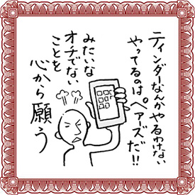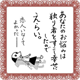 サイゾーウーマンコラムプウ美ねえさんのエプロンメモプウ美ねえさんお悩み相談大募集 コラム プウ美ねえさんのエプロンメモ 「まるで悪魔のような女です」「夫のスマホにTinder?」「“老化”を受け入れられない」プウ美ねえさんへの【お悩み相談大募集】 2024/10/08 21:00 熊田プウ助(マンガ家) サイゾーウーマンで連載中の「プウ美ねえさんのエプロンメモ」。家族関係、恋愛、夫婦関係、仕事、結婚、介護……サイ女読者のお悩みに、“プウ美ねえさん”こと熊田プウ助が、いつもそばに置いておきたい“エプロンメモ”とともに助言をするという人生相談コーナーです。 今回は、同連載のお悩み大募集ということで、過去の人気回をご紹介! 日常のちょっとしたモヤモヤや疑問、誰にも相談できないあんなことやそんなことなど、ぜひプウ美ねえさんにご相談ください。 お悩み相談応募は こちらから まるで悪魔のような女です (C)熊田プウ助 子どもの頃から仲のいいいとこのお兄ちゃんがいるのですが、その嫁が、まるで悪魔のような女です。嫁にとっての姑(つまり、いとこのお兄ちゃんの母親)に対する態度がイカれており、親戚一同困惑しております。 二世帯同居をしているんですが、嫁は姑を仲間外れのようにしていて、部屋を家のはずれに追いやり、家族旅行にも連れて行きません。姑が家の購入代金を半分以上払っているにもかかわらず、です。また、姑所有のブランドバッグや財布などを勝手に着服という行為も見逃せません。 姑……私にとってのおばさんは、昔は気が強かったのですが、歳のせいもあるのか、めっきり元気がなくなってしまいました。いとこのお兄ちゃんが、嫁にガツンと言ってやれ! と思って特に何もしていないようです。 この嫁をどうにかせよ、おばさんがかわいそうだと、いとこのお兄ちゃんに忠告すべきか。親戚も、あの家に寄り付かなくなっている状況で、私も悲しく思っています。ご助言お願いします。(あかね、38歳) 「まるで悪魔のような女です」姑をいじめる嫁に親戚困惑……プウ美ねえさんの考える“家族問題” 家族関係、恋愛、夫婦関係、仕事、結婚、介護、人生……サイ女読者のお悩みに“プウ美ねえさん”こと熊田プウ助が、いつもそばに置いておきたい“エプロンメモ”とともに回答し...サイゾーウーマン2021.02.28 『結婚式でミスチルを流す』と言い出さないか不安 (C)熊田プウ助 私には、付き合って3年半の年上の彼氏がいます。ゆくゆくは結婚したいと思っているのですが、どうしても音楽の趣味が合わないことに悩んでいます。彼氏はMr.Childrenの大ファンで、コンサートにもよく行っていますが、私はミスチルが好きではなく(むしろ嫌い)、なんとなくダサいなと思ってしまうのです。 もちろん売れてるのはわかるし、好きな人は好きなんだろうということもわかります。彼氏には、私がミスチル嫌いであることは一切言っていないのですが、ミスチルの話をされる度に嫌な気持ちになるんです。 昔付き合っていた彼氏とは、音楽の趣味が合って、よく一緒にライブに行っていました。その当時のことを思い出すと、今の彼氏はどうして……と思ってしまいます。彼氏が結婚式で「ミスチルを流す」と言い出さないかまで不安になってきています。趣味がまったく違う夫婦もいると思いますが、どうこれを乗り越えたらいいでしょうか? 音楽の趣味以外は特に問題なく、優しい彼氏なのですが……。(ぴーちゃんんさん、32歳) 彼氏は大のミスチルファン、「ダサい」と思ってしまう私……「音楽の趣味が合わない問題」にプウ美ねえさんはこう答える! 家族関係、恋愛、夫婦関係、仕事、結婚、介護、人生……サイ女読者のお悩みに“プウ美ねえさん”こと熊田プウ助が、いつもそばに置いておきたい“エプロンメモ”とともに回答し...サイゾーウーマン2020.11.30 『掃除は女性社員がしなくちゃ』に怒り (C)熊田プウ助 うちの会社は社風が古すぎて、「女だから」という理由で、女性社員が男子トイレの掃除をさせられています。何回も「男子トイレは男性社員が掃除するべき!」と上司に訴えてるんですが、なかなか実現しないので悔しいです。 一番腹が立つのが、「掃除は女性社員がしなくちゃ」といってるのが、高齢の女性社員ということ。どうしたら、「男子トイレは男性社員が掃除する」という普通のことが、普通に行われる会社にできるのでしょうか。男尊女卑許せません!(31歳、Kさん) 女性社員が「男子トイレ掃除」、理由は「女だから」! プウ美ねえさんが「最低です」と一刀両断!! 家族関係、恋愛、夫婦関係、仕事、結婚、介護、人生……サイ女読者のお悩みに“プウ美ねえさん”こと熊田プウ助が、いつもそばに置いておきたい“エプロンメモ”とともに回答し...サイゾーウーマン2020.09.30 夫のスマホに「Tinder」らしきアプリが (C)熊田プウ助 プウ美ねえさん、いつも楽しく連載を読ませていただいております。結婚して7年目になる夫がいるのですが、先日