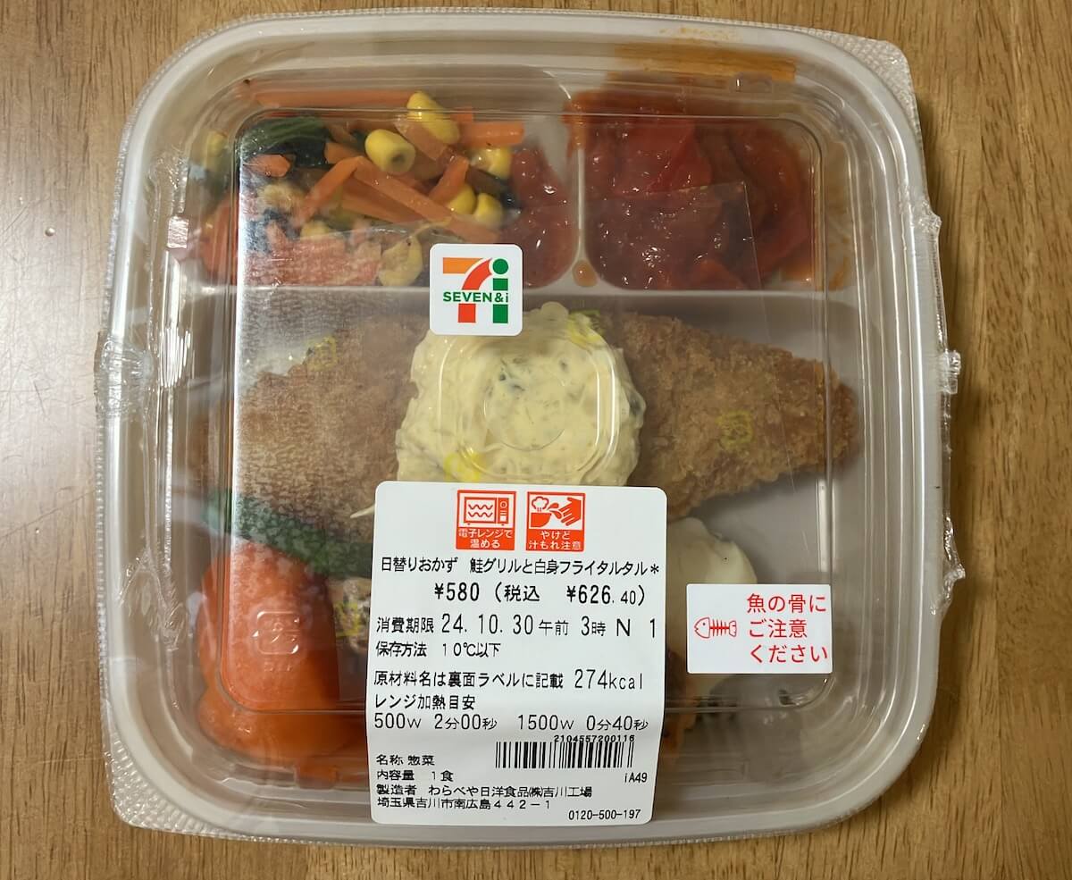 サイゾーウーマン暮らし食べ物【セブン&アイ】赤字拡大セブンミール使ってみた 暮らし 【セブン-イレブン】赤字拡大の宅配弁当「セブンミール」、利用してわかった売れない理由 2024/10/30 15:00 サイゾーウーマン編集部 セブン-イレブン (写真:サイゾーウーマン) 経営難が伝えられるセブン&アイホールディングスが、今後はコンビニ事業に注力すると発表。そこでセブン-イレブンが展開する赤字拡大中の弁当事業「セブンミール」を実際に使ってみました。 目次 ・【セブンミール】とは? 業績は赤字拡大中 ・【セブンミール】利用してみた! ・味うんぬんの前に……売れるものも売れない仕様 【セブンミール】とは? 業績は赤字拡大中 セブン‐イレブンで販売しているお弁当やお惣菜、管理栄養士が考えた健康的なお弁当やお惣菜などを近隣のセブン‐イレブンで受け取れる、または宅配してもらえるサービス「セブンミール」。 お弁当やお惣菜のほかに、セブンで販売しているブリトーなどのサンドイッチやパン類、酒類やスイーツも扱っています。サービス当初はカット済みの野菜や肉がセットになったミールキットの宅配を主力としていましたが、現在は終了しているようです。 運営する株式会社セブン・ミールサービスの業績は不振が続き、2023年2月期に純利益8,900万円と黒字に転換したものの、24年2月期決算は純利益マイナス5,200万円で赤字転換。利益剰余金はマイナス4億1,600万円で赤字拡大となっています。 【セブンミール】利用してみた! 親会社のセブン&アイホールディングスが今後はコンビニ事業に注力すると発表した中、赤字を拡大中のセブンミールが気になり、今回、実際に2日分の食事を利用してみます。 弁当・おかずのジャンルで頼めるメニューは、「日替り弁当」「日替りおかず」の二択。おかずと弁当の違いは、ご飯があるかないかです。 受け取る時間帯は昼便と夜便が選べて、2日とも昼便をセレクト。宅配サービスは税抜1,000円以上から対応で、料金は220円かかるため(税抜き1,000円以上2,999円未満は税込220円、3,000円以上で無料)、店舗受け取りにしました。 セブンミールの商品ページより 注文画面です。1日目は関東限定だという「健康バランスシリーズ」を選びました。 管理栄養士をアドバイザーとしたメニューになっていて、「熱量400kcal以下」「食塩相当量3g以下」「タンパク質、食物繊維、緑黄色野菜のうち、2種類以上摂取」できるとのこと。通常の日替わり弁当・惣菜よりも約20円高い商品です。 1日目 「健康バランス惣菜 オニオンソースハンバーグ」645.84円 さっそく実食します! 写真とまったく同じ商品で一安心。ただ、実物を一目見た瞬間に「ちっさ!」と思ってしまいました。およそ16cm四方の容器になります。 「健康惣菜 オニオンソースハンバーグ」626.40円(写真:サイゾーウーマン) 原材料など(写真:サイゾーウーマン) 「健康バランス惣菜」とは、管理栄養士が監修したお惣菜セットのこと。この日の内容はオニオンソースハンバーグ、ポークビーンズ、キャベツとコーンの和え物、ほうれん草とたまごの炒め物の4品です。 オニオンソースハンバーグの下には、オクラが入っていました。 オニオンソースハンバーグとオクラ(写真:サイゾーウーマン) ポークビーンズとキャベツとコーンの和え物(写真:サイゾーウーマン) ほうれん草とたまごの炒め物(写真:サイゾーウーマン) オニオンソースハンバーグ(写真:サイゾーウーマン) ハンバーグは優しい味。つくねに近い柔らかい食感と味わいです。原材料に表記がありませんが、豚ひき肉を使っているのかもしれません。 ポークビーンズには大豆、人参、玉ねぎ、豚ひき肉が入っていて具だくさん。トマトの酸味と甘味がバランスよくておいしいです。ただ、キャベツの和え物は、優しすぎる味つけでボヤッとした印象。病院食を思い出しました。ほうれん草とたまごの炒め物も薄味ですが、これは程よかったです。 「健康バランス惣菜」というだけあって、全体的に優しい味わいでした。外食やコンビニ食は味が濃すぎると感じている方には貴重なメニューかもしれません。 2日目:「日替りおかず 鮭のグリルと白身フライタルタルソース」645.84円 セブンミールの商品ページより 2日目は「日替りおかず」。管理栄養士監修ではない、通常の商品になります。容器のサイズはおよそ16cm四方とやはりコンパクト。上げ底が再び騒がれているのでチェックしてみましたが、問題ありません。 (写真:サイゾーウーマン) 原材料とカロリーなど(写真:サイゾーウーマン) 上げ底ではありません(写真:サイゾーウーマン) 白身フライタルタルの断面(写真:サイゾーウーマン) 鮭グリル(写真:サイゾーウーマン) 小松菜人参コーン煮とトマトの炒めもの(写真:サイゾーウーマン) まずタルタルソースから口にすると、酸味がきいていておいしい! セブンのお惣菜クオリティです。しかし、フライの断面を見てみたら、やけにスカスカ……。衣をはがしてみたところ、身