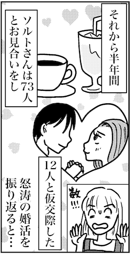 サイゾーウーマンカルチャーマンガ半年で73人とお見合い! カルチャー まんが『オバサンと言われても結婚したい!』読者編 【アラフォー婚活ルポ】半年で73人とお見合い、12人と仮交際! 2024/11/10 13:30 白戸ミフル(マンガ家) オバサンと言われても結婚したい! 半年以内に結婚相手を連れてきます! 次のページ 月に10人以上とお見合い 前のページ123次のページ 関連記事 【アラフォー婚活ルポ】「お前、もう結婚はあきらめたのか?」【アラフォー婚活ルポ】姉がアプリでゲットした再婚相手に驚き!【アラフォー婚活ルポ】バリキャリになりたいわけじゃないし、結婚はしたい【アラフォー婚活ルポ】運命だって言ってくれたのに【アラフォー婚活ルポ】オッパイのこと? 大丈夫だろ~? その他の作品を読む