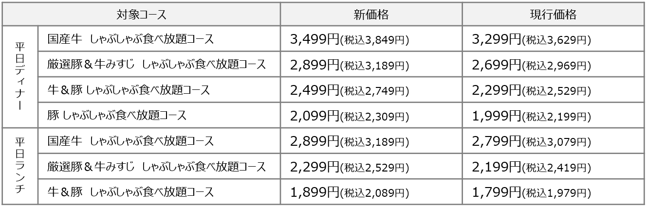サイゾーウーマン暮らし食べ物【しゃぶ葉】11月21日から値上げ 暮らし 【しゃぶ葉】11月21日から値上げ! デザートコーナーにクレープ新設 2024/11/17 13:00 サイゾーウーマン編集部 しゃぶ葉看板(写真:サイゾーウーマン) しゃぶしゃぶ食べ放題チェーンの「しゃぶ葉」が、11月21日から値上げします。金額の詳細などをまとめます。 目次 ・【しゃぶ葉】11月21日から値上げ ・【しゃぶ葉】新サービス、デザートにクレープ登場 ※2024年11月23日、平日「豚バラ しゃぶしゃぶ食べ放題コース」の金額について加筆しました。 【しゃぶ葉】11月21日から値上げ しゃぶ葉は昨今の経済状況による原材料価格をはじめとした各種コストの高騰を受け、食べ放題コースにおける価格を2024年11月21日(木)より、下記の通り変更するとのこと。 (C)しゃぶ葉 これまで1,000円台で提供されていたメニューも2,000円台に突入。平日ランチ「牛・豚 しゃぶしゃぶ食べ放題コース」は2,089円になります。(「豚バラ しゃぶしゃぶ食べ放題コース」は価格据え置きで1,539円)。ディナーは最安で「豚 しゃぶしゃぶ食べ放題コース」の2,309円です。 なお、土日祝価格は上記より220円プラス、一部の都心売価店は330円プラスになります。 【しゃぶ葉】新サービス、デザートにクレープ登場 11月21日からは、新サービスも登場。デザートコーナーにクレープ生地が登場します。ホイップクリームも常設され、クレープとの相性も◎。 ホイップ×プリン、ホイップ×ワッフルなど、スイーツアレンジの幅も広がります。 (C)しゃぶ葉 そのほか、同日からは平日ディナーに学生限定の食べ放題コースも新設。前日までの予約必須。 (C)しゃぶ葉 ※最小人数2名様~利用可能 ※本コースは延長不可です ※団体内の全員が学生の場合のみ利用可能です ※対象は、中学生/高校生/大学生/大学院生/専門学生に限ります ※学生証をご提示いただく場合がございます。必ずご持参ください しゃぶ葉ホームページ URL: https://www.skylark.co.jp/syabuyo/ サイゾーウーマン編集部 芸能・ジャニーズ・美容・暮らし・カルチャーなど、さまざまな情報を独自の切り口で発信するニュースサイト X:@CyzowomanC Instagram:@cyzowoman オンナを刺激するニュースブログ[サイゾーウーマン] 最終更新:2024/11/23 17:06 次の記事 ハイスペ医師と仮交際スタート >