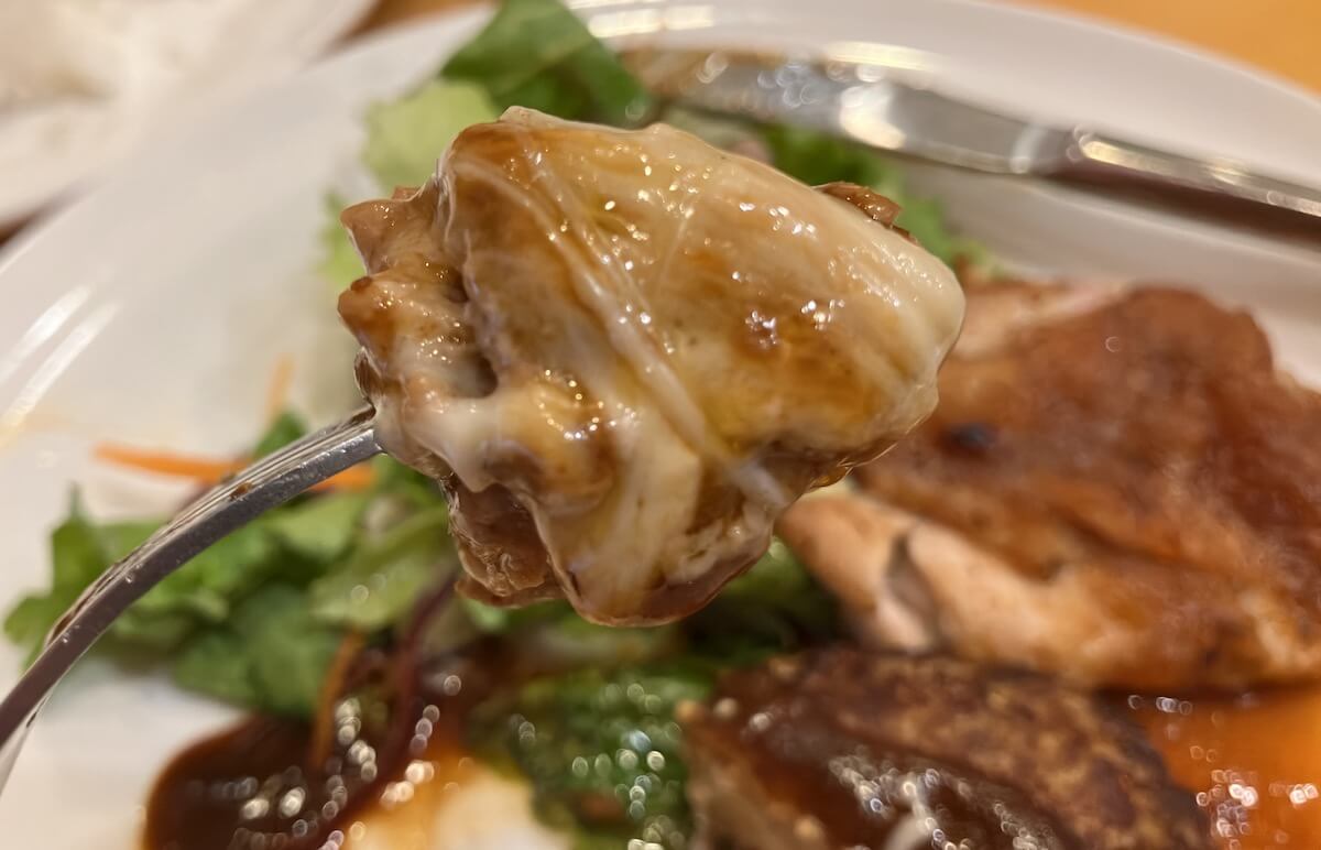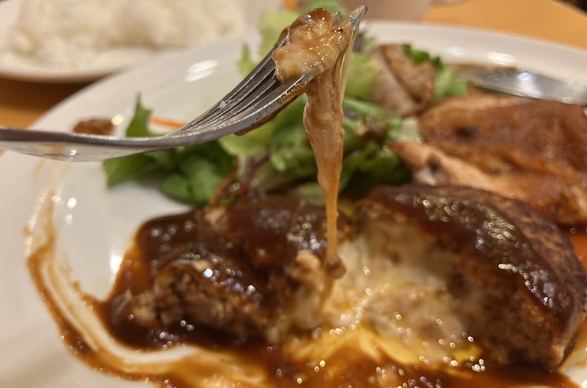 サイゾーウーマン暮らし食べ物【ガスト】日替わりランチ「月曜」実食 暮らし 【ガスト】平日限定「月曜」日替わりランチ実食! チーズINハンバーグとオニオンソースチキングリル 2024/11/18 14:00 サイゾーウーマン編集部 ガスト ガスト(写真:サイゾーウーマン) ファミリーレストラン「ガスト」が平日に提供している日替わりランチを実食! 今回は月曜日のランチを食べてきました。 目次 ・【すかいらーく】ガストの売り上げが好調! ・【ガスト】日替わりランチ、メニューと価格、販売時間 ・日替わりランチ「月曜」のメニュー実食 ※価格は店舗によって異なります。 ※2024年11月18日時点の情報です。 ※最新の情報は公式サイトやSNSをご確認ください。 【すかいらーく】ガストの売り上げが好調! ファミリーレストラン最大手の「すかいらーくホールディングス」。2024年1〜9月期の連結決算(国際会計基準)は、純利益が前年同期比2.3倍の104億円と急増しました。売上高にあたる売上収益は12%増の2946億円、営業利益は94%増の192億円。新規出店と業態転換も計画を上回る業績を残しているとか。 中でもガストは売り上げが好調で、メニューの改定や4月に商品の値上げをしたことで、客単価も上昇したとのこと。自社SNSで投稿したチラシ画像のクーポン回収率も高いといい、紙チラシとは違うユーザー層を獲得できているようです。 一方で、人件費の高騰やコメなどの原材料高により、46億円の営業減益となっています。 【ガスト】日替わりランチ、メニューと価格、販売時間 月曜から金曜まで内容が異なる日替わりランチの内容と、販売期間をまとめます。 平日限定日替わりランチメニュー (写真:サイゾーウーマン) 月曜:ミニチーズINハンバーグデミソース、チキングリルオニオンソース 火曜:若鶏の熟成もろみ焼き、春巻き、コロッケ 水曜:ミニチーズINハンバーグてり焼きソース、海老フライ 木曜:ミニチーズINハンバーグデミソース、コロッケ、ソーセージ 金曜:チキングリルてり焼きソース、アジフライ ※すべて曜日でライス(大盛り無料)、日替わりスープ(お替わり自由)がつきます。 ランチ価格 価格は地域によって異なります。同じ日替わりランチでも520円~770円と変動があるようです。 筆者が利用しているガストでは720円となっています。 販売時間 平日午前10時半〜午後5時まで ※土日祝は販売していません。 ※年末年始など一部販売していない期間があります。 ランチメニューの一部(写真:サイゾーウーマン) 【ガスト】平日限定日替わりランチ、月曜メニューを実食 月曜日の日替わりランチメニューは、ミニチーズINハンバーグデミソース、チキングリルオニオンソースです。 スープも日替わりで、この日は洋風ジンジャースープ。ジンジャーは筆者の舌では感じられず、コンソメの味のわりとシンプルな味わいです。おたまですくえませんでしたが、寸胴鍋の中にコーンと玉ねぎがわずかにありました。 (写真:サイゾーウーマン) (写真:サイゾーウーマン) ライスとメインが揃いました。ミニチーズINハンバーグデミソース、チキングリルオニオンソース、サラダになります。サラダはドレッシング抜きでオーダーしています。 (写真:サイゾーウーマン) (写真:サイゾーウーマン) チキングリルの上にはオニオンのソースがたっぷり! 大きさは9cm×6cmほど(iPhone「計測」アプリ調べ)。ハンバーグのサイズも7cm×7cmほどです。こちらにはデミグラスソースがかかっています。 オニオンソースのかかったチキングリル(写真:サイゾーウーマン) デミグラスソースがかかったハンバーグ(写真:サイゾーウーマン) まずハンバーグを2つにカットすると、肉汁とチーズがトロトロ〜! 流れ出てくるチーズと一緒にハンバーグを食べると、まさに幸せ。デミグラスとチーズの間違いないハーモニーで口中が幸福に包まれます。 またチーズを持ち上げてみると、びっくりするほどスーッと伸び、まったく切れる気配がないのでハンバーグにぐるぐると巻き付けてみました。チーズ巻きハンバーグ、おいしいです。 ハンバーグをカットしたところ(写真:サイゾーウーマン) チーズがとても伸びる(写真:サイゾーウーマン) チーズをぐるぐると巻き付けたハンバーグ(写真:サイゾーウーマン) グリルチキンはオニオンソースがたっぷり。すりおろし感のある玉ねぎがおいしく、さっぱりしつつも甘みが感じられます。デミグラスとは打って変わって和風な味わいで、脂っぽさが苦手な方でも食べ進められそう。 チキングリル(写真:サイゾーウーマン) サラダにはニンジン、紫キャベツ、レタスが確認できました。野菜にはデミグラスやオニオンソースが染みてくるので、さっぱり食べたい方には「ドレッシング抜き」がおすすめです。 ドレッシング抜きのサラダ(写真:サイゾーウーマン) 日替わりランチの月曜は、ミニチーズINハンバーグデミソース、チキングリルオニオンソースの2品。デミグラスソースとオニオンソースという「濃厚」と「さっぱり」の対照的