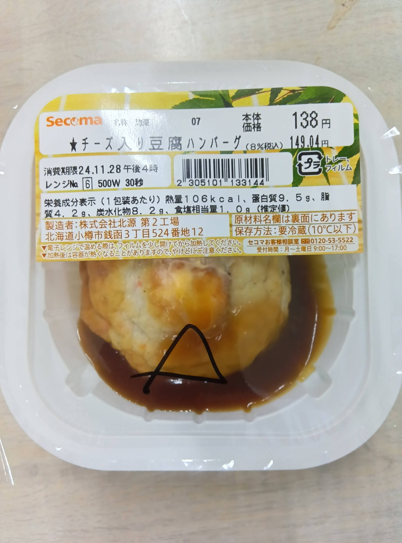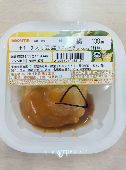 サイゾーウーマン暮らし食べ物【セイコーマート】製造器具の一部が混入 暮らし 食品回収情報 北海道【セイコーマート】「製造器具の一部が混入」豆腐ハンバーグ2643個→自主回収 2024/11/29 11:15 サイゾーウーマン編集部 回収 セイコーマート公式サイトより 北海道内のセイコーマート、セコマ他で販売された「Secoma チーズ入り豆腐ハンバーグ」について、現在商品回収が行われています。回収方法、対象商品をまとめます。 目次 ・【セイコーマート】チーズ入り豆腐ハンバーグ、2643個を自主回収 ・回収対象商品 ・【セイコーマート】「商品の安全性を考慮」 ・回収方法 ・回収後の対応 【セイコーマート】チーズ入り豆腐ハンバーグ、2643個を自主回収 株式会社北源が製造した「Secoma チーズ入り豆腐ハンバーグ」について、「製造器具の一部が混入している可能性があるため」、2,643パックの自主回収が行われています。消費者庁リコール情報サイトや厚生労働省の発表で明らかになりました。 回収を行う商品は、北海道内のセイコーマート・セコマ・ハセガワストア・ハマナスクラブ・タイエー・他施設内の販売店で、2024年11月24日から11月26日までに販売されたもの。 賞味期限は24年11月27日、11月28日、11月29日のもの。 回収対象商品 商品名:Secomaチーズ入り豆腐ハンバーグ 内容量:85g 形態:パック詰め 【JANコード】 ①2305101132147 ②2305101133144 ③2305101134141 【消費期限】 ①24.11.27 ②24.11.28 ③24.11.29 ①消費期限印字部写真(厚生労働省公式サイトより) ②消費期限印字部写真(厚生労働省公式サイトより) ③消費期限印字部写真(厚生労働省公式サイトより) 販売店:北海道内セイコーマート店・ハセガワストア・ハマナスクラブ・タイエー・他施設内販売店 販売日 :2024年11月24日から11月26日まで 納品数量:①2643個 【セイコーマート】「一部に異物混入の恐れがある」 11月27日、回収商品を製造した株式会社北源は、公式サイトに「お客様へのお知らせ」を公開。「北海道内のセイコーマート・ハマナスクラブ・ハセガワストア・タイエーで販売している『Secoma チーズ入り豆腐ハンバーグ』の一部に異物混入の恐れがあるため、当該商品を回収させていただきます」と報告、「お客様には大変ご迷惑をおかけしましたことを深くお詫び申し上げます」と謝罪しています。 同日、セイコーマートも「お客様へのお知らせ」を公開。セコマも「お客様へのお知らせ」を掲示しています。 なお、回収情報の周知は上記3サイトのほか、販売店におけるポップで行うとのことです。 回収方法 ①セイコーマートへの持参 ②下記への問い合わせ。 お問い合わせ先:セコマお客様相談室 電話:0120-53-5522 (毎週月~土曜日 AM9:00~PM5:00) 回収後の対応 返金対応 サイゾーウーマン編集部 芸能・ジャニーズ・美容・暮らし・カルチャーなど、さまざまな情報を独自の切り口で発信するニュースサイト X:@CyzowomanC Instagram:@cyzowoman オンナを刺激するニュースブログ[サイゾーウーマン] 最終更新:2024/11/29 11:15 プラスチックは怖いよ 関連記事 【資生堂】化粧品17万個が「配合量の上限を超えている」→自主回収「深くお詫び」紅茶に「カビのような黒いシミ」、【阪急うめだ本店】英国フェア販売660個→自主回収カビ発生のマドレーヌ、【阪神百貨店】梅田本店が販売→回収「深くお詫び」「異物混入」シュークリーム【コープさっぽろ】販売の1万1613個→自主回収【ヤオコー】販売わずか50店、幻の惣菜とは? 192店舗目のオープンセールで発見! 次の記事 【ポッポ】ヨーカドー閉店ラッシュで絶滅危機 >