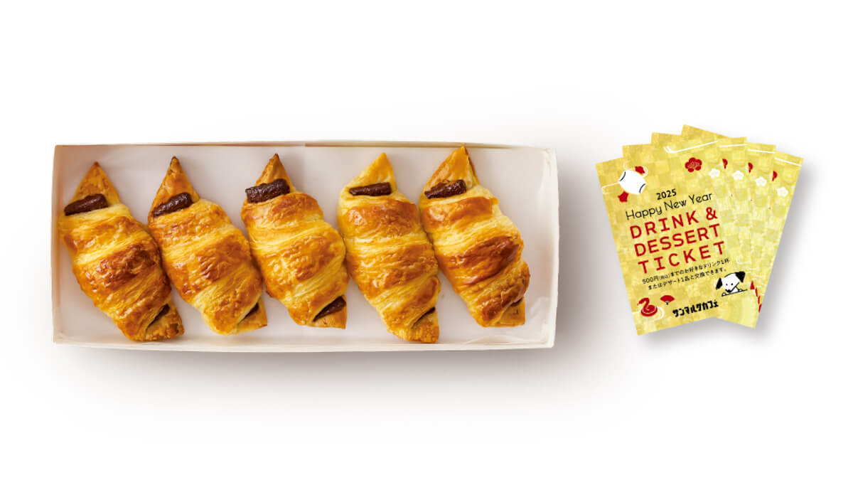 人気商品チョコクロとドリンク&デザートチケットが3,000円相当入った定番福袋。