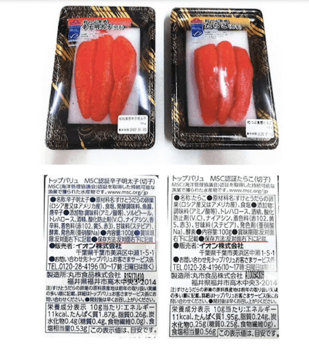 サイゾーウーマン暮らし食べ物【トップバリュ】たらこ・明太子回収 暮らし 食品回収情報 トップバリュ「粒つぶ食感たらこ・明太子」【いなげや】販売1万3087パック→自主回収「深くお詫び」 2024/12/26 13:30 サイゾーウーマン編集部 回収 (写真:サイゾーウーマン) 食品スーパー「いなげや」で販売されたトップバリュのたらこと明太子について、現在商品回収が行われています。回収方法、対象商品をまとめます。 目次 ・【いなげや】トップバリュ「粒つぶ食感たらこ・明太子」パック回収 ・回収対象商品 ・【イオン株式会社】「深くお詫び」 ・回収方法 ・回収後の対応 【いなげや】トップバリュ「粒つぶ食感たらこ・明太子」1万3087パック回収 食品スーパー「いなげや」が販売したトップバリュ「粒つぶ食感たらこ」「粒つぶ食感明太子」について、「保存方法温度帯表記の欠落」していたことが判明し、現在自主回収が行われています。 回収を行う商品は、「粒つぶ食感たらこ」のうち24年11月4日~12月23日に販売されたもの。「粒つぶ食感明太子」は24年10月11日~12月23日販売のものになります。 24年12月24日時点において、健康被害の報告はありませんが、購入者が常温保管して喫食した場合、健康被害が発生する可能性あるとのこと。 回収対象商品 商品名:①粒つぶ食感たらこ(切子) ②粒つぶ食感辛子明太子(切子) 内容量:①100g ②100g 形態 :トレーパック 【JANコード】 ①4549414655889 ②4549414655896 【賞味期限】 ①2024年11月13日~2025年1月2日 ②2024年10月21日~2025年1月2日 【販売先】いなげや 全128店舗(いなげや・ブルーミングブルーミー・ina21) 【販売日】 ①たらこ 2024年11月4日~12月23日 ②明太子 2024年10月11日~12月23日 【販売数量】 ①たらこ 販売数量 3,936p ②明太子 販売数量 9,151p 粒つぶ食感たらこと粒つぶ食感辛子明太子(厚生労働省より) 【イオン株式会社】「深くお詫び」 厚生労働省の公開回収事案詳細によると、商品の表示内に「保存方法:表面右下記載」と明記さていたが、保存温度変更者である株式会社サンフードジャパンが、「保存方法:要冷蔵4℃以下」という表示を欠落したまま作成・添付し、販売先のいなげやへ出荷したとのこと。 いなげやの親会社にあたるイオン株式会社は、12月25日にいなげや公式サイトで「お客さまへの商品回収のお知らせ」を公式サイトで公開。 「このたび、いなげやの店舗にて販売しました『トップバリュ 粒つぶ食感 たらこ・明太子』につきまして、保存温度(4°C 以下)の保存方法表示が欠落していたことが判明いたしました」と報告しています。 また、「いなげやでは、本商品を売場から撤去するとともに、お客さまより商品回収をおこなっております。お手元に当該商品 がございましたら、お手数ではございますが、いなげやの店頭にお申し出いただくか、下記お問い合わせ先までご連絡くださいますようお願い申し上げます」としています。 回収情報は販売店におけるPOPにより周知となります。 回収方法 各店舗サービスカウンターへの申し出。 回収後の対応 返金対応 サイゾーウーマン編集部 芸能・ジャニーズ・美容・暮らし・カルチャーなど、さまざまな情報を独自の切り口で発信するニュースサイト X:@CyzowomanC Instagram:@cyzowoman オンナを刺激するニュースブログ[サイゾーウーマン] 最終更新:2024/12/26 13:34 いなげやならトップバリュより良いたらこあるよ! 関連記事 【ベルク】農薬基準値超え「くらしにベルク everyバナナ」22万7,875袋→自主回収「健康被害に関わる」店舗急増の【ロピア】、自社製ポークソーセージ3万7942個→自主回収「深くお詫び」業績好調【ベルク】レジ袋なぜ無料? 社長に直撃「袋が5円もするわけないですから」【ベルク】クロちゃんコラボ惣菜431円「食って大丈夫だしんか?」食べてみたら想像以上でびっくり!【ヤオコー】販売わずか50店、幻の惣菜とは? 192店舗目のオープンセールで発見! 次の記事 『おむすび』視聴率12%台連発 >