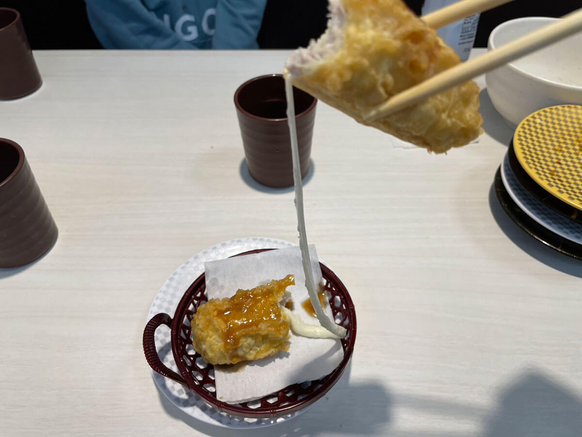 サイゾーウーマン暮らし食べ物“魚べいの大発明”と評判の揚げ物は? 暮らし 人気チェーン店、実食レビュー! “魚べいの大発明”と評判の絶品とは? 回転寿司【魚べい】、おすすめ&残念メニュー 2025/01/06 19:00 サイゾーウーマン編集部(@cyzowoman) 魚べい回転寿司 国内150店舗以上出店する“元気寿司グループ”が全国展開する「魚べい」(C)サイゾーウーマン 1月6日放送の『帰れま10』(テレビ朝日系)に登場する回転寿司チェーン「魚べい」。近頃、多くの情報バラエティ番組で取り上げられている「魚べい」ですが、店舗数はまだまだスシローやくら寿司には敵わないため、いったいどんな寿司屋なの? とピンとこない方も少なくないのでは? 今回は「魚べい」の特徴や人気メニューの実食レポをお届けします! 目次 ・【魚べい】とは? 特徴 ・【魚べい】人気メニューを実食! ・【魚べい】“魚べいの大発明”と評判の揚げ物は? ※2024年1月9日公開の記事を再編集しています。 ※2023年12月14日時点(「愛媛県産本鮪中とろ 刻みわさびのせ」のみ24年1月9日時点)の情報です。 ※価格はすべて税込み。 ※最新情報は各店公式サイトをご確認ください。 【魚べい】とは? 特徴は“回転しない”レーン 「魚べい」は110円(税込、以下同)のメニューを主軸にしながら、“回転しない”ことがウリのお店。手元の専用タブレットから注文すると、商品が3本(上段、中段、下段)あるレーンに乗せられ、テーブルまでビューンと高速で運ばれてきます。 レーシングカーや新幹線型のトレーに乗って、商品が運ばれてきます(C)サイゾーウーマン 「注文商品がゆっくりとレールに乗ってやって来る回転寿司に比べ、提供までの時間が早い」「商品の取り間違えがない」「注文商品をほかのお客さんに触られる心配がない」など、多くのメリットがあるんです。 【魚べい】人気メニューを実食! 愛媛県産本鮪中とろ 刻みわさびのせ(1貫) 270円 厚みのある贅沢なカットがうれしい(C)サイゾーウーマン 「魚べいオリジナルの完全養殖本鮪を、店内で丁寧に切り付けている」(公式サイト)という「愛媛県産本鮪中とろ 刻みわさびのせ」。 やはり本鮪なだけあって、身はもっちり感がありながら、口の中でほどよくとろけておいしい! ただ、筆者が食べたお寿司がたまたまなのか、脂のりはいまいちに感じました。 また、1貫270円は「魚べい」にしては強気の価格設定。昨年12月には「南まぐろ中とろ」が破格の1貫99円で食べられる“大感謝セール”を開催していただけに、どうしても高く感じてしまいます。 味も個人的には、「南まぐろ中とろ」のほうが、大トロさながらに脂がのっていて好みかな……。とはいえ、さっぱりとした上品なまぐろを味わいたい方には、こちらの中とろがおすすめです。 コスパ:★★★☆☆ 満足度:★★★☆☆ えび天 130円 アツアツです(C)サイゾーウーマン 2貫で130円の「えび天」は、天ぷらが揚げたてでサックサク! えびもシャリからはみ出すサイズで、満足度は高いです。 なお、同じ料金で、あらかじめたれがかかった「えび天 天たれがけ」というメニューもありました。席に甘だれのボトルが置いてあるのですが、自分でかけるか否か選べるのは親切ですね。 コスパ:★★★★☆ 満足度:★★★★☆ いくら 150円(1貫) きゅうりは乗ってないタイプ(C)サイゾーウーマン いくらがメインの商品は、1貫150円の「いくら」と、1個230円の「大粒いくら海苔包み」の2種類。前者を頼んでみたところ、いくらの粒が小さい! とびっこほどではないものの、私の知っているいくらとは明らかに違います。 気になってネットで調べたところ、一般的な大きさのいくらは「秋鮭の卵」であり、粒が小さいのは安価な「鱒いくら」とのこと。 やはり高価ないくらを150円で食べようとするほうが無謀なのでしょうか……。粒が小さい分、どうしても物足りなさがあり、少し残念な気持ちになってしまいました。 コスパ:★★☆☆☆ 満足度:★★☆☆☆ “魚べいの大発明”と評判の揚げ物は? まぐろチーズ揚げたれがけ 210円 大きなちくわ天のような見た目(C)サイゾーウーマン 揚げ物も充実している「魚べい」ですが、「まぐろチーズ揚げたれがけ」は一部ネット上で“魚べいの大発明”と評判の絶品。 こちらは「魚べい」の社員・パート・アルバイト全員が参加できる商品開発イベント「キッチンファイト」から誕生した「まぐろメンチwithウィンナー」の派生商品だそうで、人気の高さからレギュラーメニューになったとか。 ミンチ状にしたマグロ入りのたねを天ぷらにした商品ですが、アツアツの揚げたてをお箸で割ると、中からモッツァレラチーズがビヨーン。まるで、一大ブームを巻き起こした韓国の“チーズハットグ”のようです。 チーズハットグみたいで楽しい(C)サイゾーウーマン 近くの席には、この楽し気な食べ物を奪い合いながら食べる姉妹がいたのですが、その一方のお嬢さんが「マクドナルドのナゲットみたい」とポツリ……。 言われてみれば、確