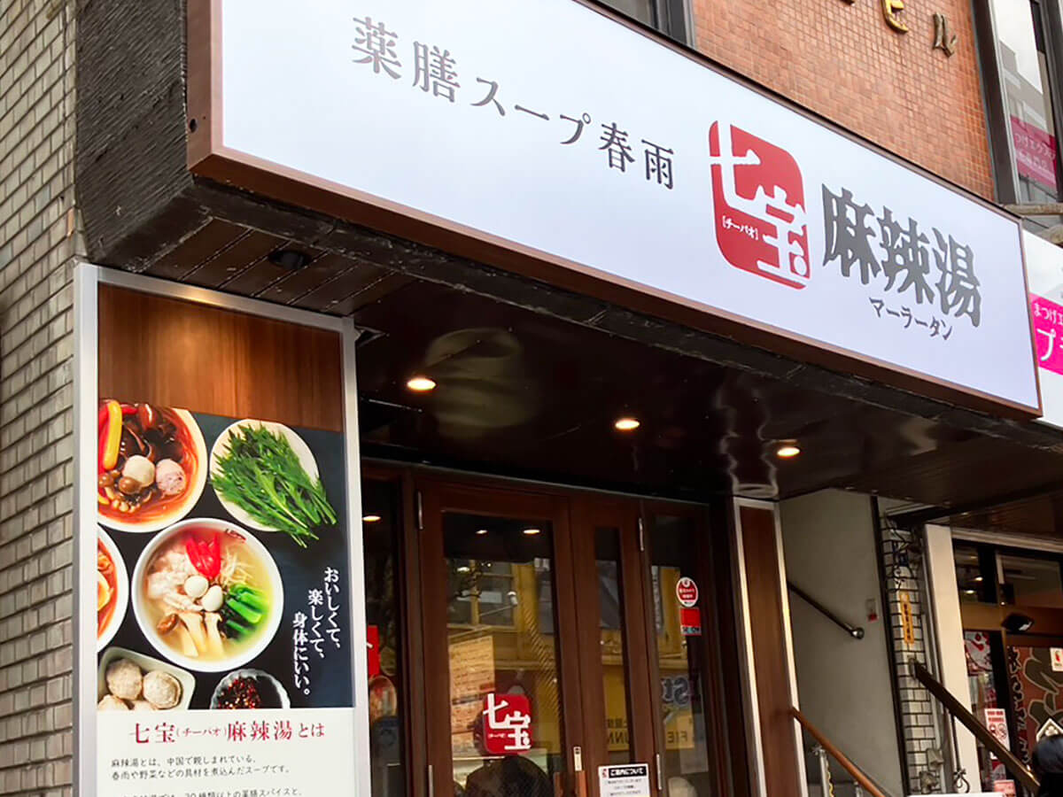 サイゾーウーマン暮らし食べ物【七宝麻辣湯】期間限定の具がおいしい 暮らし 話題のチェーン店探訪 店舗急増の【七宝麻辣湯】、話題の“ブンモジャ”に興奮! 「行列でも食べたい」期間限定の具は? 2025/01/14 15:30 仲宗根由紀子(エンタメライター) 暮らし 「七宝麻辣湯」の外観(C)サイゾーウーマン 現在、関東を中心に店舗数が急増している薬膳スープ春雨専門店「七宝麻辣湯(チーパオマーラータン)」。SNS上では「行列に並んでも食べたい」と若い女性を中心に話題のようですが、味のほどは……? 実際に行って食べてみました。 目次 ・【七宝麻辣湯】“ラーメン王”石神秀幸氏のお店 ・【七宝麻辣湯】行列の様子は? 料金システムも ・【七宝麻辣湯】1,215円「麻辣湯」の「1辛」を実食 ※2025年1月12日時点の情報です。 ※価格はすべて税込み。 ※店舗によって内容・価格が異なる場合があります。 ※最新情報は各店公式サイトをご確認ください。 【七宝麻辣湯】は“ラーメン王”石神秀幸氏のお店 七宝麻辣湯の立て看板(C)サイゾーウーマン 七宝麻辣湯は、「神の舌を持つ男」として有名な“ラーメン王”石神秀幸氏が代表を務める「株式会社カシュ・カシュ」が2007年に立ち上げた薬膳スープ春雨専門店。石神氏がシンガポールで出会った麻辣湯に衝撃を受け、中国で200軒以上の麻辣湯を食べて研究したのち、アップデートさせて日本に持ち込んだといいます。 長らく数店舗しかなかった七宝麻辣湯ですが、2021年に「焼肉ライク」などを経営する飲食業界大手「株式会社ダイニングイノベーション」とカシュ・カシュがマスターライセンス契約を締結。 以降、フランチャイズ店が続々と新規オープンしており、現在は19店舗を展開しているほか、今年2月にも神奈川県・大船店、福岡県・天神西通リ店、新潟県・新潟店がオープンを控えているといいます。 近年、インスタグラムやTikTokで麻辣湯の“モッパン”がバズっていることもあり、時間帯によっては行列必至とうわさの七宝麻辣湯。今回は、昨年9月にオープンした千葉県柏市の店舗へ行ってみます。 【七宝麻辣湯】行列の様子は? オーダー方法や料金システムをレポート 行列なし?(写真:サイゾーウーマン) 休日の正午前に到着。行列を覚悟していましたが、店内に3人ほど並んでいるだけなので、少し待てば入れそうです。 注文方法の案内(写真:サイゾーウーマン) 豊富な選択肢(C)サイゾーウーマン 外で待っている間、外壁に貼られた注文方法と料金システムを眺めます。それによると、基本の「スープ+春雨」(620円)に、自分で選んだ具材(1g3.1円)の金額が追加されるシステム。 辛さは0辛(無辛)から10辛(4辛以降は88円ずつプラス)まで選べ、スープや麺はプラス150円でアレンジすることも可能だそうです。麺は「こんにゃく麺」「海藻麺」「中華麺」などがありました。 5分ほど待っていると、店員さんに呼ばれお店の中へ。麻辣湯初体験で緊張気味でしたが、慣れた様子で注文方法を細かく説明してくれたので安心できました。 また、公式LINEアカウントを登録すると「煮卵」か「チーズ」が当日から無料でもらえるとのこと。煮卵欲しさに、その場で登録しました。 SNSで見たことのある景色!(写真:サイゾーウーマン) いざ!(C)サイゾーウーマン ステンレス製のボウルとトングを手に、50種類以上ある具材の中から好きなものを好きなだけ取っていきます。 重さで料金が決まるため、「豆苗1本だけ」「もやし1本だけ」といった取り方も可能。「いろいろな種類をちょっとずつ食べたい」という人には、最高のシステムです。 ワクワクしながら具材を選んだ後、店員さんにボウルを渡しつつ、スープの辛さや麺を伝えます。 今回、スープは「1辛」、麺は無料で変更できる「太帯春雨」をセレクト。具材が595円分だったので、基本の麻辣湯(620円)と合わせて1,215円でした。 カウンター席で待ちます(写真:サイゾーウーマン) 自動会計機で支払いを済ませると、カウンター席へ案内されました。周囲を見渡すと、客の8~9割が若い女性。さらに店員さんも全員が女性でした。「何も知らないおじさんが入ったら、ギョッとするだろうな~」などと考えつつ、提供を待ちます。 【七宝麻辣湯】1,215円「麻辣湯」の「1辛」を実食 カウンターについてから3分ほどで麻辣湯が到着(C)サイゾーウーマン スープを一口(写真:サイゾーウーマン) 薬膳が香るスープは、「鶏や豚を丹念に煮込んだスープに、30種類以上の薬膳スパイスを組み合わせています。痩身や健胃など様々なデトックス効果が期待できます」(商品説明より)とのこと。 一口飲むと、旨味と辛味、そして独特な薬膳スパイスのバランスが絶妙で、個人的には大好きな味です。 なお、辛味への強さは「『辛ラーメン』のスープはなんとか完飲できる」程度の筆者ですが、「1辛」が想像以上に辛くて「この女性客たち、こんな辛いもの食べてるの?」と少し驚きました。「0.5辛」でのオーダーも可能なので、自信のない方はこのくらいから様子