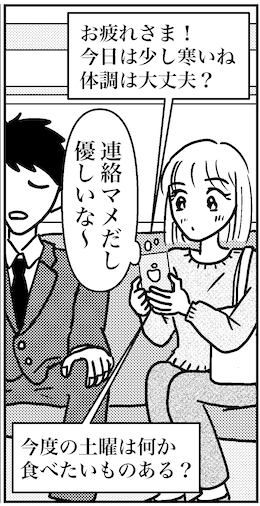 サイゾーウーマンカルチャーマンガ趣味も合うし話も楽しい カルチャー まんが『オバサンと言われても結婚したい!』366話 【アラフォー婚活ルポ】連絡マメだし優しい、趣味も合うし話も楽しい! 2025/01/15 13:30 白戸ミフル(マンガ家) オバサンと言われても結婚したい! ――合コン歴20年以上、累計回数2,500回以上、30代なかばに乳がんで闘病するも、現在は絶賛婚活中のライター・漫画家の白戸ミフルが「アラフォー婚活」の実体験をほぼリアルタイムでお届けします! アラフォー中の結婚は成就するのか……!? 【前回まで】 ナンパしてきた中年男性から「オバサン」呼ばわりされた経験をバネにして「婚活の鬼」になった私、44歳。アプリでマッチした41歳の韓国人と2回めのデートもとんとん拍子で決まった。 366話『連絡マメだし優しい、趣味も合うし話も楽しい!』 次のページ ストレートに言ってくれるのうれしいな 123次のページ 関連記事 【アラフォー婚活ルポ】付き合ってもないのに結婚は早いか【アラフォー婚活ルポ】韓国男子あるあるだね【アラフォー婚活ルポ】ダメダメ!!! いつも見た目で失敗してるんだから!【アラフォー婚活ルポ】結婚してなくても、楽しいこといっぱいあるから【アラフォー婚活ルポ】お見合い後、初めて自分からお断りしたワケ その他の作品を読む