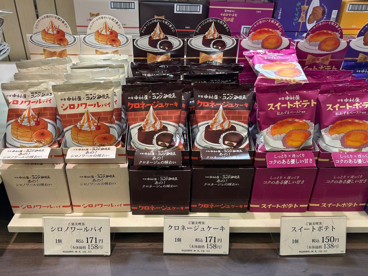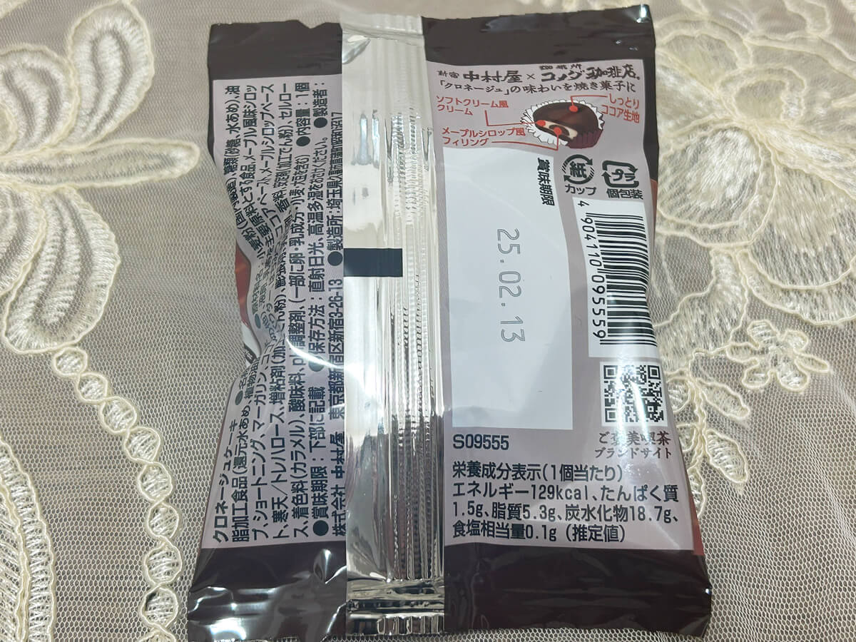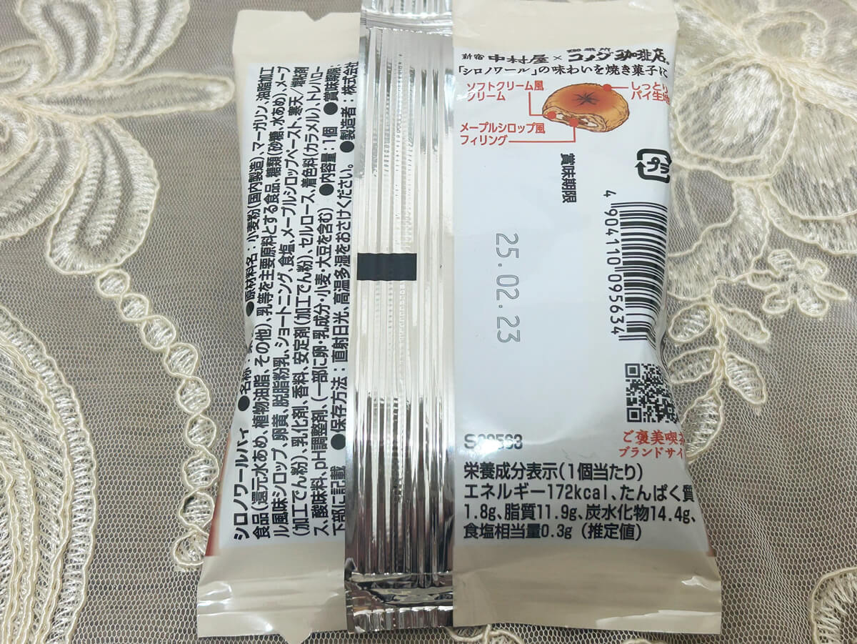 サイゾーウーマン暮らし食べ物【コメダ】シロノワールがスーパーで買える? 暮らし 話題の商品実食レビュー 【コメダ珈琲】「シロノワール」がスーパーでも買える! 新宿中村屋コラボの限定商品の再現度がすごい 2025/01/17 20:00 サイゾーウーマン編集部 食べ物コメダ珈琲店 (C)サイゾーウーマン みなさんは、喫茶店チェーン「コメダ珈琲店」と老舗食品メーカー「新宿中村屋」がコラボしたスイーツ「シロノワールパイ」をご存じでしょうか? この記事では、編集部Mがその味をレポートしていきます。 ※価格や商品は2025年1月17日時点の情報です。 ※最新の情報は公式サイトや公式SNSをご確認ください。 ※店舗によって取り扱う商品が異なります。 ※商品価格はすべて税込み 目次 ・コメダ珈琲と新宿中村屋が期間限定スイーツを販売 ・新宿中村屋×珈琲所コメダ珈琲店「シロノワールパイ」を実食 ・新宿中村屋×珈琲所コメダ珈琲店「クロネージュケーキ」を実食 コメダ珈琲と新宿中村屋がコラボ! 人気商品再現の期間限定スイーツを販売 (写真:サイゾーウーマン) 2月28日までの期間限定で、スーパーやコンビニエンスストア、百貨店、駅ビル、新宿中村屋ビルの直営売店などで販売されている「シロノワールパイ」。 昨年11月1日から販売されているそうですが、私がその存在を知ったのは、あるXユーザーの投稿を目にしたから。「再現率高くてやばい」などと紹介されており、そのポストには5万件近くの「いいね」がついていたこともあって、俄然気になりました。 「シロノワール」といえば、コメダ珈琲おなじみのスイーツで、しっとり&ふわふわのデニッシュにソフトクリームを乗せ、サイドにチェリーをトッピングした看板商品。コメダ珈琲公式Xの23年8月付けの投稿によると、デニッシュの層はソフトクリームと別添えのシロップがしっかり染み込むよう、64層になっているとか。 このたび、そんなこだわりの商品が、新宿中村屋の焼き菓子「ご褒美喫茶」シリーズから登場! 同シリーズのコンセプト“ほっと⼀息、小さな幸せ”と“心にもっとくつろぎを”というコメダ珈琲の思いがマッチし、今回のコラボレーションが実現したといいます。 「シロノワールパイ」と同時に、コメダ珈琲で「シロノワール」と同じく人気のスイーツ「クロネージュ」の味わいを再現した「クロネージュケーキ」も発売されているということで、取り扱いがありそうな駅ビル内の新宿中村屋ショップへ行き、商品を購入してきました! 新宿中村屋×珈琲所コメダ珈琲店「シロノワールパイ」171円、再現度高く満足度◎ 新宿中村屋×珈琲所コメダ珈琲店「シロノワールパイ」171円(写真:サイゾーウーマン) 生地はふわふわ感は控えめでしっとりとした印象。デニッシュの温かさでソフトクリームが溶けたときのシロノワールといった食感です。 賞味期限は約1カ月、カロリーは1個172kcalです(C)サイゾーウーマン 本物の「シロノワール」のように64層とまではいきませんが、パイ生地はしっかり何層にも重なっていて、デニッシュ感も十分。 少しわかりづらいですが、 白いのがソフトクリーム風クリームで、茶色がかっているのがメープルシロップ風フィリングです (写真:サイゾーウーマン) そしてなんといっても、ソフトクリーム風クリームと、メープルシロップ風フィリングがおいしい! それぞれの味がしっかり再現されていて、クリームとメープルの風味が口の中に広がります。 パイの大きさは直径約6.5cm(写真:サイゾーウーマン) なお、実際の「シロノワール」は、ノーマルサイズ(730~790円)とミニサイズ(530~590円)があり、実際のメニュー写真よりも大きなサイズで提供している“逆写真詐欺”で有名なコメダらしく、ノーマルでもかなりのビッグサイズ。 この「シロノワールパイ」は、ミニミニサイズといったところでしょうか。いい意味でも悪い意味でも期待を裏切られることはありませんが、なにより味がおいしいので満足度は◎! みなさんにも一度食べてみてほしいです。 新宿中村屋×珈琲所コメダ珈琲店「クロネージュケーキ」171円、しっとり生地とクリームの相性が抜群! 新宿中村屋×珈琲所コメダ珈琲店「クロネージュケーキ」171円(写真:サイゾーウーマン) 続いて「クロネージュ」は、ココアが香るバウムクーヘンにソフトクリームが乗ったスイーツで、「シロノワール」と同じように別添えのシロップがついてきます。 「シロノワールパイ」と比べると賞味期限が短く、カロリーも1個129kcalと低めです(写真:サイゾーウーマン) 正直なところ、私は「クロネージュ」をコメダで食べたことがなく、今回の「クロネージュケーキ」でその味を知ることとなったんですが、これまたおいしい! 中にソフトクリーム風クリームと、メープルシロップ風フィリングが入っています(写真:サイゾーウーマン) 実際の「クロネージュ」とは違い、バウムクーヘンではなく“ケーキ”とのことですが、ビターなココア味の生地は甘すぎず、中に入ってい