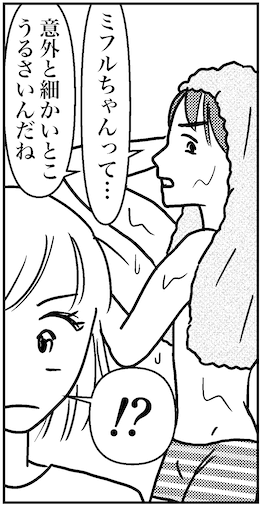 サイゾーウーマンカルチャーマンガ意外とこまかいとこ、うるさいんだね カルチャー まんが『オバサンと言われても結婚したい!』371話 【アラフォー婚活ルポ】意外とこまかいとこ、うるさいんだね 2025/02/02 13:30 白戸ミフル(マンガ家) オバサンと言われても結婚したい! ――合コン歴20年以上、累計回数2,500回以上、30代なかばに乳がんで闘病するも、現在は絶賛婚活中のライター・漫画家の白戸ミフルが「アラフォー婚活」の実体験をほぼリアルタイムでお届けします! アラフォー中の結婚は成就するのか……!? 【前回まで】 ナンパしてきた中年男性から「オバサン」呼ばわりされた経験をバネにして「婚活の鬼」になった私、44歳。交際が始まった41歳の韓国人彼、うちに泊まった翌日に枕カバーを洗おうとしたら……。 371話『意外とこまかいとこ、うるさいんだね』 次のページ 私がキレイにすればいいし 123次のページ 関連記事 【アラフォー婚活ルポ】これは朝○ち!? 泊まった翌朝、一安心【アラフォー婚活ルポ】初お泊まりの夜……彼、機能せず【アラフォー婚活ルポ】結婚を前提に…僕とお付き合いしませんか?【アラフォー婚活ルポ】連絡マメだし優しい、趣味も合うし話も楽しい!【アラフォー婚活ルポ】お見合い後、初めて自分からお断りしたワケ その他の作品を読む