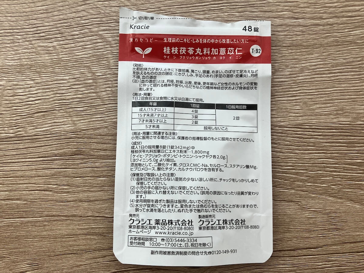 サイゾーウーマン暮らし食べ物漢方飲んでる? 意外とみんな飲んでいた 暮らし 編集部コラム 五苓散がSNSで人気!? アラフォーが毎日飲んでる漢方はコレ 2025/02/07 21:00 サイゾーウーマン編集部(@cyzowoman) 串カツ田中 左から「葛根湯エキス顆粒Sクラシエ/第2類医薬品」、「『クラシエ』漢方五苓散料エキス顆粒/第2類医薬品」「松浦薬業 麦門冬湯 エキス 細粒/第2類医薬品」(写真:サイゾーウーマン) 近頃、五苓散がSNS経由で人気なんだそう。そういえば、うちにも漢方いろいろ置いてるなあと、はたと気が付きました。アラフォーの編集Nが日常使いしている漢方をご紹介します。 目次 ・五苓散がいま人気!? ・アラフォーが毎日飲んでる、PMS対策の漢方はコレ ・アラフォーが不調時に頼る漢方3つ! 五苓散がいま人気!? 先日、友人から五苓散がはやってるという話を聞きました。五苓散といえばメジャーな漢方で、二日酔い、むくみ、頭痛などを改善するとされているもの。私も、10年ほど前に飲み仲間に「二日酔いに効く!」と勧められて以来、頼りにしている存在です。 その五苓散が、2023年から24年にかけてSNS上での投稿数が激増。昨年対比で250%超も大幅に増えたんだとか。インフルエンサーやホストやキャバ嬢が「二日酔いにはコレ!」「むくみに効く!」とか投稿したのでしょうか。 【薬剤師解説】「むくみ」改善の生活習慣&3つのおすすめ食品! 五苓散(ごれいさん)ほか漢方活用法も 日常生活でよく起こる「むくみ」。夕方になると脚がパンパンになったり、お酒を飲んだ翌日は顔がむくんだりした経験はありませんか? むくみは自然に解消されることが多いた...サイゾーウーマン2022.04.12 そんなことをぺちゃくちゃ話しながら、「そういえば案外、私も漢方を飲んでるなぁ」と思い出したんです。 アラフォーが毎日飲んでる、PMS対策の漢方はコレ まずひとつ目の漢方が、「桂枝茯苓丸料加薏苡仁(けいしぶくりょうがんりょうかよくいにん)」。昨年の夏、大量のニキビ(吹き出物)が延々治癒しないときに出会い、以降は毎日飲んでいるもの。 「クラシエ」漢方桂枝茯苓丸料加薏苡仁エキス錠/第2類医薬品(写真:サイゾーウーマン) 「生理前のにきび」「生理前のイライラ」を改善するという漢方です。同商品の販売元、クラシエのサイトから引用しますね。 効能・効果 比較的体力があり、ときに下腹部痛、肩こり、頭重、めまい、のぼせて足冷えなどを訴えるものの次の諸症:にきび、しみ、手足のあれ(手足の湿疹・皮膚炎)、月経不順、血の道症 (注)「血の道症」とは、月経、妊娠、出産、産後、更年期など女性のホルモンの変動に伴って現れる精神不安やいらだちなどの精神神経症状および身体症状を指します。 漢方のおかげか皮膚科の軟膏のおかげか、肌状態はだいぶ改善され、さらにPMS(血の道症)もスッキリ!!! これには驚きました。 生理前は大小の事柄にキレ散らかしては、その後ひどい自己嫌悪に陥るという、きっつい精神状態が常でした。それが、コレを飲む生活になってから、穏やかなまま生理が始まるようになったんです! 強調するほどに通販番組化していくのが歯がゆいですが、本当なんですよ!! 逆に、一時期飲むのをやめてた時はメンタル大荒れできつかったですね……。肌荒れだけなら「薏苡仁(よくいにん)」=ハトムギだけでも良いそうですが、PMSまでカバーしてくれるのは、「桂枝茯苓丸料加薏苡仁(けいしぶくりょうがんりょうかよくいにん)」なので、本当に頼りにしています! ただひとつ、ネックなのは6日分しか販売していないこと。クラシエさん、30日分の容量の登場を首をなが~~くして待っています! アラフォーが不調時に頼る漢方3つ! 漢方専用ポーチ(写真:サイゾーウーマン) ほかにも、薬収納をしているポーチをチェックしてみたら、ありました。大量に入れすぎて、もはや漢方専用ポーチになっています。 中身は、五苓散、葛根湯、麦門冬湯の3つですね。 左から「葛根湯エキス顆粒Sクラシエ/第2類医薬品」、「『クラシエ』漢方五苓散料エキス顆粒/第2類医薬品」「松浦薬業 麦門冬湯 エキス 細粒/第2類医薬品」(写真:サイゾーウーマン) 五苓散は前述した通り、二日酔い時に。葛根湯は、もちろん風邪の初期症状に。肩こりでも服用していますね。麦門冬湯は、空咳が続いていたり喉が乾燥気味なときに。 体調がめちゃくちゃ悪いなら病院に行くんですが、「そこまでじゃないけど不調なんだよなあ~」なんてときに、手に取るのがこれら漢方だったりします。 思い出してみると、結構、アラフォーの友人や姉妹も漢方薬を飲んでいて、会話の中に登場しているんですよね。そうそう、知らなかったのですが、「命の母」も実は漢方薬で使われる生薬が含まれているそう。「命の母ホワイト」が手放せないと友人も言ってたな……。 そんなわけで、アラフォーの漢方事情を明かしてみました。最近は「漢方茶」も気になっているので、機会があれば実飲してきたいと思います! 「葛根湯」肩こり・頭痛にも効