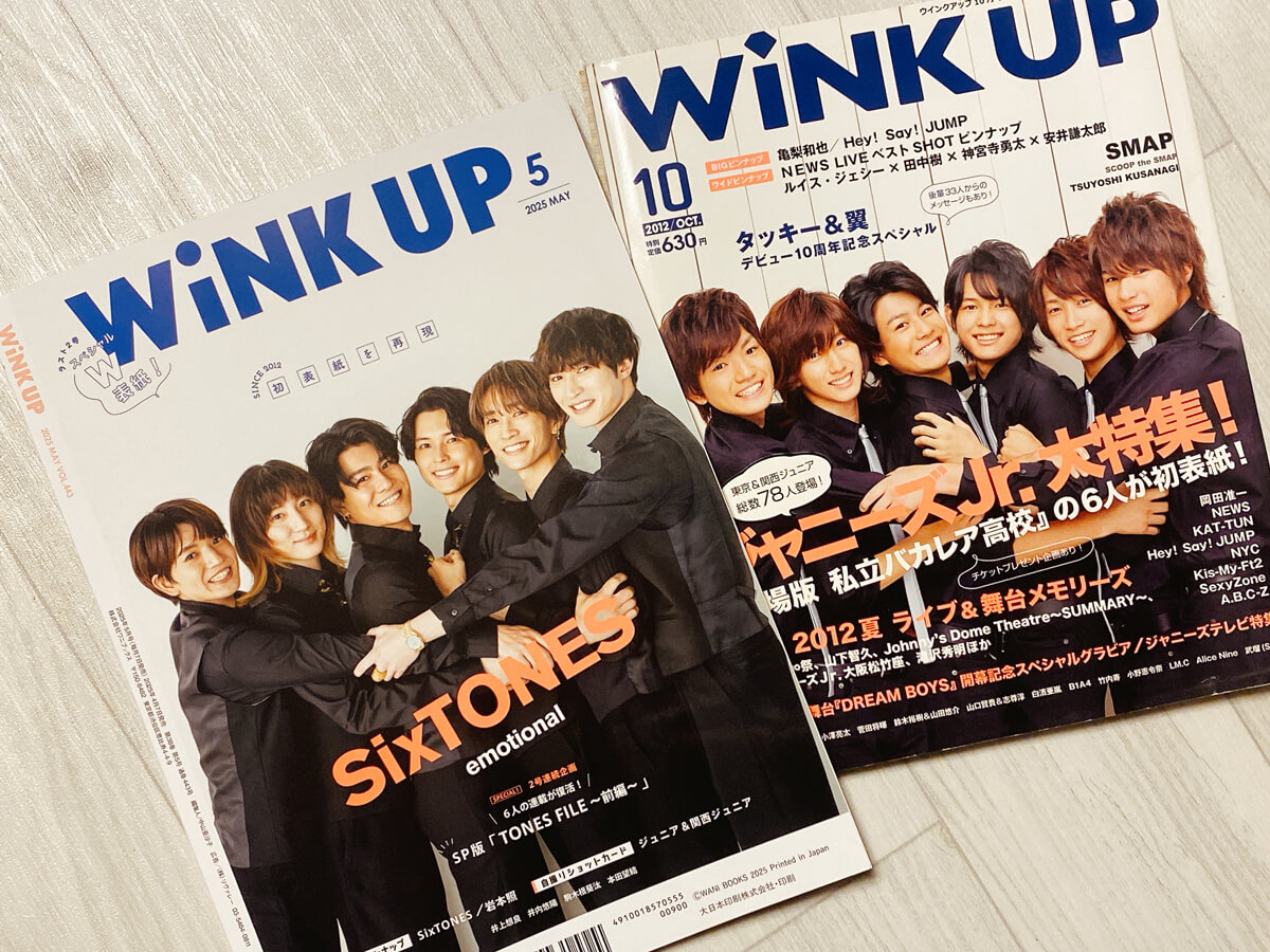 サイゾーウーマン男性アイドルSTARTO(旧ジャニーズ)「WiNK UP」の「これぞ」の企画とカバー力 男性アイドル STARTOタレント掲載アイドル誌が2誌へ――「WiNK UP」にあったファンのツボを押さえる「これぞ」の企画とカバー力 2025/04/14 08:00 太田サトル(ライター、アイドルウォッチャー) SixTONESSTARTO 【サイゾーオンラインより】 「WiNK UP」2025年5月号(ワニブックス) このところ、旧ジャニーズ事務所時代からタレントたちを掲載してきた雑誌に“変化”が訪れ、ネット上のファンからは残念がる声が上がっています。 この記事では、「アイドル誌」の現状と、その中の1誌「WiNK UP」の魅力について、ライター・太田サトルがつづります 目次 ・アイドル誌、毎月刊行は5誌から2誌へ ・「WiNK UP」休刊の原因は“出版不況”だけじゃない! ・休刊の「WiNK UP」、「伝言板」のページの魅力 STARTOタレント掲載のアイドル誌、毎月刊行は5誌から「Myojo」「Duet」の2誌へ 毎月「7日」と「23日」。この日は、旧ジャニーズ、STARTO ENTERTAINMENT社所属タレントのファンにとって、月2回の特別な日付であり続けたであろう。 細かな説明は不要かと思うが、毎月この2日はSTARTO社所属タレントのグラビアやインタビューそして連載等が多数掲載される雑誌の発売日である。 毎月7日は「POTATO」(ワン・パブリッシング)、「Duet」(ホーム社)、「WiNK UP」(ワニブックス)の発売日。そして毎月23日が「Myojo」(集英社)、「ポポロ」(麻布台出版社)の発売日だった。その日を毎月待ち望んだり(現在も?)、それぞれの発売日にどの雑誌を購入するか悩んだうえ、自担または自担グループの写りがいいもの、あるいはピンナップや切り取り型カードなどの付録の良し悪しなどを書店で厳選したり、躊躇なく全誌買ったり、友達と分担したり、いろいろな楽しみ方をした記憶を持つファンも少なくないだろう。 これらを「ドル誌」「ジャニ誌」と呼んだり、それぞれ「M誌」「W誌」と表記しながら、内容についての感想などをネット掲示板やSNSに書き込み、ファン同士で盛り上がりをみせたこともあった。 そのうちの1誌、「WiNK UP」が2025年5月7日発売の6月号をもって休刊すると3月25日に発表され、ファンの間に衝撃が走った。 先に挙げた各雑誌のうち、すでに「ポポロ」が2024年7月売りの9月号で休刊、「POTATO」は判型を変更し、この3月より奇数月22日発売の隔月発売となった。これまでと変わらず毎月刊行が続くのは、「Myojo」と「Duet」の2誌となってしまった。 「WiNK UP」休刊の原因は“出版不況”だけじゃない! 「二重、三重のダメージ」とは? 「WiNK UP」休刊について、ワニブックスは「昨今の社会状況の変化や価値観の多様化に伴い」と発表している。なんとも寂しくはあるが、これは出版界全体が抱える、紙媒体の終焉、出版不況のあおりそのままである。 しかし、あくまで推測の範囲だが、そこに加えてやはり一連の性加害報道に端を発する事務所崩壊の影響も考えずにはいられない。タレントは次々と退所し、この一件を機に応援を辞めたファンも少なくない。 加えて昨年春にKing&Prince、Snow Man、SixTONESが各誌を卒業し、以降は個人での登場となってしまった。事実上「ジャニーズ専門誌」であるこれらの雑誌には、二重、三重のダメージがじわじわ押し寄せ続けてきたのではないだろうか。 休刊が発表された「WiNK UP」については、“企画力&フレッシュジュニアまでの幅広いカバー力”という印象がある。 メンバー対談や撮影時の組分けなど、いわゆる「ヲタ得」的な人選をしていたり、各グループが毎号担当する連載ページなども、少しマニアックなイメージがある。ジュニアが登場するページもフレッシュ枠を含め比較的早めに紹介してくれる印象もあり、5誌の中では「ややコア」な雰囲気がある。 6月号で休刊の「WiNK UP」、ファンのツボをおさえた「伝言板」のページの魅力 中でも群を抜いて独自性が高く、ファンのツボをおさえていると感じる企画が、「伝言板」のページだ。これは、毎回複数のタレントが登場し、特定のメンバーまたはグループ、時には事務所を超えた共演者などに向けた短いメッセージを発信するというもの。 それが、例えば「◯◯くん、今度ご飯連れていってください!」「久しぶりに会えてうれしかったよ!」「見学のとき、尊敬しすぎて挨拶できませんでした!」などといった「私信」めいた雰囲気を漂わせるところが、仲良いんだ、尊敬してるんだなどファンの「妄想」を膨らませてくれる大きなツールとなり得た。「伝言板」という名の通り、そういったメッセージに対して次の号以降で「いいよ! 何食べたい?」と返事がきたりしつつ、号を重ねながらある種の文通のようなやりとりになっていくのを見守っていくことを毎号の楽しみにしていたファンも多かっただろう。 時にはいじったり軽くディスったりするやりとり、愛情たっぷりのメッセージに対して“塩対応”というやりとりなども存在するわけだが、そんな様子もまた、それはそれ