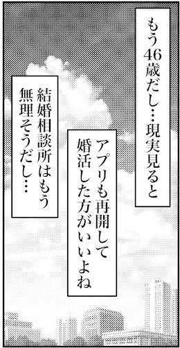 サイゾーウーマンカルチャーマンガタイプとか言ってる場合じゃない! カルチャー まんが『オバサンと言われても結婚したい!』397話 【アラフォー婚活ルポ】46歳なんだし、タイプとか言ってる場合じゃない! 2025/05/11 13:30 白戸ミフル(マンガ家) オバサンと言われても結婚したい! 【サイゾーオンラインより】 ――合コン歴20年以上、累計回数2,500回以上、30代なかばに乳がんで闘病するも、現在は絶賛婚活中のライター・漫画家の白戸ミフルが「アラフォー婚活」の実体験をほぼリアルタイムでお届けします! アラフォー中の結婚は成就するのか……!? 【前回まで】 ナンパしてきた中年男性から「オバサン」呼ばわりされた経験をバネにして「婚活の鬼」になった私、44歳。ソウル在住の韓国人男性と知り合いになり、LINEでやりとりを続けている。 397話「46歳なんだし、タイプとか言ってる場合じゃない!」 次のページ 色黒……タイプじゃない 123次のページ 関連記事 【アラフォー婚活ルポ】末っ子長男で姉が2人いるらしい【アラフォー婚活ルポ】てか気づけば46だし…【アラフォー婚活ルポ】結婚を前提に…僕とお付き合いしませんか?【アラフォー婚活ルポ】連絡マメだし優しい、趣味も合うし話も楽しい!【アラフォー婚活ルポ】お見合い後、初めて自分からお断りしたワケ その他の作品を読む