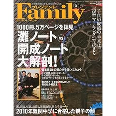 毎年恒例の特集「2010年 難関中学に合格した親子の顔」では、有名中学の各合格発表会場で喜ぶ家族のスナップが、数ページに渡りひたすら並んでいます。言うなれば、この人たちが「プレジデント Famiry」のリアル読者なわけです。こちらは記事そのものよりも、この特集を見た読者たちそれぞれに沸き起こる感情がとても気になります。「いつかここに出たい!」と意気込む親もいるでしょう。「こんなバカそうな子が受かってるんだから、ウチの子だって!」と思う親もいるでしょう。このページは、読者の心を映し出す鏡なのかもしれません。