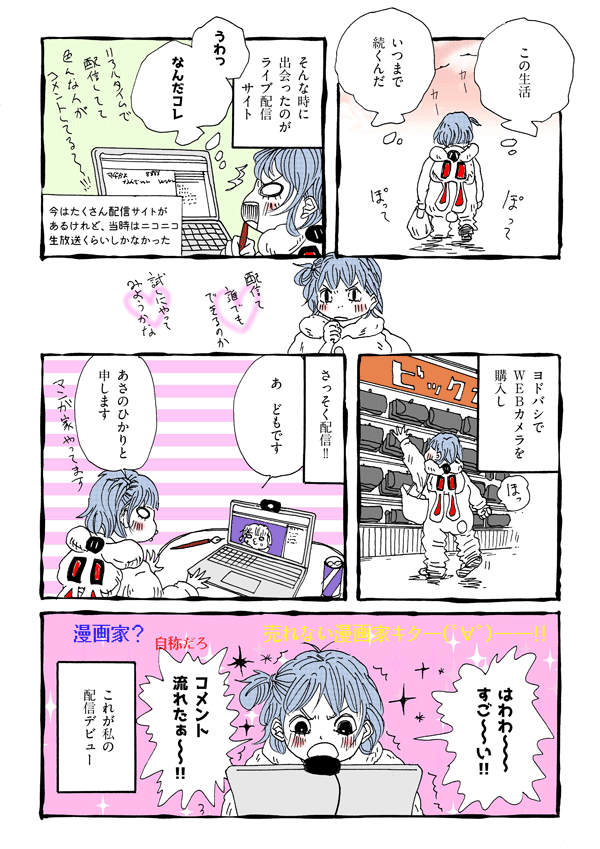 サイゾーウーマンカルチャーマンガあさの☆ひかり『ネット配信で人生が狂った人の裏側ぶっちゃけていいスか!?』配信者マンガ・1~4話まとめ読み カルチャー 【マンガ連載】ネット配信で人生が狂った人の裏側ぶっちゃけていいスか!? 【マンガ】ネット配信で人生が狂った人の裏側ぶっちゃけていいスか!?【1~4話・まとめ読み】 2018/10/13 13:00 マンガあさの☆ひかりネット配信で人生が狂った人の裏側ぶっちゃけていいスか!? 不倫バレ、嫉妬で放火、ニセ札作りに救急車……何度警察のお世話になったって、ぜ~んぶ「配信のネタ」なんです!? マンガ『芸能界の裏側ぶっちゃけていいスか!?』で数々の芸能タブーをぶっちゃけてきた 怖いもの知らずのグラドル漫画家・あさの☆ひかりが、今度はなんと「ネット配信者の世界」を大暴露!! 今回は1話~4話までのまとめ読みになります。 あさの☆ひかり、ライブ配信をしています 次のページ 視聴者はCIA 123次のページ Amazon 芸能界の裏側ぶっちゃけていいスか!? 三十路グラドルのつぶやき 関連記事 【タイ移住マンガ】約100円の屋台メシから日本食チェーンまで!「バンコク勤務」は日本より快適!?【8話】【日雇いマンガ】第19話 『GOに入ってはGOに従え! お嬢が受けた日雇い仕事の洗礼』【マンガ】浅草・純喫茶の怪しいメニュー!? 池波正太郎が愛する「梅酒入りコーヒー」のお味は 【東京をディグる・9話】【婚約破棄マンガ】玄関先で暴れる義母を110番! こんなマンション、もう住めない……!【第8回】【婚約破棄マンガ】2年の婚約が「なかった」なんてありえない……不条理すぎる彼と家族を「訴えてやる」!!【第7回】 その他の作品を読むバックナンバーを読む