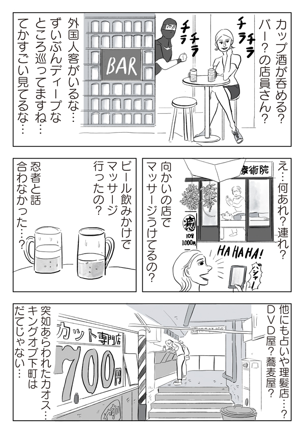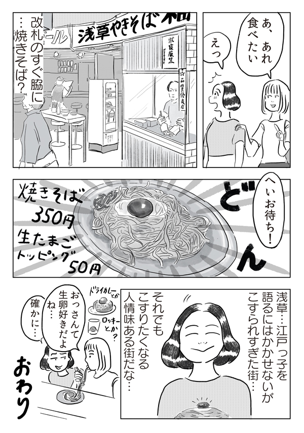 サイゾーウーマン【漫画】浅草をディグる・まとめ読み カルチャー 【マンガ連載】のがみもゆこの『東京をディグる』 【マンガ】「浅草をディグる」~観光スポットとしてコスられすぎた街を”再発見”!【まとめよみ】 2018/10/31 18:30 マンガのがみもゆこのがみもゆこの『東京をディグる』 薄汚れたコンクリート ――水曜日に、最新話を更新。お楽しみに! のがみ・もゆこ 1985年茨城生まれ。日本大学芸術学部デザイン学科卒。 茨城の高校でデザイン・映像メディア専攻の非常勤講師をしつつ 個展、グループ展、WEBにてイラストレーションやエッセイマンガを発表しています。 Twitter:https://twitter.com/mogaminoyuko Instagram:https://www.instagram.com/mogaminoyuko note:https://note.mu/nogami_moyuko HP:https://mogaminoyuko.tumblr.com <『東京をディグる』バックナンバーはこちら> 【第1章】 南千住・三ノ輪をディグる 前のページ12 最終更新:2019/05/24 16:07 Amazon 浅草うねうね食べある記 (ぶんか社コミックス) たまには浅草いってみようかな 関連記事 【婚約破棄マンガ】調停の場で、何も言えない彼……義母のいいなりで下した「判断」は?【第14回】【婚約破棄マンガ】そんなことが「不貞行為」!? 主張された”原因”がこじつけすぎて呆れる!【第13回】【マンガ】2.5次元の推しゴト!!~イケメンにハマりましたルポ~【18~21回まとめ読み】【配信者マンガ】イタズラ電話にガセ通報、だけどたまには「イイ事」も!? 視聴者の”行動力”がヤバイ!【第6回】【タイ移住マンガ】は!? またまた冗談でしょ!? バンコクから帰国、再会した彼の”トンデモ”発言とは【10話】 その他の作品を読む 次の記事 ジャスティンの汚食事はヤラセだった! >