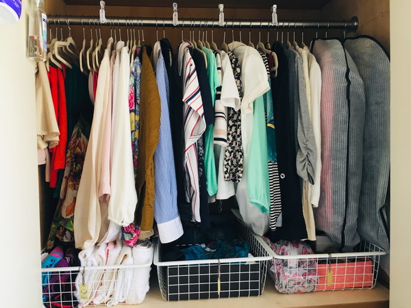 サイゾーウーマン暮らし住まいハンガーは「40本」あればいい!? 暮らし [連載]30代女子の「煩悩部屋」ビフォーアフター【煩悩003-12】 ハンガーは「40本」あればいい!? 汚部屋30女を救う「ズボラ収納」3つのポイント! 2018/11/26 17:00 伊藤まき「汚部屋」ビフォーアフター (1) イケアの「ざっくりBOX」なら、投げ入れるだけ! 1つめのポイントは「ざっくりBOX」です。こちらは、IKEAのALGOTワイヤーバスケット(500円/税込)を3つ用意しました。中には、靴の空き箱を使って「モノの住所」を作りました。毎日使う下着やタオルを収納しています。 これからは、丸めてポイッと投げ入れるだけです。蓋を開けるのも、引き出しを引く作業もカットできます。 (2)ハンガーの数を決めて「吊るす収納」を優先にする! 2つめのポイントは「吊るす収納」です。服を畳みたくない人は、吊り下げることを1番に考えましょう。 また、スリムなハンガーに統一することもお忘れなく! クリーニング屋さんでもらえるハンガーは、思い切って処分してください。用意したのは、ニトリの省スペースハンガー 5本セット(280円(税抜)を8セットです。この商品は肩幅が38cmなので、女性におすすめです。 これからは、ハンガーの数(40本)で、服の数を管理していきましょう。これで、新しい服が増えたら「着なかった服」を見直せるようになります。 (3)クローゼットの下段には、使用頻度の低い服を! クローゼットの下段は、かがむ姿勢で出し入れするのでモノグサになりがちです。上段は「よく着る服」を用意して、下段には「使用頻度の低い服」を収納しました。 8つの収納ケースには、季節の服、スポーツ用、ベルトやスカーフなどが入っています。また、中のゴチャゴチャが見えないように画用紙を挟みました。もちろん、ラベリングは必須です。 次のページ ベッドルームのクローゼットが、こんなふうに変わりました 前のページ1234次のページ Amazon 人生を変える断捨離 関連記事 イライラの原因は「80cmを確保」でゼロ円解決!? 動線最悪の「汚ベッド」を配置換え!【動画アリ】ゴミだらけの部屋は「枯れている」!? 汚キッチン&ダイニングの断捨離ビフォーアフター! 汚部屋30女が“収集癖”と卒業!? ゴミに埋まる「キッチンテーブル塚」を徹底断捨離!汚部屋30女はレシートまみれ!? ゴミと書類をかき分けて「キッチンカウンター」を発掘! 開けるとお猪口が降ってくる!? 30女キッチンの「吊り戸棚」を800円で整理整頓!