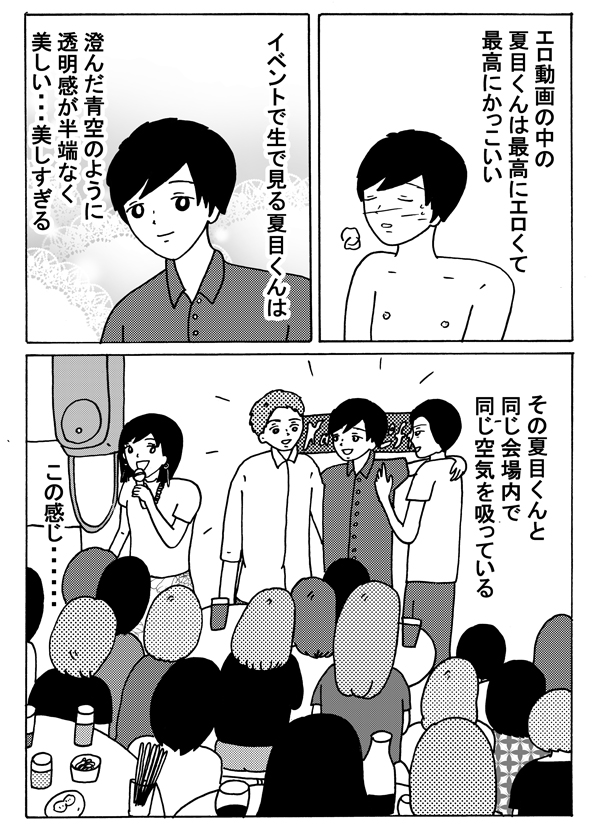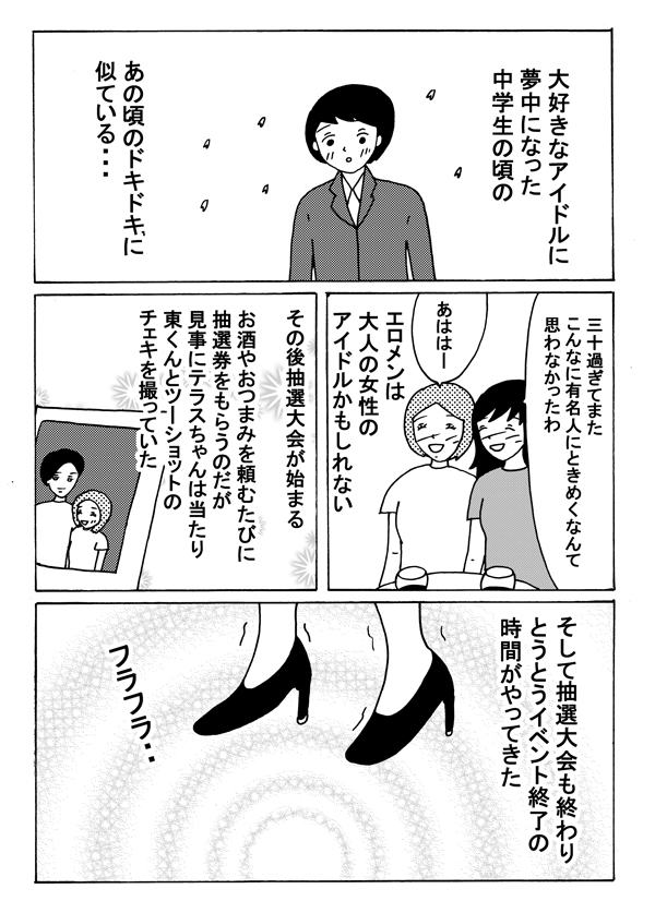 サイゾーウーマンカルチャーマンガ緑丘まこ『30代独女、それでもお酒がやめられない』【後編】エロメン男優・夏目哉大くんと… カルチャー 【マンガ】緑丘まこ・エロメンイベント参加レポート【後編】 【マンガ】憧れのエロメン3人と対面! 最高にエロい彼を、ナマで見たら……【番外編】 2018/12/01 18:00 マンガ緑丘まこ30代独女、それでもお酒がやめられない 3人のキャラクター 次のページ とうとう夏目くんと… 前のページ1234次のページ Amazon 【完全版】SILK LABO VOL.1 関連記事 【マンガ】”女性9割”のエロメンイベントに参加! イケメンAV男優の「エロだけじゃない魅力」って?【番外編】【マンガ】熊と地ビールと尿意!? トラウマが残る富山をひたすら満喫!【お酒がやめられない・16回】【マンガ】新幹線で朝酒、トロッコ列車で昼酒! 旅行の”醍醐味”に油断した代償は【お酒がやめられない・15回】【マンガ】本当にそんなことしてたの!? 泥酔した翌朝に知る「自分」のヤバイ行動【お酒がやめられない・14回】【マンガ】女2人で上野せんべろツアー! 高架下のハムカツと夢の世界【お酒がやめられない】 その他の作品を読むバックナンバーを読む