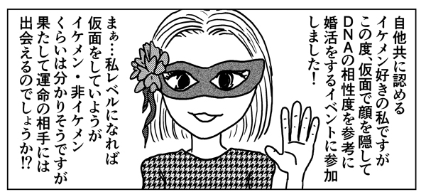 サイゾーウーマンカルチャースポット「DNA婚活」に潜入してみたら カルチャー 実践レポート! 【マンガ記事】運命の相手は「不潔なキモ男」!? DNA婚活で“相性最高の相手”を探した結果…… 2019/01/18 19:00 マンガ婚活潜入 「DNA婚活」って知ってますか!? DNA婚活とは、その名の通りDNAを採取して分析し、“DNAの相性”を見ながらパートナー探しをするという、時代の最先端をいく婚活です。 「DNAの相性が良いと、相手の体臭が気にならない」と聞きますよね。なかなか恋活・婚活がうまくいかない方、過去のパートナーの体臭が気になったことってないですか? もしかしたら遺伝子レベルで、合わない相手とばかり付き合っていたのかもしれませんよ!? 婚活ライター・白戸ミフルです! というわけで、ジャスフォー(40歳)婚活ライターの私・白戸ミフルが、ガチでDNA婚活パーティーに参加してまいりましたので、レポートいたします。 参加者は、事前に、パーティーを主催する会社から送られてくるDNA採取キットを使い、口内の粘膜を綿棒でこすって自分のDNAを採取し、返送します。すると、パーティー当日までに主催側が参加者のDNAを分析しておいてくれるので、参加男女はその相性を見てパートナー探しをする……というシステムなのです。 次のページ 12月某日、いざパーティーへ! 123次のページ Amazon 40代ご無沙汰女子の、ざんねんな婚活: 婚活して初めて気づいた、人生において大切な17のこと 関連記事 結婚しても9割は離婚!? 現地事情通が語る、過酷な「ハワイ婚活」の実態「愛人キャラ」「お見合い蔑視」「ハゲデブ批判」婚活で“大苦戦”してる女芸能人とは?「Domani」の「アラフォー婚活」ルポ、後悔と失敗まみれ! 寂聴は「離婚推奨」のカオス結婚できない男1000万人超、中国に見る「拝金主義」が染み付いた“婚活”が問うもの結婚できない男1000万人超、中国に見る「拝金主義」が染み付いた“婚活”が問うもの