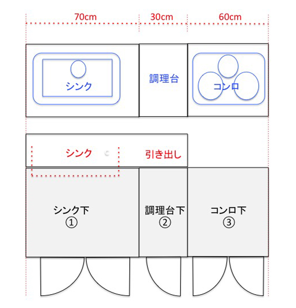 サイゾーウーマン暮らし住まいイラッとする台所下収納を解決 暮らし [連載]収納の悩みをスッキリ解決します! 伊藤まきの「お片付けSOS」相談! 1,280円でイライラ解消! 扉式キッチンの使いづらい“シンク下収納”を制するコツ 2019/03/04 19:30 伊藤まき 「お片付け・お掃除SOS」伊藤まき キッチン収納の快適化は、ずばり「1軍限定」に選定すること! 【伊藤まきの回答】 「キッチン下の収納は“使用頻度が高いモノだけ”を、ワンアクションで取り出せるように配置することです」 「キッチン下の収納を快適にしたい」というお悩みを、東京都在住のM・Eさん(30歳)から受け取りました。Mさん宅のキッチンは、収納力が少なめのシステムキッチン(160cm・壁付けI型タイプ)です。一般的にも多いタイプなので、「何をどう入れたら快適になるか」を返答します! ※ キッチンの収納に関しては、全体像を見ないと解答が難しいため、Mさんには個別で解答しております。 まず、Mさん宅のキッチン(160cmI型)を簡単な図面にしてみました。システムキッチンの向かいには、小さな食器棚と冷蔵庫があるそうです。 キッチンは、観音開きの扉か引き出しかで収納方法はガラリと変わります。今回のお悩みは、一般的に多い「観音開きの扉」です。 キッチンの下収納は、手が届きやすい範囲なので「使用頻度の高いモノだけ」を置くことが最大のポイントになります。上の図面より、3つのゾーンに分けて説明します。 次のページ [1:シンク下]に収納すると良いモノとは? 前のページ12345次のページ 関連記事 「100均の2品」で極狭クローゼットに“冬物収納”完了! アノ名品でオシャレにスリム整理「食器棚」の収納力アップに“アレ”は厳禁!! 劇的チェンジの秘訣で「容量300%増」も!?買って損なし「ニトリのカラボ」最強説! キッチンカウンターから絵本棚まで“激安”対応「予算0円」でスッキリ片付け! 優秀すぎる“無料グッズ”であらゆるゴチャつきが解決ダイソーの「落ちない名品」で、イラッとするトイレの“収納と掃除”が極楽に!