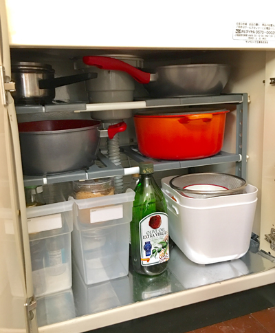サイゾーウーマン暮らし住まいイラッとする台所下収納を解決 暮らし [連載]収納の悩みをスッキリ解決します! 伊藤まきの「お片付けSOS」相談! 1,280円でイライラ解消! 扉式キッチンの使いづらい“シンク下収納”を制するコツ 2019/03/04 19:30 伊藤まき 「お片付け・お掃除SOS」伊藤まき [1:シンク下]に収納すると良いモノとは? [モニター例]ワイヤーネットと突っ張り棒を使った300円ラック ◎シンク下には、「水回りで使う重たいモノ」を置きます。 例えば、パスタを作るとき、鍋を出して水を入れるという動作になるので無駄な動きをカットできます。野菜を洗うボウルやザル※も、水回りで使うモノなのでシンク下が便利です。ちなみに、排水口の周りは湿気があるため、食品類は避けたほうがよいモノとなります。また、土鍋などの季節のモノは、使用頻度から考えると別の場所で保管するモノ(入る場合除く)になります。筆者宅では、コンロ下に鍋類を置いてボウルを使って水を入れます。動作的に楽な方を選んでください。 ※ 軽い素材のボウルやザルなら、上戸棚でも可。 シンク下の収納ラックは、買うべきか否か!? [モニター例]伸縮タイプのラックを設置したケース ◎毎日使うモノだからこそ、「伸縮ラック購入」は◎です! 収納代にお金をかけるなんて……。と思う方が割と多いのですが、キッチンほど使用頻度の高い場所には、シンク下用の収納ラック・伸縮タイプ(1,280〜1,480円/筆者調べ)の購入をオススメしています。100均のワイヤーネットと突っ張り棒を使う方法もありますが、伸縮型のほうが手放すときに売ることができますし、3段に区切ることでより快適な出し入れになります。毎日使う場所なので、ワンアクションの動作が増えるごとにあらゆる無駄をカットできます。 シンク下伸縮棚 次のページ [2:調理台下]に収納すると良いモノとは? 前のページ12345次のページ 関連記事 「100均の2品」で極狭クローゼットに“冬物収納”完了! アノ名品でオシャレにスリム整理「食器棚」の収納力アップに“アレ”は厳禁!! 劇的チェンジの秘訣で「容量300%増」も!?買って損なし「ニトリのカラボ」最強説! キッチンカウンターから絵本棚まで“激安”対応「予算0円」でスッキリ片付け! 優秀すぎる“無料グッズ”であらゆるゴチャつきが解決ダイソーの「落ちない名品」で、イラッとするトイレの“収納と掃除”が極楽に!