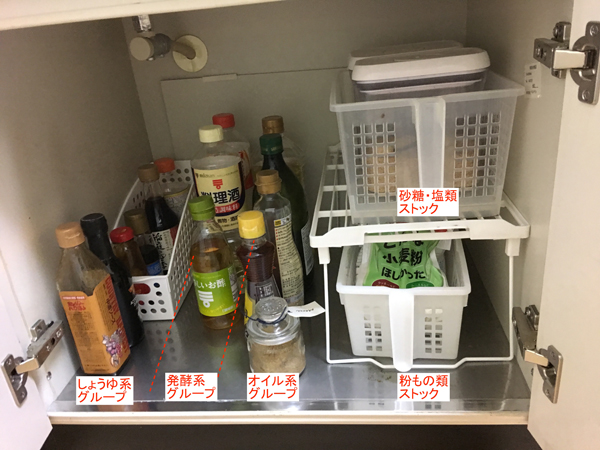 サイゾーウーマン暮らし住まいイラッとする台所下収納を解決 暮らし [連載]収納の悩みをスッキリ解決します! 伊藤まきの「お片付けSOS」相談! 1,280円でイライラ解消! 扉式キッチンの使いづらい“シンク下収納”を制するコツ 2019/03/04 19:30 伊藤まき 「お片付け・お掃除SOS」伊藤まき [2:調理台下]に収納すると良いモノとは? [参考商品]ワングループワンボックスにすると迷わない ◎調理台下には、「調理ツールやストック類」を置きます。 シンク横の調理台の下には、包丁(扉の裏)や重たい調理ツール(ブレンダー、スライサーセットなど)と2軍の調理ツールがあると便利です。1軍の調理ツールは、毎日使うモノ(お玉やキッチンバサミなど)なので、コンロやシンク脇に置くのがベスト! 2軍は、泡立て器やフライ返しなど使用頻度が少なめのツールです。ほか、シンクやコンロ下に使う消耗品のストックやラップ類、タッパー類※などもこちらへ。ポイントは、ファイルボックスや小物用引き出しケースを使ってグループ別に収納することと、高さをフルに活用することです。Mさん宅の場合は、お酒グループでも良いですね。上戸棚に入らない、重たいモノ(果実酒)などもコチラです。 ※ 軽い素材のストックやタッパーなら、上戸棚でも可。 [3:コンロ下]に収納すると良いモノとは? [モニター例]グループ別にタテ並びで配置する ◎調理台下には、「調味料」を置きます。 コンロ下には、グループ別にタテ並びした調味料をファイルボックスへ入れて配置します。オススメは、ダイソーのColorist・すきま収納ボックスロング・ホワイト(W12.7×D35.6×H20cm)。ファイルボックスの中でも、一番奥行きがある商品です。もしくは、ニトリのA4ファイルケース オールクリア(W10×D31.5×H24cm)が、調味料ボトルのサイズ(W10cm以内)に収まりやすいサイズです。 キッチン下の収納に置くモノは、使用頻度の高いモノと重たいモノを置くようにしましょう。もちろん、上戸棚のほうが使いやすいなら優先順位は家ごとに変わります。右手で開けて左手で取るといった動作を考えながら、出し入れしやすい位置を探します。 次のページ キッチンの「扉裏」を「吊る収納」で使いこなそう! 前のページ12345次のページ 関連記事 「100均の2品」で極狭クローゼットに“冬物収納”完了! アノ名品でオシャレにスリム整理「食器棚」の収納力アップに“アレ”は厳禁!! 劇的チェンジの秘訣で「容量300%増」も!?買って損なし「ニトリのカラボ」最強説! キッチンカウンターから絵本棚まで“激安”対応「予算0円」でスッキリ片付け! 優秀すぎる“無料グッズ”であらゆるゴチャつきが解決ダイソーの「落ちない名品」で、イラッとするトイレの“収納と掃除”が極楽に!
