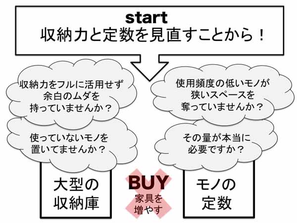 サイゾーウーマン暮らし住まいタオル収納はダイソーが正解! 暮らし [連載]収納の悩みをスッキリ解決します! 伊藤まきの「お片付けSOS」相談! タオル収納は「ダイソーのフラップ式ボックス」が正解! 狭い洗面所も清潔&極楽のコツ 2019/03/11 19:30 伊藤まき ダイソー「お片付け・お掃除SOS」伊藤まき タオル収納に困ったら「収納と定数の見直し」から! 【伊藤まきの回答】 収納力とモノの量を見直すことがポイントです。 「洗面室にバスタオルを置くスペースがない。用意した棚だと、収納力が足りず出し入れにストレスを感じる」というお悩みを、埼玉県在住のC・Yさんから受け取りました。 ざっくり言えば、「◯◯室の収納が足りない」という悩みです。 Cさんの家に限らず、キッチンの〜、リビングの〜、寝室の〜も同じです。こういった「収納力が足りない悩み」は必ず、部屋全体の写真(写真2)が必要です。すると、お悩みゾーンの反対側にランドリーラックが見えたので、下の写真(写真3)を追加で撮っていただきました。 (写真3)お悩みゾーンの反対側 ランドリーラック上の空間が、余っているのがわかると思います。片付けに悩む家ほど、大型の収納庫をフル活用していません。また、使用頻度の低そうなモノ(すぐに使わないストック品や掃除用具)もあります。 収納スペースが足りないと感じたら「追加の家具」を買う前に、今の収納と定数を見直しましょう。まずは、「モノを買うことで解決しない方法」から解くことが大切です。 「収納家具」を買い足す前に、家の収納庫を見直す! Cさんの洗面室を例に見直すと……? [1] 大型の収納庫 洗面室のランドリーラックに、使用頻度の低いモノ(ストックや掃除用具)を置いていませんか? 家の中で1番大きな収納庫に「ストックコーナー」を作って、別の場所で保管すると余裕が出ます。各部屋で使うストック(日用品、掃除グッズなど)をまとめ置きすれば、忘れることもありません。1番大きな収納庫をぜんぶ出して、使っていないモノを処分して使うモノだけが回る家に変えましょう。 [2] モノの定数 タオルの枚数が多すぎませんか? タオルの適正量は、家族の人数×2枚+予備1枚が目安です。最近は大型のバスタオル(140×70cm)だと、洗濯量が増えるのでミニバスタオルorビッグフェイスタオル(100×50cm)に切り替える人も増えています。体や髪にバスタオルを巻きたいなら、吸水力の高いバスローブやヘアーキャップに変えてドアへ吊るしても良いと思います。 あらためて、Cさんのランドリーラックを検証します。 次のページ ランドリーラックの収納力を3倍アップ! 前のページ12345次のページ 関連記事 ダイソーの「落ちない名品」で、イラッとするトイレの“収納と掃除”が極楽に!セリアの100円グッズで、ランドリーラックのイライラ「隙間」を快適収納にアップ!1,280円でイライラ解消! 扉式キッチンの使いづらい“シンク下収納”を制するコツ「100均の2品」で極狭クローゼットに“冬物収納”完了! アノ名品でオシャレにスリム整理「食器棚」の収納力アップに“アレ”は厳禁!! 劇的チェンジの秘訣で「容量300%増」も!?