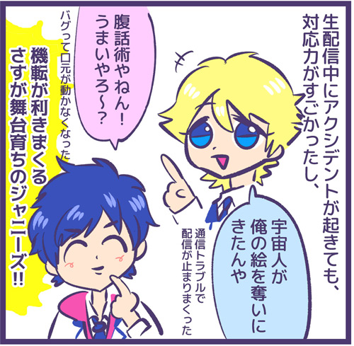 サイゾーウーマンマンガ“あすかな”でジャニオタになった元Kオタ女性 男性アイドル えるたまのアイドル自由帳 第63回 【マンガ】ジャニーズ、バーチャル進出で大ヒット!? “あすかな”にハマったド新規が見た「正しさ」 2019/06/03 21:30 えるたま ジャニーズえるたまのアイドル自由帳 彼ら二人は「正しい人」……! 次のページ 生まれてこの方、ジャニオタになったことがないもので…… 前のページ123次のページ セブンネット シネマスクエア vol.109 『映画少年たち』SixTONES×Snow Man×なにわ男子&関西ジャニーズJr. 関連記事 【マンガ】ジャニーズJr.・Snow Man増員後、単独初公演――ファンが見たのは希望か“慣れ”か!?【マンガ】タッキーの神の一手か愚策か? ジャニーズJr.・Snow Man増員でファンが見た地獄と希望【マンガレポ】オタクの課金は意味ナシ!? 配信投票が謎深い「ジュノン・スーパーボーイ・コンテスト」の光と闇【マンガ】平野紫耀はアイドル最終兵器キメラである――LDH・K-POPオタを唸らせるKing&Prince【アイドル自由帳:59回】スタダ、LDH、K-POPの若手3グループ集結……! 子どもと筋肉とドーランにひれ伏した! その他の作品を読む