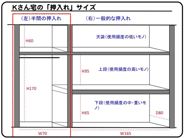 サイゾーウーマン暮らし住まい買ってはいけない「押入れ収納」ケース!? 暮らし 30代女子の「煩悩部屋」ビフォーアフター 「押入れ収納ケース」は買ってはいけない!? 使いやすくて湿気も溜まらない「○○用」が正解! 2019/07/29 19:30 伊藤まき 伊藤まき「汚部屋」ビフォーアフター 20代の捨てられない思い出、過去の恋愛、三日坊主のアイテム、蓄積された趣味のコレクション、不安の数だけ溜まるストック商品……。収納ライター・ito makiが、30代・女性のひとり暮らしにありがちな、モノと煩悩に支配された“汚部屋”を一掃。ゴミという名の過去を捨て、心ごと汚れを洗い流し、願いが叶う“悟り部屋”に変えていきます! 【煩悩004-09】カビが発生したぎゅうぎゅうの押入れ(Kさん・37歳) 引き続き、中野区に住むKさん(37歳)の「半間の押入れ」を片付けます。洋服の量を減らした後は、散らからない「収納」を目指します。今回も、「ジモティー」を利用したので費用は0円です! [Before]部屋の空気が淀んでる!? 扉を開けると、3段式の連結チェストが鎮座していました。メルカリに出品中だという、着ていないコートも収納を圧迫しています。ムダな空間とモノの山が目立つ、もったいない使い方ですね……。モノが溢れているので、湿気も溜まります。モワ〜ッとした空気が漂い、洋服を選ぶテンションも激落ちです。 奥行きが深くて使いにくい「押入れ収納」を快適化! 上の図面は、Kさん宅の「押入れ」のサイズです。昔は、布団・着物・五月人形・ひな祭りなど日本の生活道具を収納していた「押入れ」も、ライフスタイルの変化により使いにくい空間へと変わりました。古くは、収納ケースも桐の衣装箱やつづらなど防虫と抗菌を兼ねた、通気性の良い自然素材が使われていましたが、現代ではプラスチックが主流です。風通しの良い部屋なら、こうした収納ケースはまだしも……。Kさん宅もやはり、カビが発生していました。ジメジメした空間を「快適なクローゼット」へと変えるには、どんなコツが必要でしょう? 次のページ 一番の湿気対策は「詰め込まない」こと! 12345次のページ 楽天 Yahoo わたしのウチには、なんにもない。 関連記事 押入れクローゼットを制する整理術! 毎朝、着る服に悩まないワードローブ「33着」の掟買ってはいけない! やってはいけない! キッチンが臭くなるNG収納と対策法5つやってはいけない「オシャレ収納」! キッチンが“黒カビ”パラダイスになるNG例汚部屋に至る心理を紐解く……「家族の思い出」「友人の愛」を詰め込んだアラサー女性ハンガーは「40本」あればいい!? 汚部屋30女を救う「ズボラ収納」3つのポイント!
