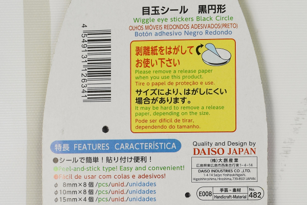 サイゾーウーマン暮らし100均・雑貨ダイソー「目玉シール 黒円形」レビュー 暮らし 【100均ずぼらシュラン】 【100均ずぼらシュラン】ダイソーなのにコスパが悪い!? 20個セットの「目玉シール 黒円形」 2019/09/04 15:32 ズボラ均子 ダイソー100均100均ずぼらシュラン 100円でもコスパが悪いと感じるワケ 手こずりながらも、目玉シールをペン立てに“ピタッ”と貼りつけ。2つの目玉がついたシュールなお顔が完成しました。存在感はグーンとアップし、もの言わぬ目で一点を見つめる姿からは、なんとなく“意志”のようなものを感じます。うつむきがちな瞳がちょっとだけ寂しそうですが、かわいいことには間違いありません。 Amazonで同様の商品を検索してみると、500個セットで500円、1000個セットで600円という価格で販売されている商品もあったので、コスパが良いとは言えないかも……。ただ、そんなに大量に買っても使わないという方は、ダイソーで販売されている「目玉シール 黒円形」の方が、使い切れてちょうど良いかもしれませんね。シールはキレイに剥がせるため、手帳やスマホにも気軽に使用可能です。工作や折り紙で作った動物にはもちろん、スマホケースや日用雑貨に“ペタッ”と目玉シールを貼ってみるのはいかがでしょうか。見慣れた日常の景色がグンとメルヘンになりますよ~! この記事も読まれています 【100均の収納アイテム・DIYグッズ】おすすめアイテム27選!【ダイソー・セリア・キャンドゥ・ワッツ】 ダイソー、セリアの商品をチェック! 100均ずぼらシュランバックナンバー 前のページ12 最終更新:2020/02/03 17:11 Yahoo 知育玩具 デコ目 メダマン/ダブルメダマン シール おもしろ 目玉 デビカ トイ・○トーリー4に出てくる新キャラクター作りに最適! 関連記事 【100均ずぼらシュラン】ダイソー「LEDインテリア置物(月)」、ボディはチープでも点灯すると?【100均ずぼらシュラン】使い方は無限!? 緑の癒しを感じるダイソー「テラリウムオーナメント」【100均ずぼらシュラン】ダイソー「ミニレターセット」、100円クオリティを超えた可愛さ!【100均ずぼらシュラン】ウサギが可愛すぎるダイソー「やわらかいデザイン保冷剤(おしゃれアニマル)」【100均ずぼらシュラン】ダイソー「マグのふた キティ」を辛口採点! 使い心地が「微妙」なワケ 次の記事 なにわ男子・藤原、ラジオで本気説教のワケ >