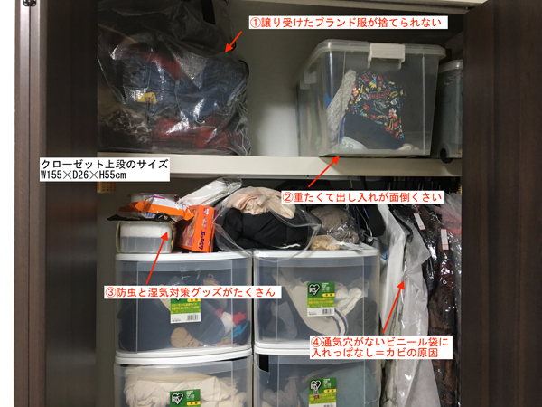 サイゾーウーマン暮らし住まいクローゼット収納は無印良品が正解 暮らし 伊藤まきの「お片付けSOS」相談! 無印良品の“浅型”収納ケースが正解! クローゼットの「見つからない」ストレス解消法 2019/10/28 19:30 伊藤まき 無印良品「お片付け・お掃除SOS」伊藤まき 衣服の把握には「浅型の衣装ケース」がオススメ 【整理収納アドバイザー1級・伊藤まきの回答】 ずばり、「深型の衣装ケース」がワードローブ迷子の原因! 手持ちの服をひと目で「見える化」していないため、着たい服がわからなくなります。費用はかかりますが、将来的なムダが激減するので「浅型の衣装ケース」に買い替えることをオススメします。 まず、Cさんのクローゼットをチェックしていきましょう。 [NGポイント:1]「深型の衣装ケース」は洋服が埋もれる クローゼットを見ると、「深型の衣装ケース」がぎっしり詰まっています。衣装ケースの中は、洋服を重ね置きしているので埋もれてしまい、把握できません。しかも、重ね置きは出し入れするにも時間がかかります。当然、奥の服はシワだらけに。 [問題点を整理] [NGポイント:2]天袋に「収納ケース」はダメ! さらにクローゼットの上部を見ると、天袋に「重たい収納ケース」が。ここに重いモノを置くのは危険! 女性の力だけで、出し入れできる軽さに変えないと、中身を見直すのも面倒になり、結局不要な服ばかりが溜まっていきます。 [Before] 次のページ [NGポイント:3]カビ・臭い・虫食いが発生! 前のページ1234次のページ Yahoo (まとめ) 収納ケース/フリーボックス 〔深型 ホワイト〕 幅24cm プラスチック製 『プロフィックス』 〔×8個セット〕 関連記事 「無印良品」のファイルが正解! 調味料・食品の“ムダなし”簡単収納テクニック無印良品の衣類は「本当に良品」なのか? 「夏の麻素材服は微妙な出来」と専門家解説【100均ずぼらシュラン】「無印」類似品が100円! セリアの「ステンレススポンジトング」★5つキャンドゥの“アレ”は無印良品にそっくり!? 汚部屋30女のキッチン収納を400円で解決「下駄箱」収納を救う、100均テクニック! ダイソーのアレと突っ張り棒で「イラつき」解消!