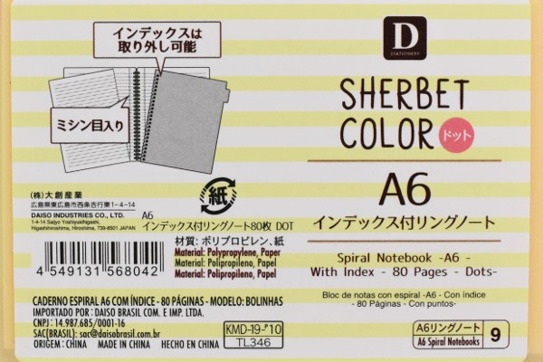 今日のダイソーアイテム【SHERBET COLOR ドット A6 インデックス付リングノート】