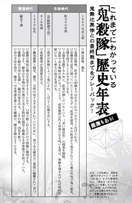 サイゾーウーマンカルチャーブックレビュー『鬼滅の刃』徹底考察! 鬼舞辻無惨「医師殺し」の元ネタも判明!? マンガをより深く読むための1冊 カルチャー 『鬼滅の刃』徹底考察! 鬼舞辻無惨「医師殺し」の元ネタも判明!? マンガをより深く読むための1冊 2020/05/11 11:00 サイゾーウーマン編集部(@cyzowoman) マンガ 『「鬼滅の刃」最終研究 -日輪と麻の葉文様に秘められし暗号-』(セブン新社) マンガ『鬼滅の刃』(集英社)の勢いが止まらない。2月に発売されたコミックス19巻でシリーズ累計発行部数は4000万部を突破(電子版含む)。5月1日発売予定だった20巻は昨今の状況を受けて5月13日に延期となったが、相前後してアニメ劇場版『無限列車編』の公開日が10月16日と発表され、こちらはファンを喜ばせた。 一方、連載中の「週刊少年ジャンプ」本誌では物語が佳境を迎えている。すべての鬼の始祖とされる仇敵・鬼舞辻無惨との戦いがクライマックスを超え、ここに至るまでに張り巡らされた伏線が回収されたり、新たに来歴を明かされるキャラクターがいたりと、ますます目が離せない展開になっている。 マンガに限らず、人気作品には考察がつきものだ。オタクによる“解釈”という名のものからプロの批評家による読み解き、「いかがでしたか」ブログのようなアクセス稼ぎのウェブサイトまで、多くの人が考察合戦に参加していることこそ人気作品の証し、と逆説的に言うこともできるかもしれない。そしてそれは出版業界においても同様だ。200万部の大ベストセラーになった『磯野家の謎 – 「サザエさん」に隠された69の驚き』(1992年/飛鳥新社)以来、国民的コンテンツを深読みして楽しむ非公式の謎本・考察本はもはや定番となっている。 『鬼滅の刃』も、もちろん例外ではない。5月11日に刊行されるムック『「鬼滅の刃」最終研究 -日輪と麻の葉文様に秘められし暗号-』(鬼殺〝最終研究〟調査隊/セブン新社)では、既刊コミックスと「週刊少年ジャンプ」2020年18号までの内容をもとに、さまざまな考察を展開している。こうした本を手に取るのは、『鬼滅』を深く知りたい! 自分の解釈をもっと深めたい! というオタクだろう。その観点からいうと、同書は資料としてとても“使える”といえる。 『「鬼滅の刃」最終研究』は、「鬼殺隊歴史年表(推測もあり)」から始まる。この年表では、鬼舞辻無惨が誕生し、「始まりの呼吸」の剣士・継国縁壱やその兄・継国巌勝が現れ、さまざまな縁がどう絡み合っていったのか、現在の上弦の鬼たちがいつ生まれ、そして現在の隊士たちがどのように鬼殺隊に加わってきたのか、作中で描かれた事柄が西暦や元号と共に整理されている。既刊19巻と巻数がさほど多いわけではないが、回想で語られるストーリーも多いため、うっかりすると時系列があやふやになりやすい。自分で年表をつくるのは骨が折れそうなので、こうしたまとめは素直にありがたい。 さらにこの本の見どころは、第4章で展開される『ジョジョの奇妙な冒険』との徹底考察部分だ。『ジョジョ』といえば、『鬼滅』同様「ジャンプ」から連載を開始、いまでも続いているアドベンチャー漫画の金字塔だ。この2つの作品の類似点を指摘し、「『鬼滅』も『ジョジョ』同様に壮大な叙事詩になるのではないか」と、今後の展開に気を揉むファンにとって希望になるような推察を行ってみせる。 また、考察においてもっとも楽しいのは、作品の中に、史実、神話、伝説といったスケールの大きなものと重なり合う部分を見いだして掘り下げるときだ。作者の真意はさておき、「このキャラクターのこの設定は、この歴史上の人物が元ネタかもしれない」「あの技の名前はあの文献に由来してるのかも……」と、あれやこれやと調べて自分の解釈を固めていくのは、オタクなら一度はやったことがあるだろう。特に『鬼滅』は時代設定が大正で刀を持って戦うという和風ダークファンタジーゆえ、日本の歴史や神話、古典作品と絡めやすい。本書では「鬼滅よもやま傅奇記録」と題した章で、そうした考察を行っている。無惨の「医師殺し」というエピソードの元ネタ、那田蜘蛛山の鬼一家のモデルになったかもしれない豪族の存在、さらには継国兄弟=天照大神・月読尊という大胆な見立てなど、ワクワクする内容で中二心がくすぐられる。 そして最終章では「鬼滅謎解き聖地巡礼」と銘打って、『鬼滅』ゆかりの地を詳細に紹介。主人公・竈門炭治郎の故郷(雲取山)や同期・嘴平伊之助の故郷(大岳山)、霞柱・時透無一郎の出身地(景信山)など、『鬼滅』のキャラクターたちの出身地は山岳地域が少なくない。現在の外出自粛という状況がなかったとしてもおいそれとは行きにくいが、せっかく自宅にいる時間が長い今、本書片手にGoogle Earthやストリートビューで疑似聖地巡礼に出かけるのも良さそうだ。 このまま『鬼滅』が完結に向かって突き進むのか、思いも寄らない新展開を迎えるのかはまだわからない。そんな中でこう