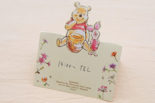 サイゾーウーマン暮らし100均・雑貨ダイソー「おきあがりメモ」レビュー 暮らし 【100均ずぼらシュラン】 【100均ずぼらシュラン】ダイソー「おきあがりメモ」プーさんが大事な約束をお知らせしてくれる! 2020/06/10 13:00 ずぼら均子 ダイソー100均100均ずぼらシュラン うっかり忘れを防げそう さっそく実際にメモ帳を使ってみましょう。今回は大事な電話の約束をメモして、プーさんを起き上がらせます。上部に飛び出たプーさんとピグレットは圧倒的存在感。ふとした時に視線を誘導してくれるため、仕事が忙しくなってもうっかり忘れを防げそう。 使ってみたところ(C)サイゾーウーマン ネットでは「会社での伝言や差し入れに添えるのに便利」「プレゼントにつけるメッセージカードとしてもかわいい」といった声も。プーさんとピグレットが、パっと目につく「おきあがりメモ」。さまざまに活用してみてはいかがでしょうか? 使用上の注意など(C)サイゾーウーマン ※サイズはライターが測っているため、実際とは異なる場合があります。 この記事も読まれています 【100均の収納アイテム・DIYグッズ】おすすめアイテム32選!【ダイソー・セリア・キャンドゥ・ワッツ】 ダイソー、セリアの商品をチェック! 100均ずぼらシュランバックナンバー 前のページ12 最終更新:2020/06/10 13:00 Yahoo ディズニーWtapくまのプーさん[DisneyWinnieThePooh]ハニー&ナッツ付箋メモ5C(ふせん5色セット) Y(S2819937) 仕事場にも癒やしを 関連記事 【100均ずぼらシュラン】ダイソー「かわいいハリネズミのマイクロファイバーミトン型」は癒し度抜群で無限に掃除をしたくなる!?収納のプロが選ぶ「100均ファイルボックス」はコレ! キャンドゥ「スッキリまとめ隊」の使い方実例【100均ずぼらシュラン】ダイソーの「計量スプーン(クリップ付)」は2つの顔を持つ便利アイテム!【100均ずぼらシュラン】ダイソー「転写シール」他5アイテム【週間まとめ6/1~6/12】【100均ずぼらシュラン】ダイソー「転写シール」こするだけで家の中がディズニーランドに!? 次の記事 NEWS・小山がジェシーに生電話 >